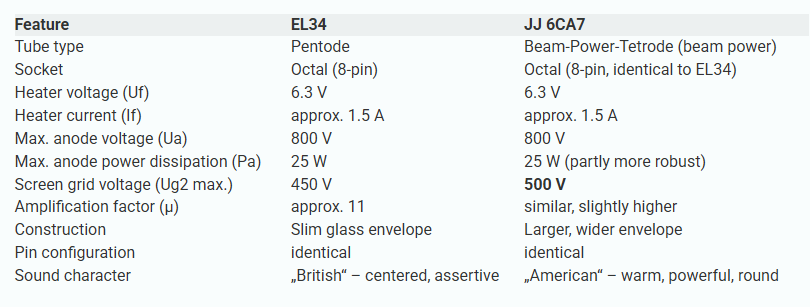 Here they call it a beam pentode..........maybe it's some kind of hybrid now or it is a play on words, I just don't know. But your clips sound good nonetheless. The EH is just closer in construction and operation to the Sylvania Philips 6CA7 that you are going to find in new production these days was my only point. Having compared them directly to my Sylvania's in my 68 and 69 amps they are decent sounding and fairly close to what I get when I run my Slyvania fat bottle 6CA7's. I also have some NOS EI fat bottle 6CA7 that are in the same ballpark as well.
