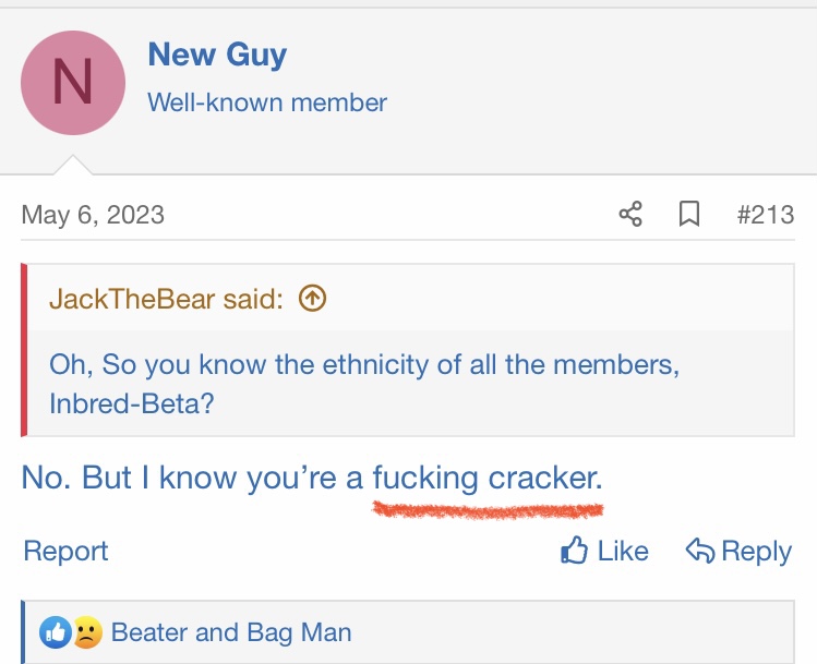 That's the sign of a BIG TIME LOSER .Imagine being so lame as to change your avatar to another member's image, and then add a crudely drawn red swastika on his chest, then cry about other people's behavior.