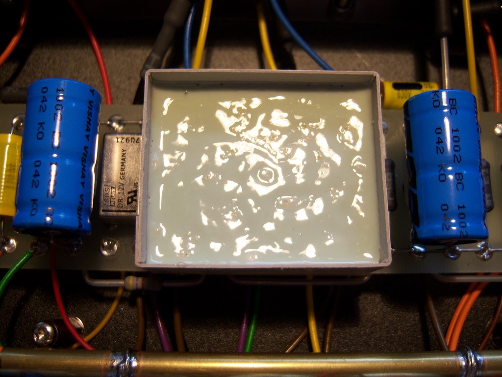 The partially epoxy covering did not damage the circuit, but actually had a protective function for the components and is comparable to how H. A. Dumble completely covered his circuits with goop.