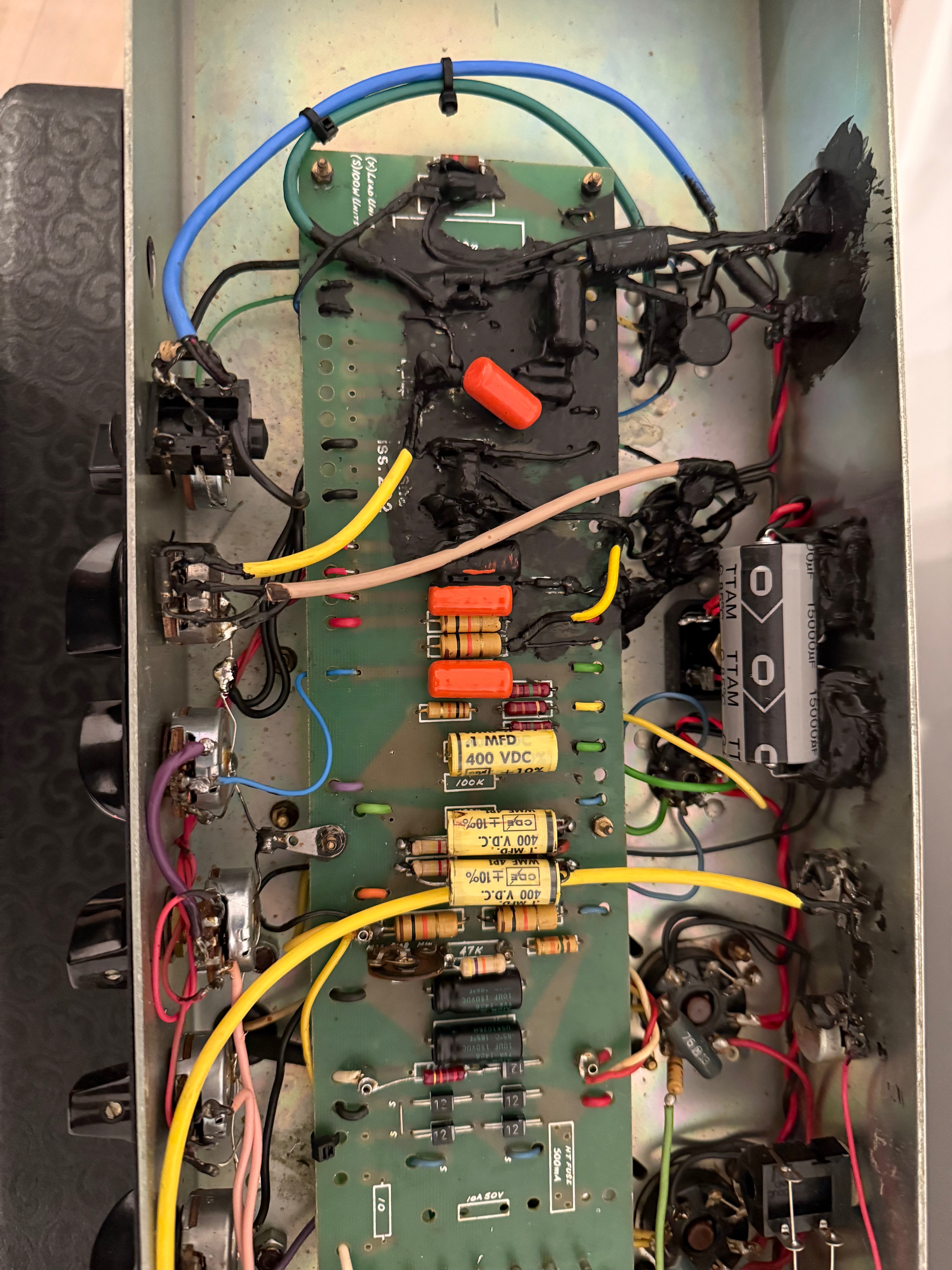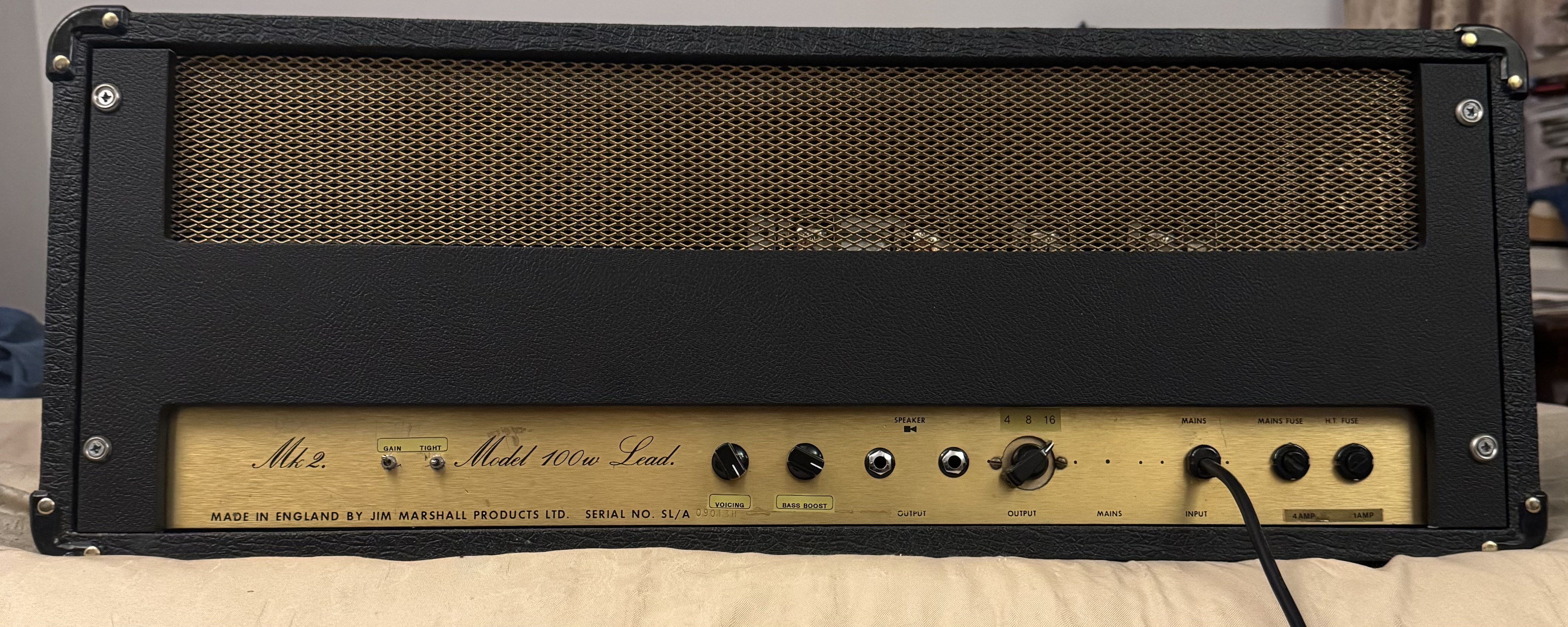 Mark Cameron High Gain Jose Mod with a bunch of options. Amp is a 76 I believe, two gain knobs, voicing knob, depth knob, 3 way tight switch, 3 way gain switch and a mid cut when you pull the presence knob. The amp sounds fantastic and feels amazing! It moves a ton of air and the bottom end seems endless. It’s an older mod as I recently got it back but sold it to a friend 11 years ago. Contact me for more info. This amp is not for the weak, Sold Pending Payment. Zelle, PayPal FF or Cash for in person. Serious buyers only!