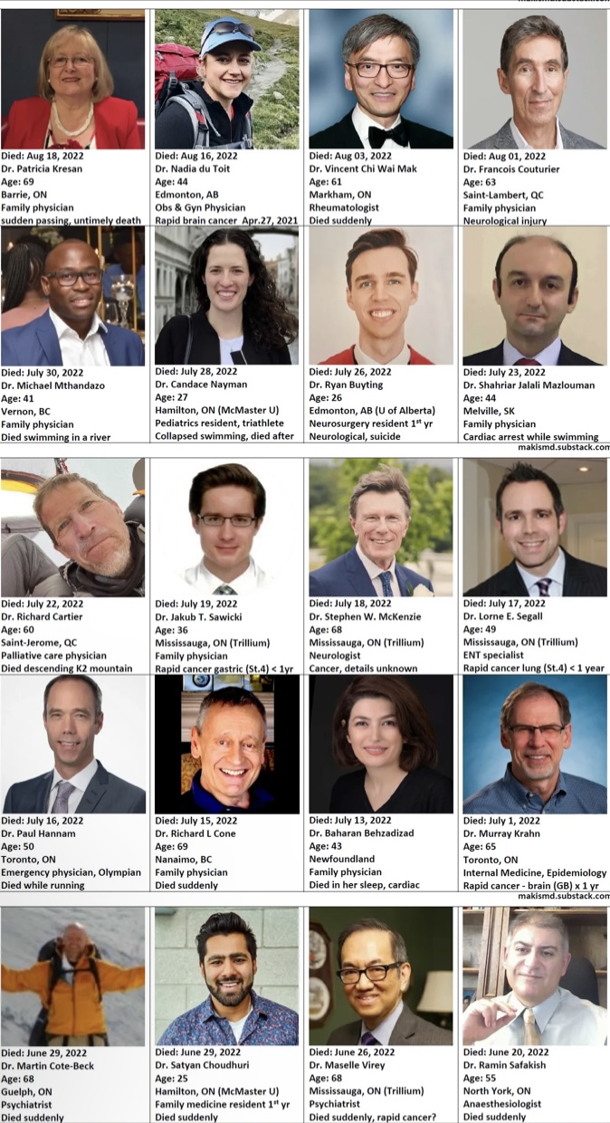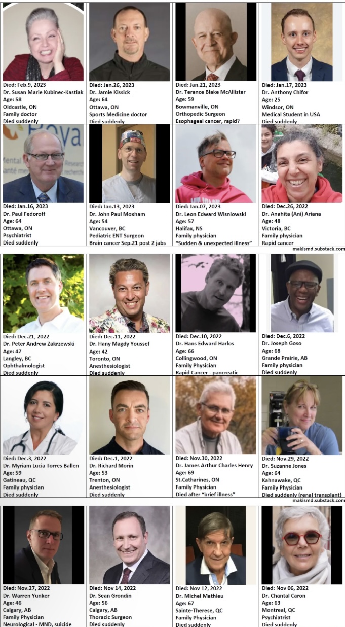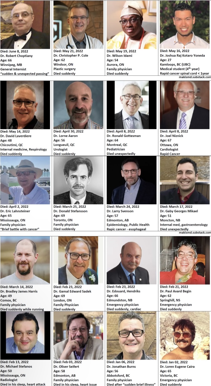 There has never been this kind of unanswered death rate in such a small window, amongst Drs in Canada in history.