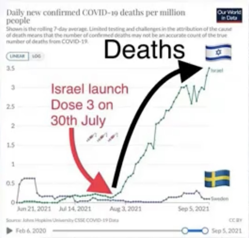 As far the outcome of Sweden vs. Israel, I don't have any good explanation. They are different geographically, politically, economically, and socially. I can't speculate on why one has a spiking case rate. But the data shows the spiking case rate would cause a worse death rate if people were not vaccinated.