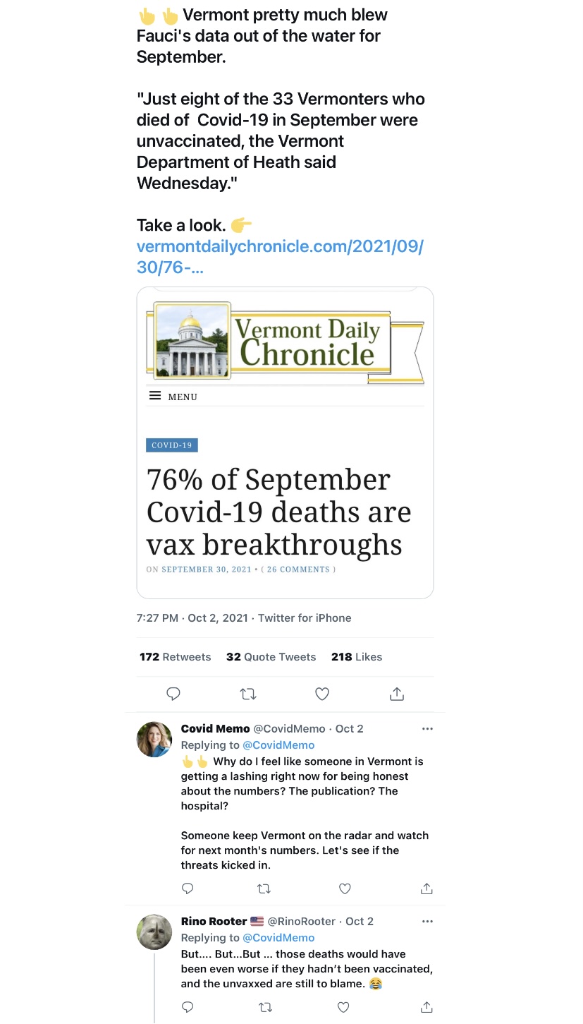 I fully expect some of you to think, or even reply back here something to the effect of "well that stupid old bastard is scared and fell for the lies. If the vax kills him and his wife, they deserve what they get." If it happens just that way, well that's just the way it is.