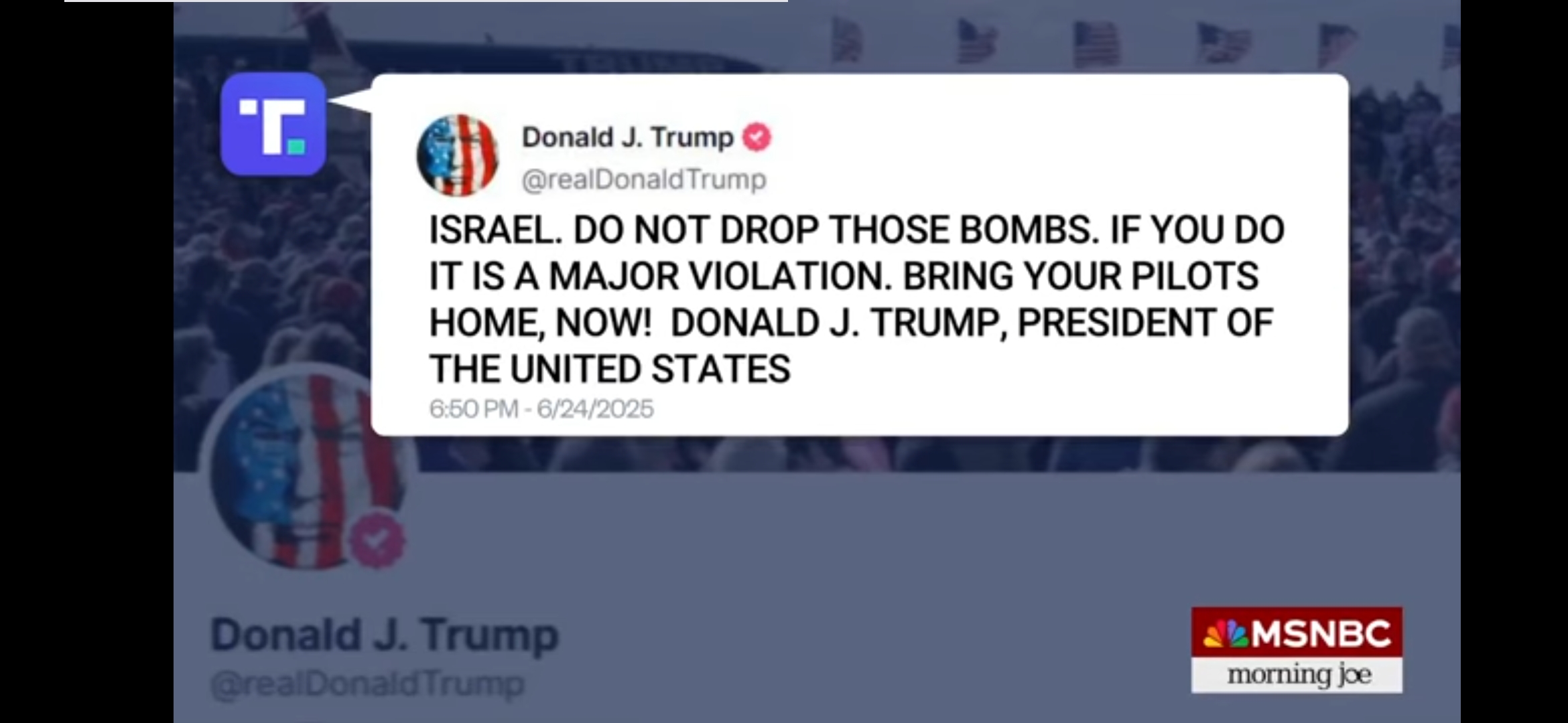 What kind of gear do you have and music do you play, troll-boy?“Israel, as soon as we made the deal, they came out and they dropped a load of bombs, the likes of which I’ve never seen before, the biggest load that we’ve seen.