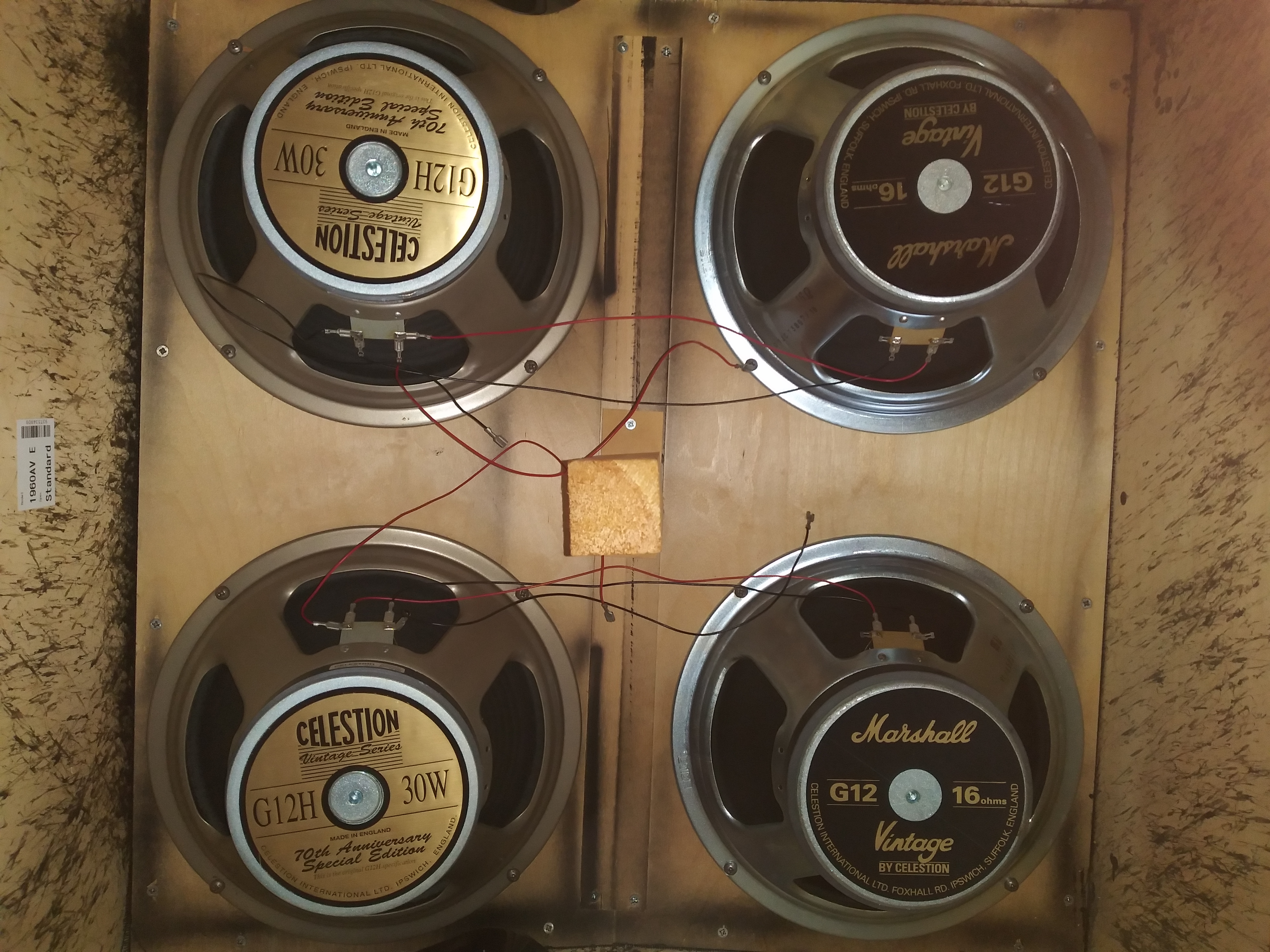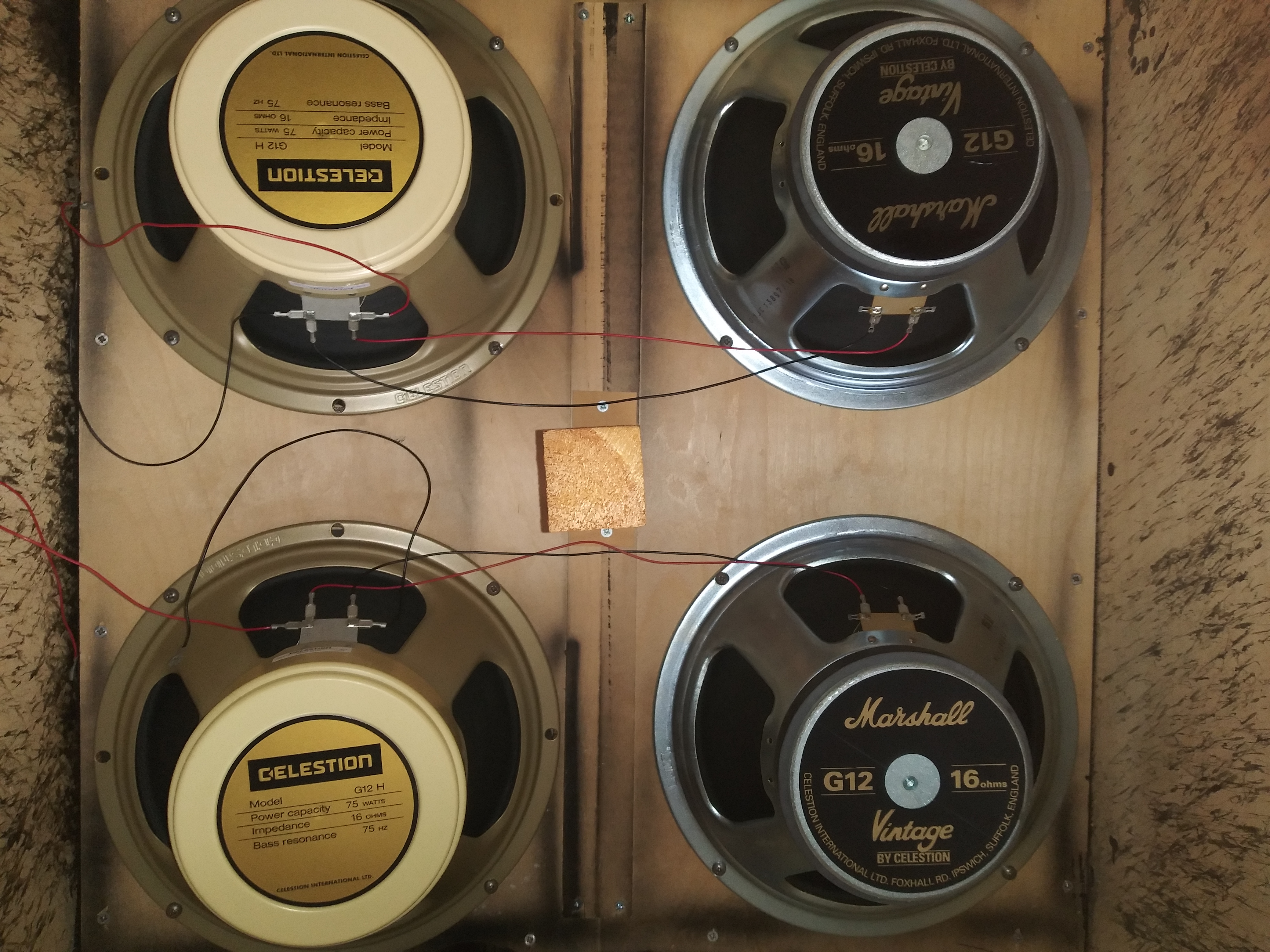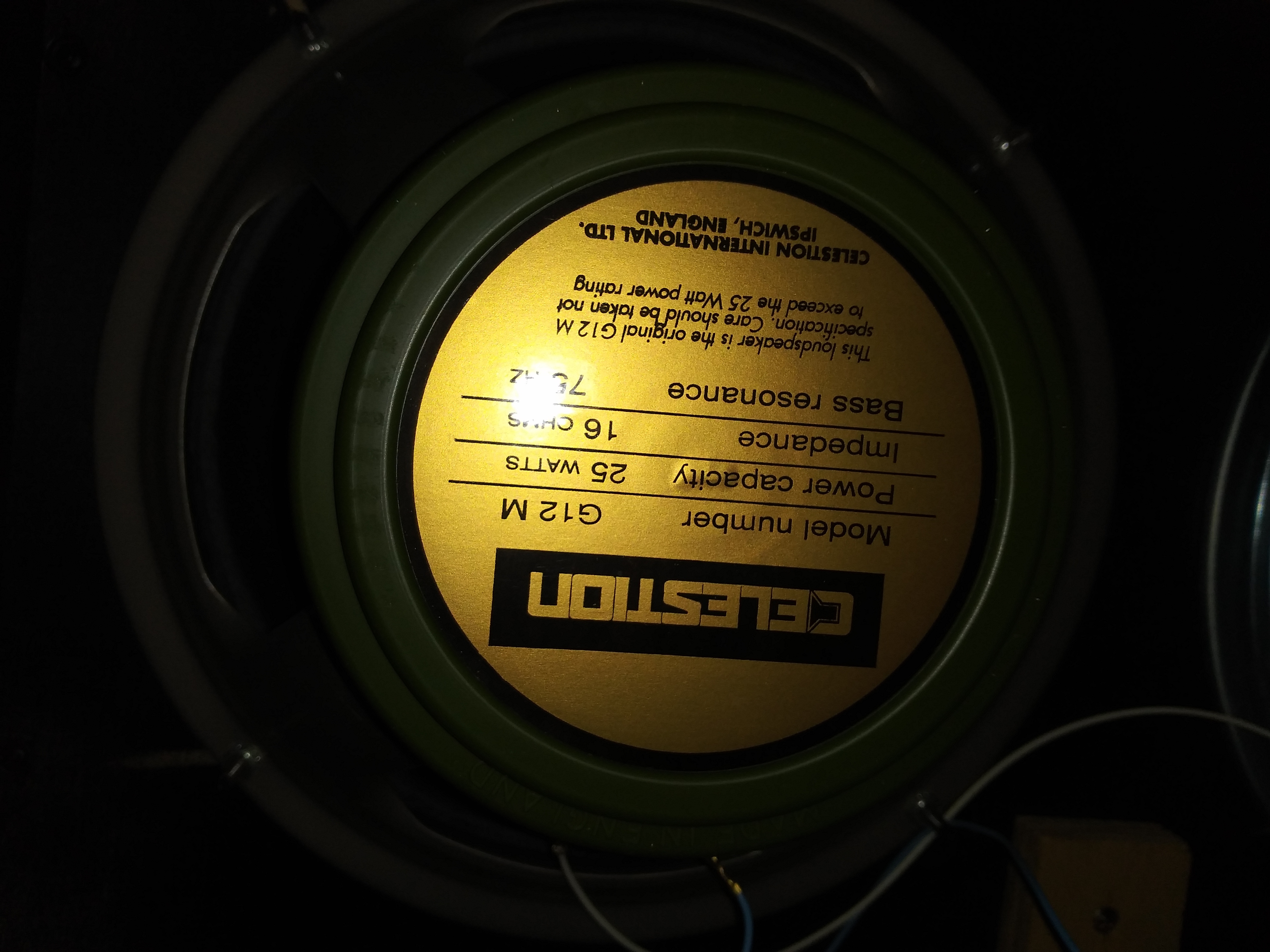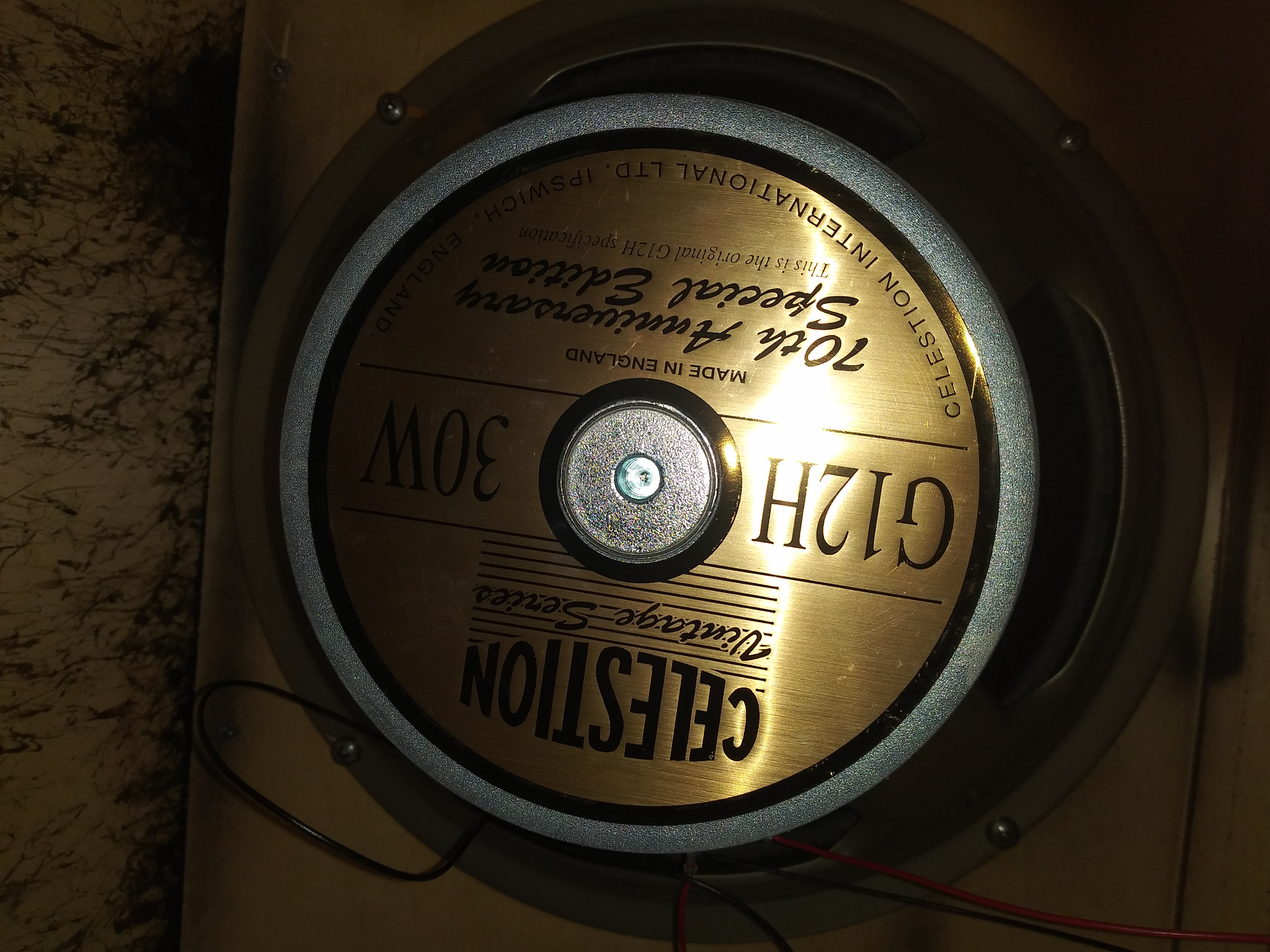 The G12H-30 Anniversary have been in the cab about 20 years. They are probably going in a cab with a pair of greenbacks. Yesterday I put the G12H-75 in. I played on them about three hours with a Orange OR50 and Les Paul.