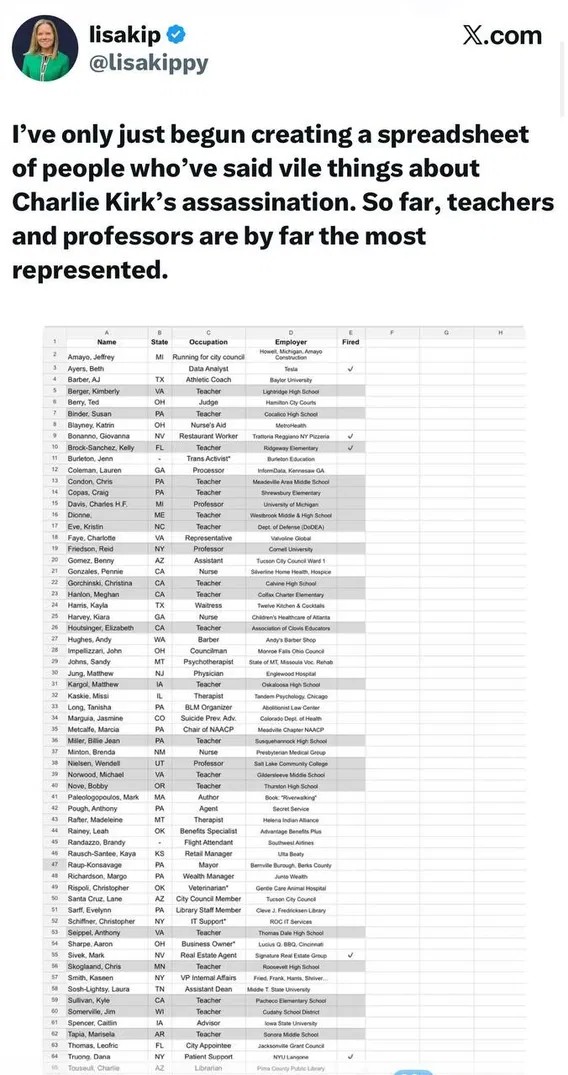 Well I don't FB or tic tac or anything else. Really the only place I have witnessed it is people reposting things here. Granted I have only talked to one liberal in person since the assassination and we didn't talk about that so.. My other liberal friends though aren't the type to do that. Though my one buddy seemed to be pretty ok with that insurance guy getting killed.I could easily add 100 names of people on my facebook, instagram, and twitter feeds that belong on that list - I think everyone could.