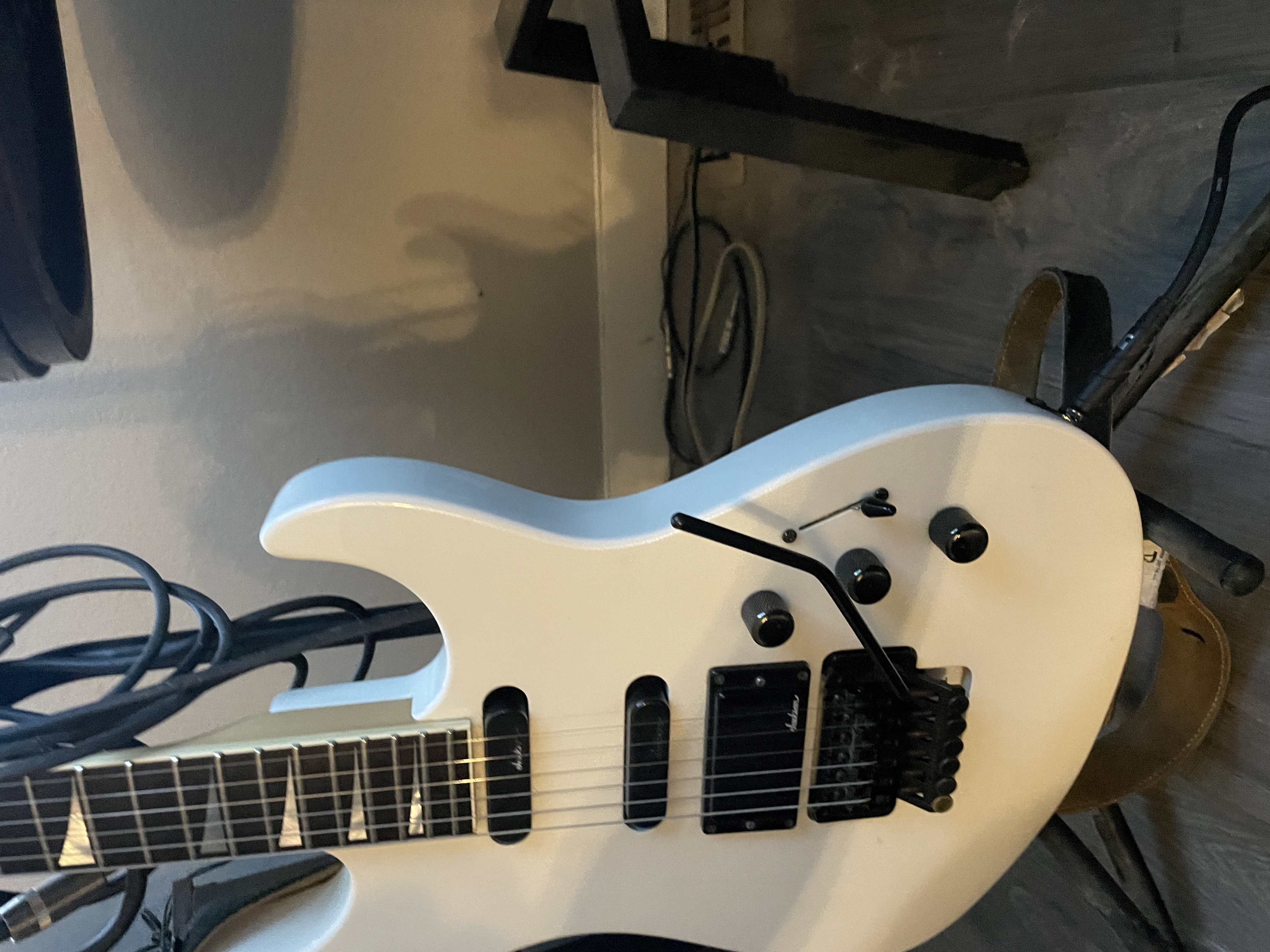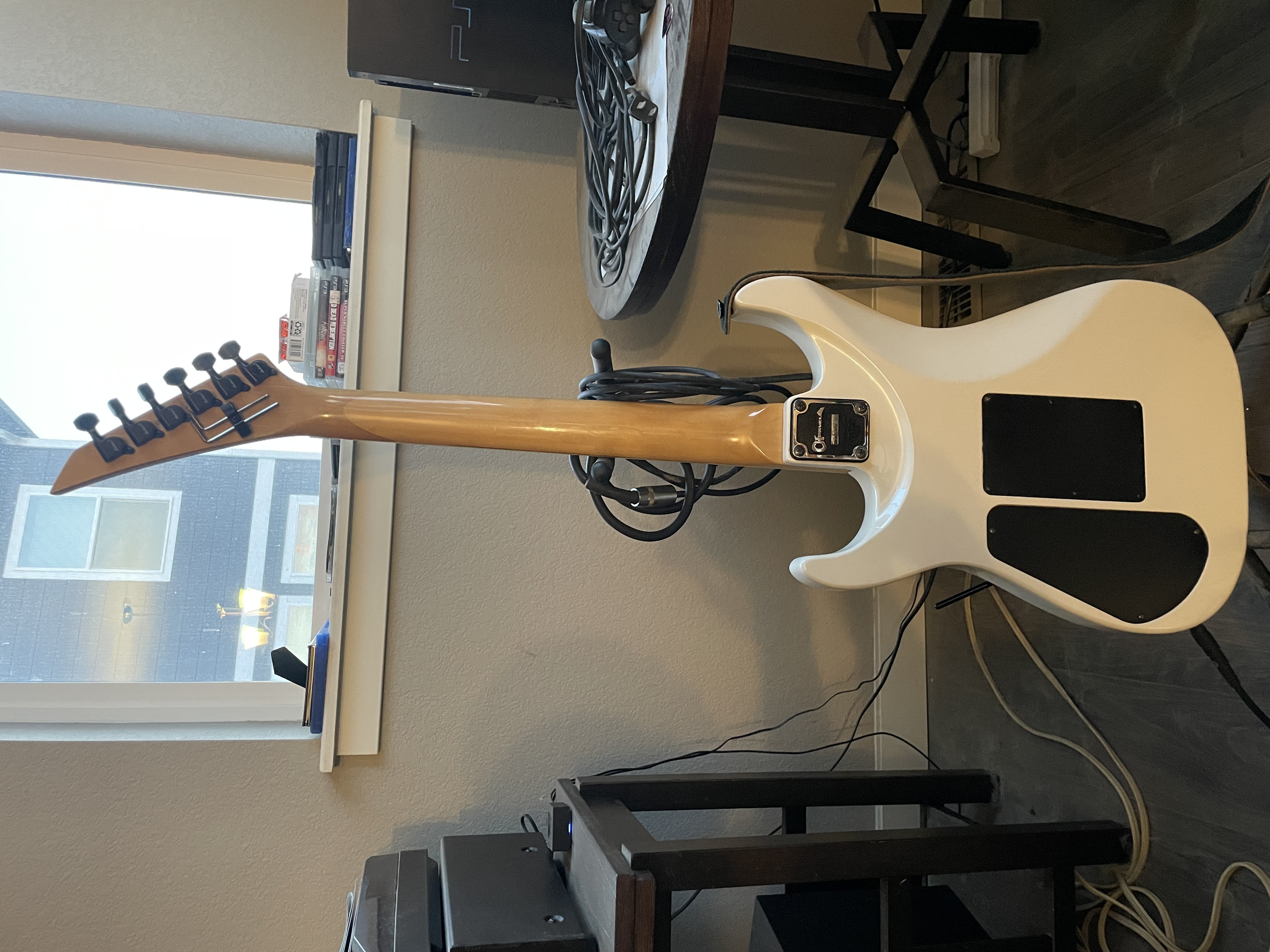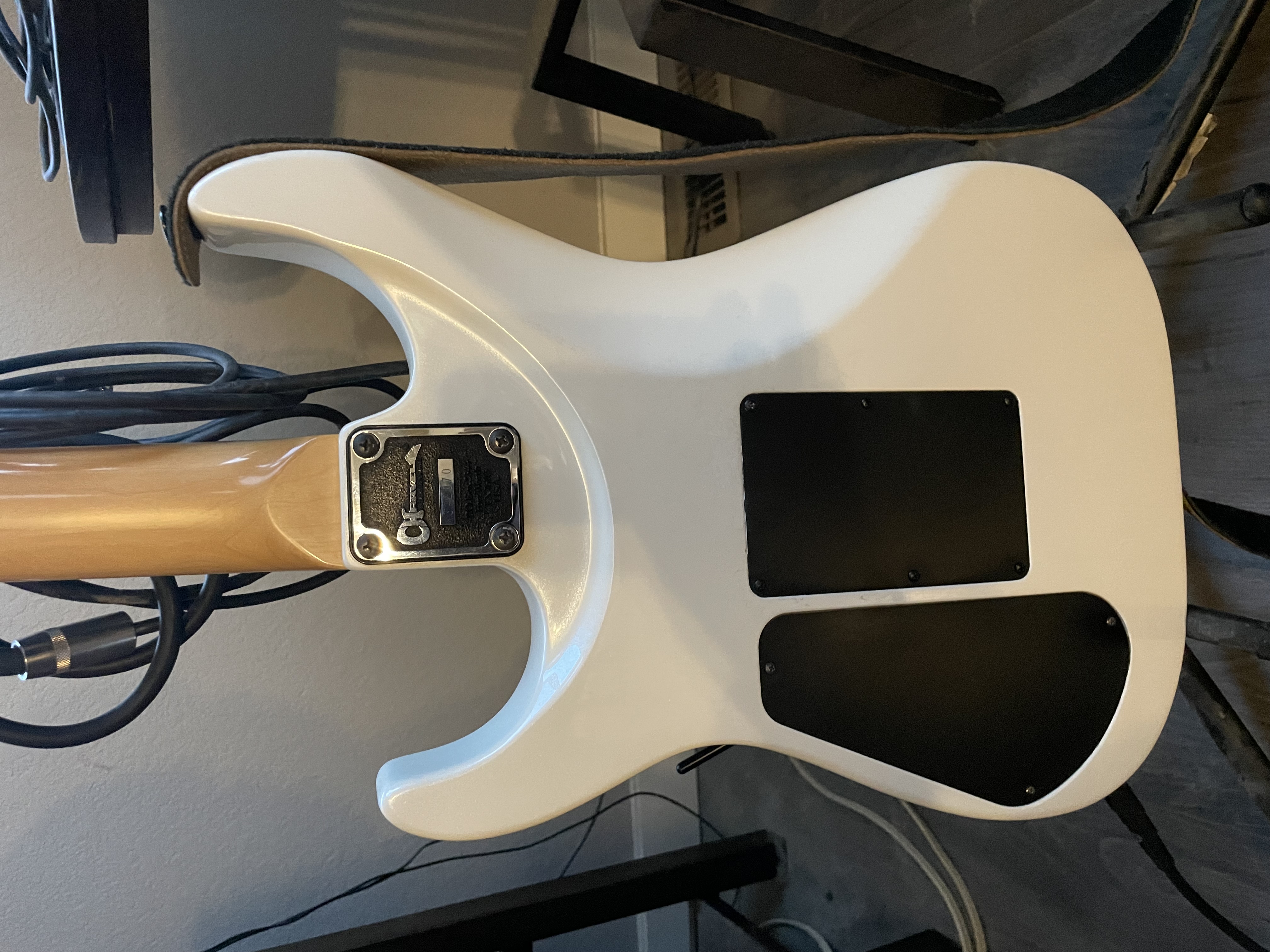 I’m selling a Charvel 475 deluxe. In white it’s all original and I’m going to put new .9 strings on. I love the neck and feel, but can’t jive with the electronics. I don’t want to alter this guitar as well. I think it’s better to keep it original. Anyone interested hit me up with any questions. I have a few references here as well.
