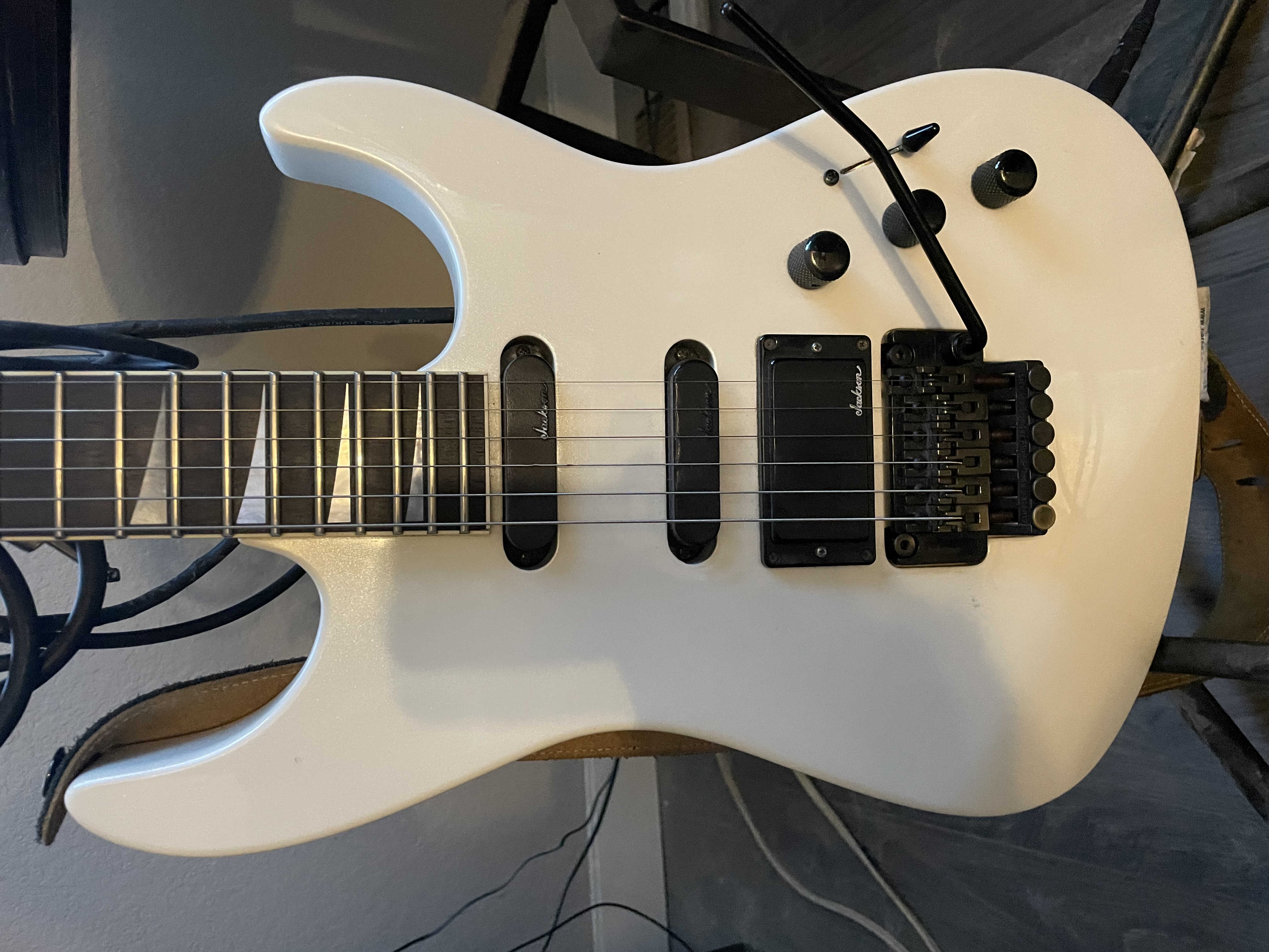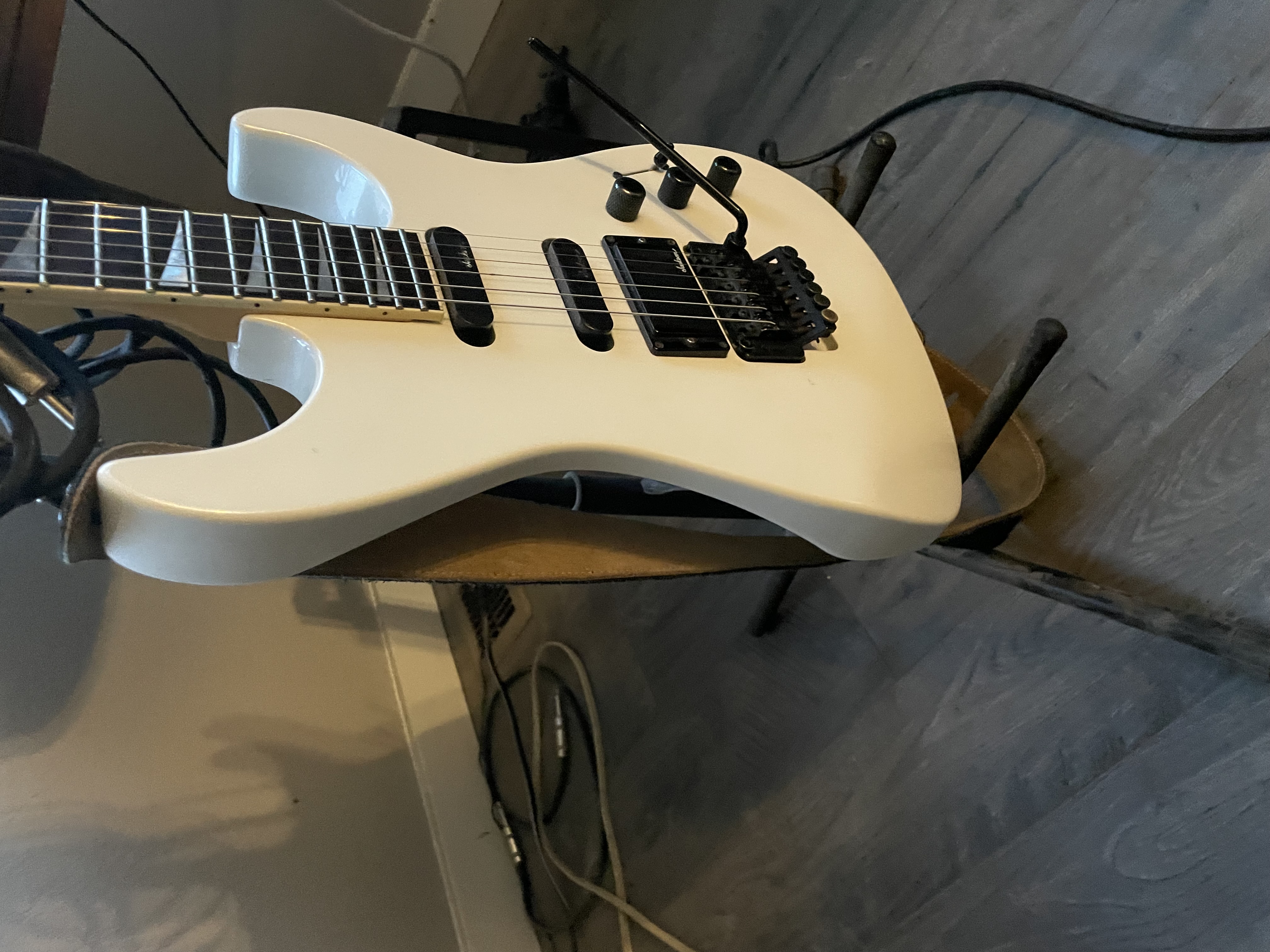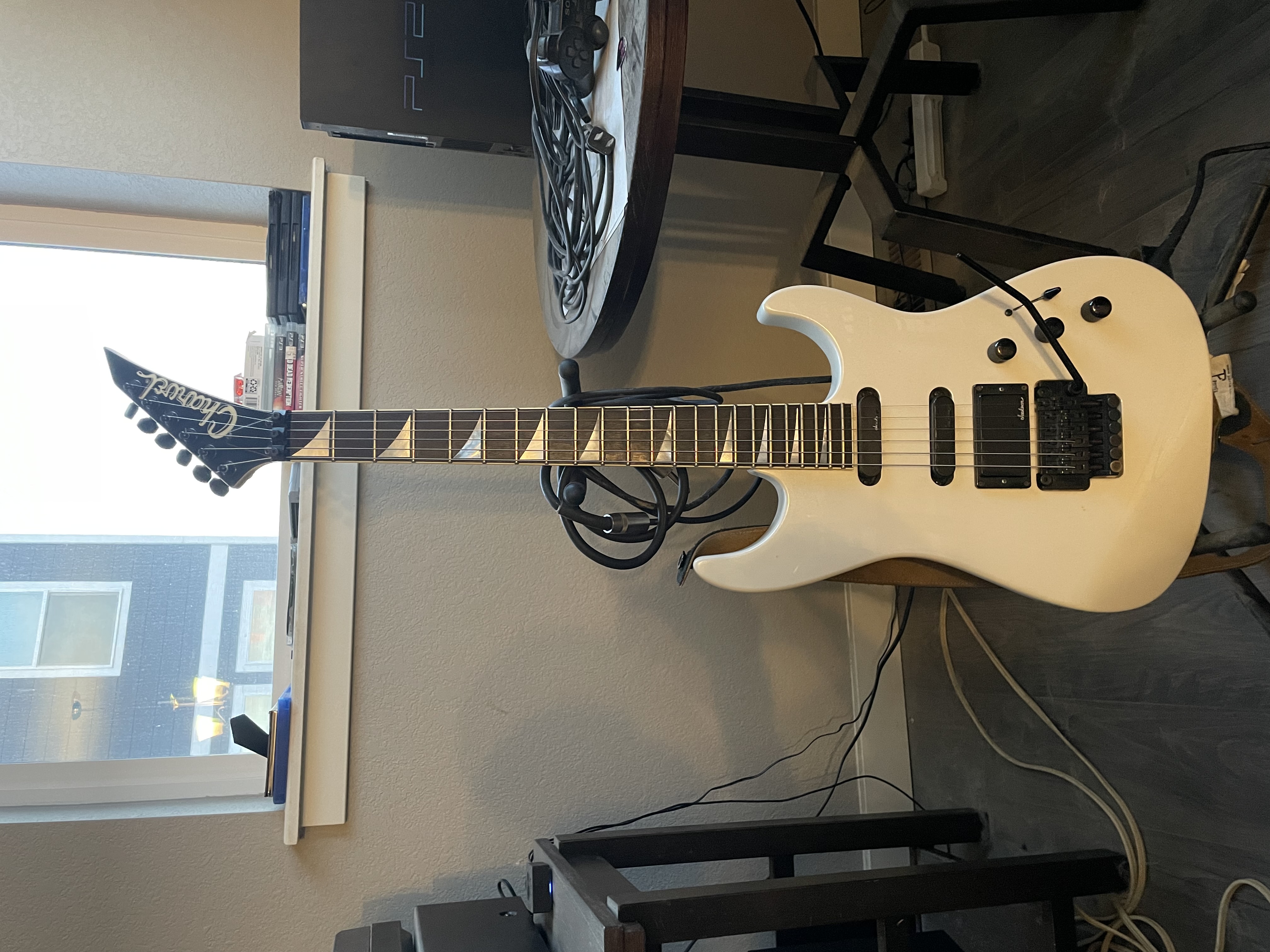 I’m selling a Charvel 475 deluxe. In white it’s all original and I’m going to put new .9 strings on. I love the neck and feel, but can’t jive with the electronics. I don’t want to alter this guitar as well. I think it’s better to keep it original. Anyone interested hit me up with any questions. I have a few references here as well.