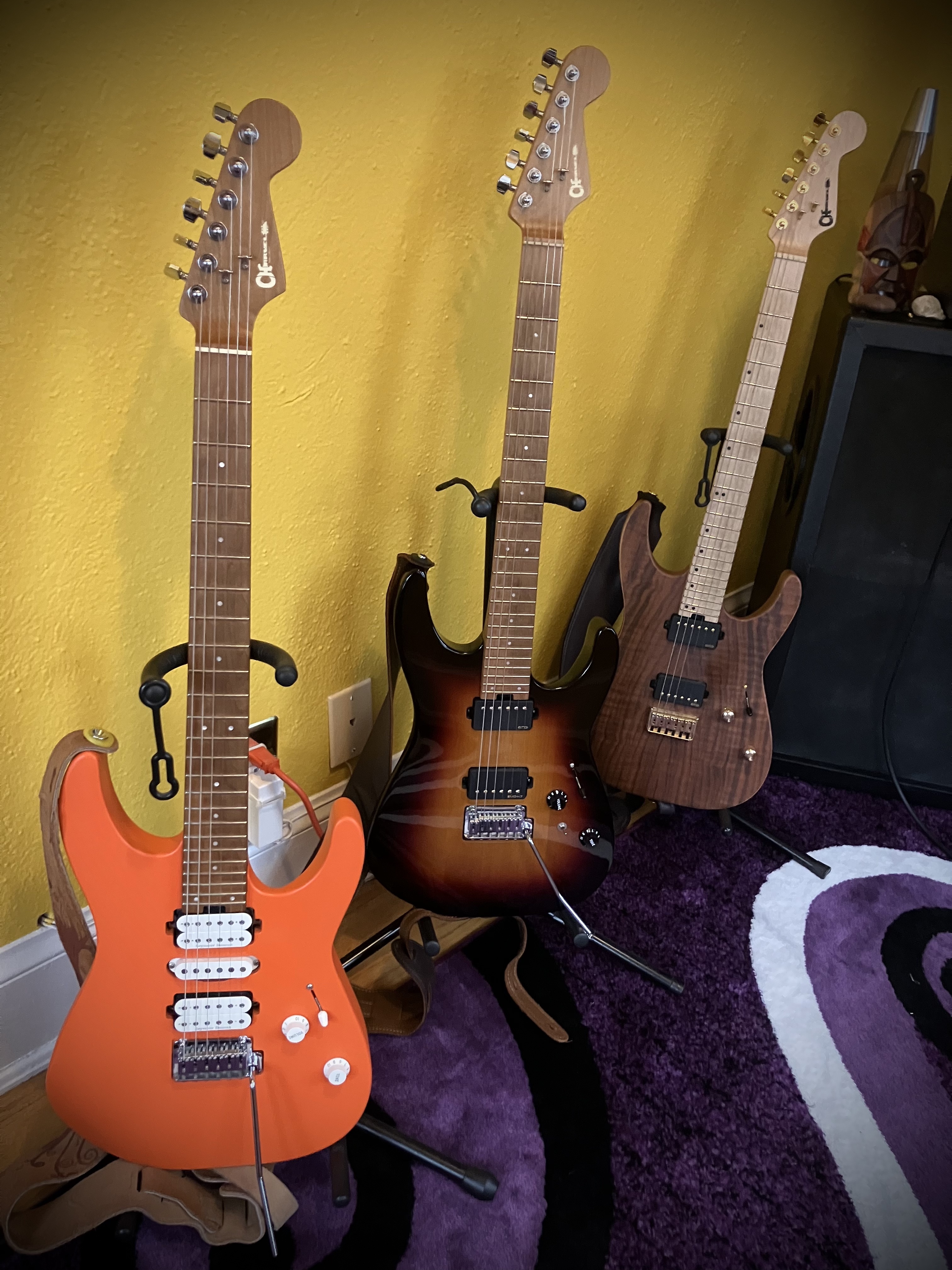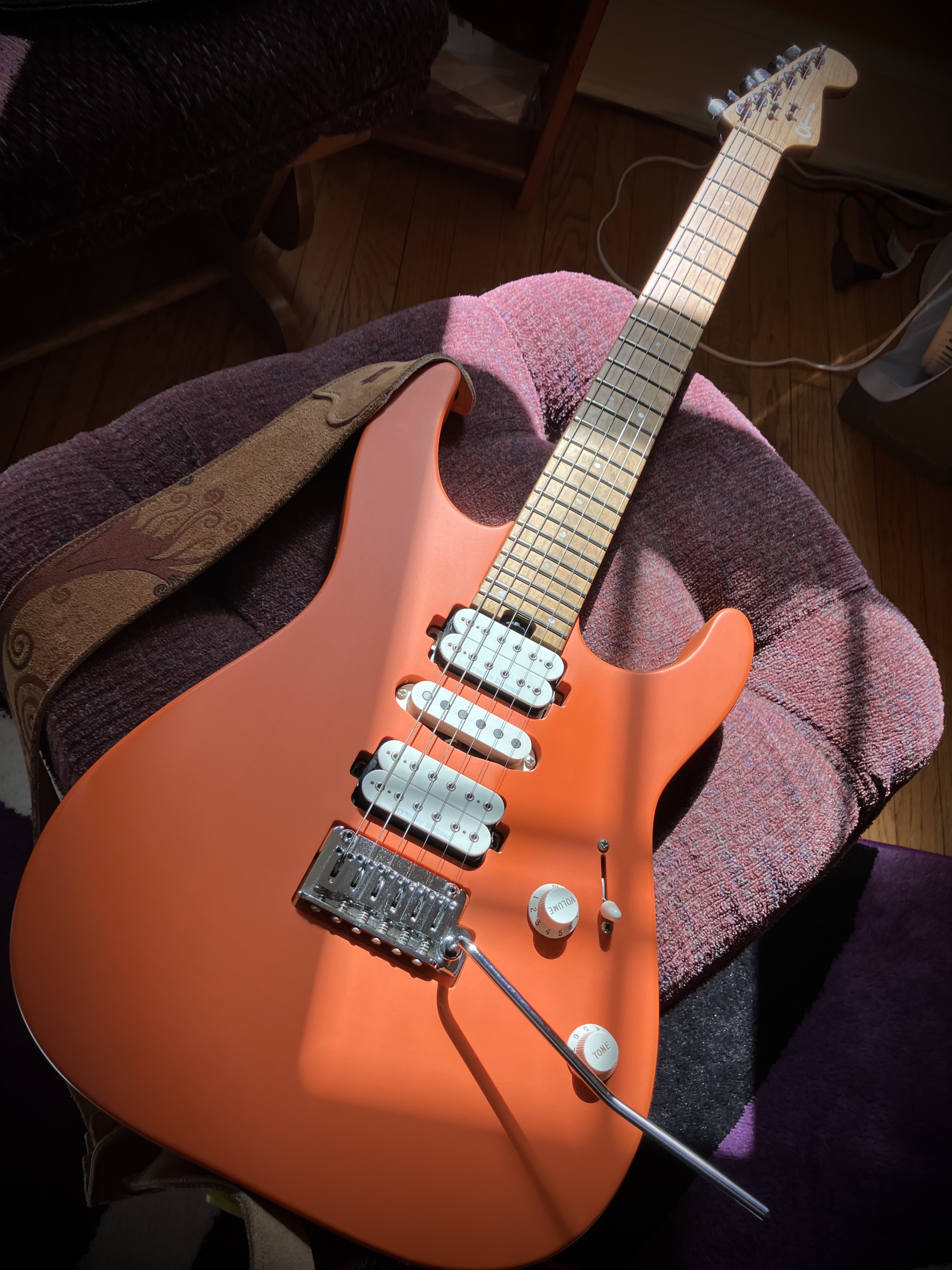 Definitely going to swap out the pickups... If I do JUST the pickups, I'd throw in an EMG Rev Set white, with gold screws for the pop (like on my other ones) and a single coil of course, white. But considering custom pickguard down to a single humbucker configuration, single volume knob. She's so ugly as is, but very intriguing...