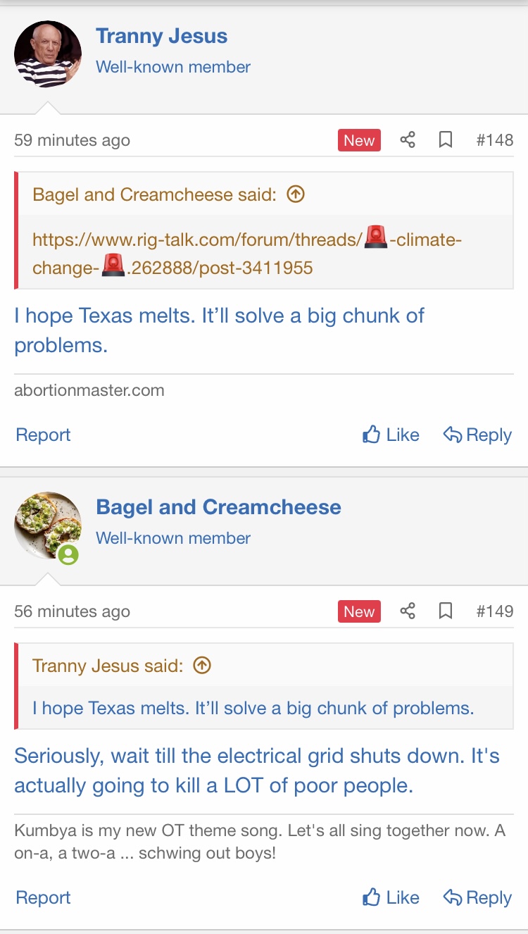 Seriously, wait till the electrical grid shuts down. It's actually going to kill a LOT of poor people.I hope Texas melts. It’ll solve a big chunk of problems.