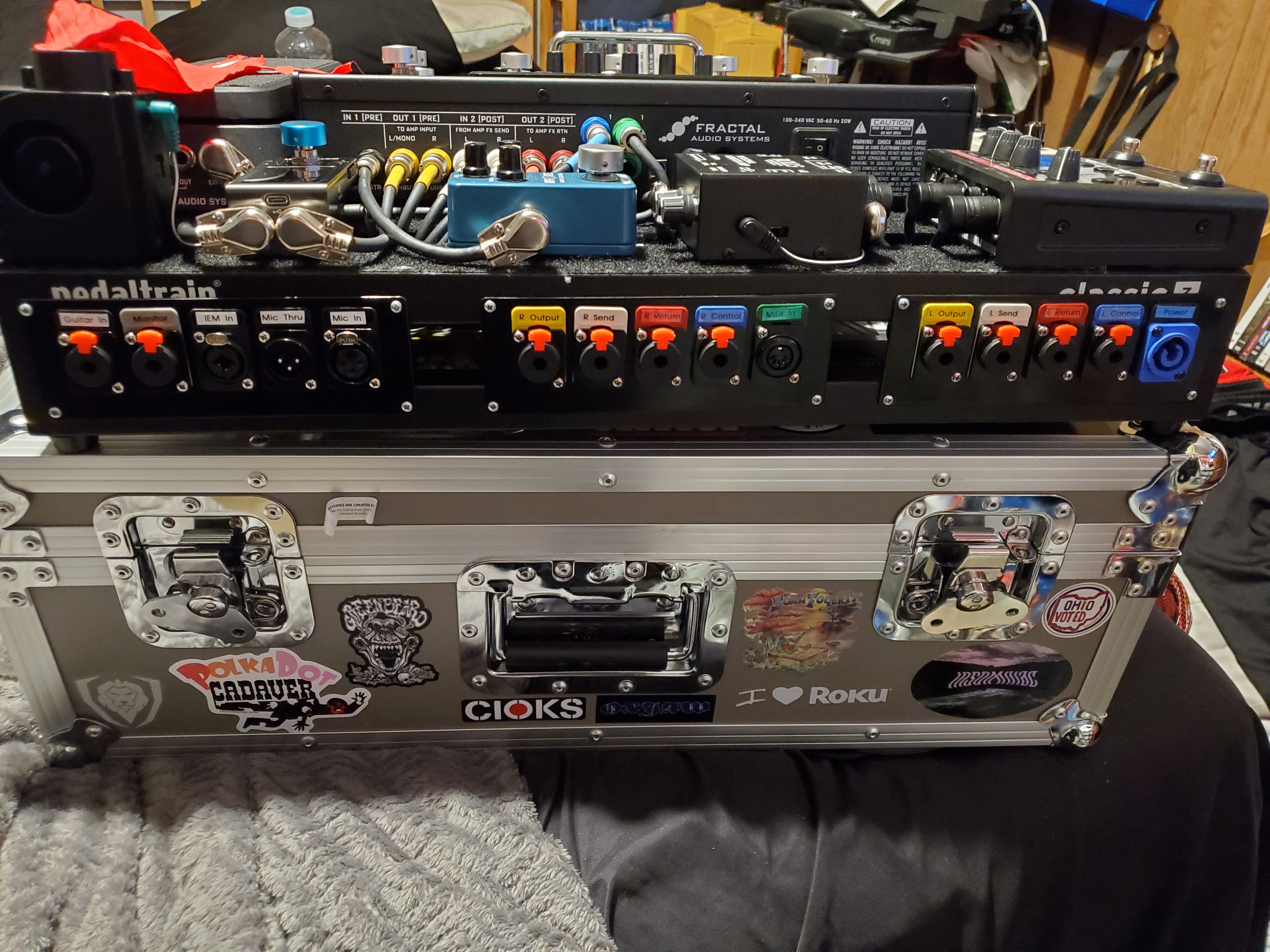 I have been putting off building my big board for a long time (over a year lol) but I finally got some of it wired up, at least everything in front of the amp. I wanted to test it and decided to hit record for the test. After playing through it, I definitely wan to physically move the tuner and the chorus, but for now it felt great to just play through what I've thought about for a long time.
