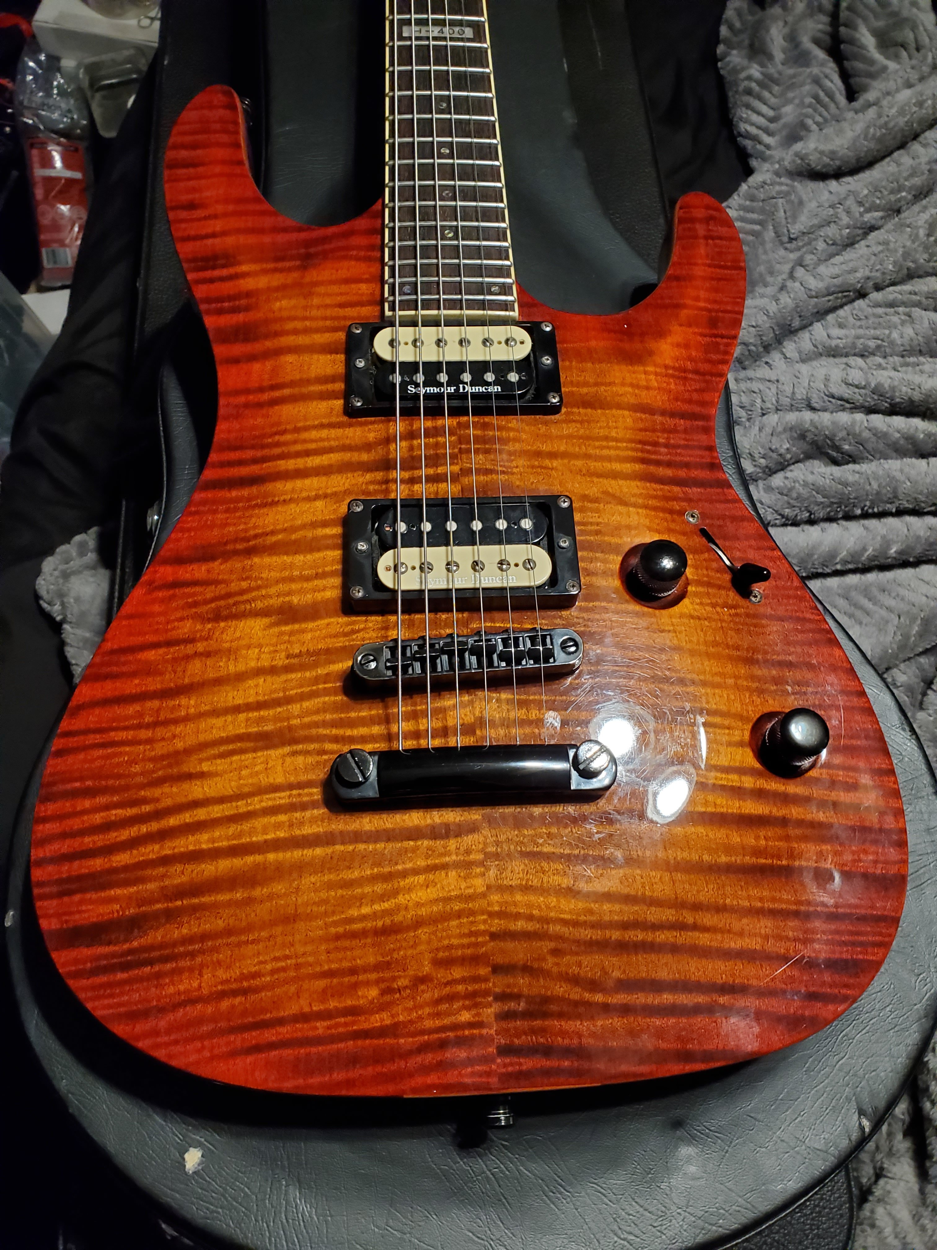 Yanked the Fishman’s, drilled out pot holes, and replaced all wiring. Small magnet Dirty Fingers and Brandonwound A4 PAF. Bummed that I couldn’t get the aged white bridge ring to line up. Had to use the original one instead.