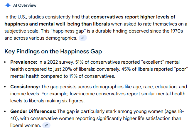 I actually think the chart may be somewhat accurate. You have to realize we have a large chunk of our population that are mentally ill, self loathing, NPC shitlibs who hate everyone and everything because they're brainwashed to act that way. It's a somewhat outlier, but enough to bring the average way down.Dude, I will bet good money that's merely some meme generated by some douchebag on the internet. There's a reason why he has never once posted an actual source for any of this fantasy bullshit he claims as fact.
