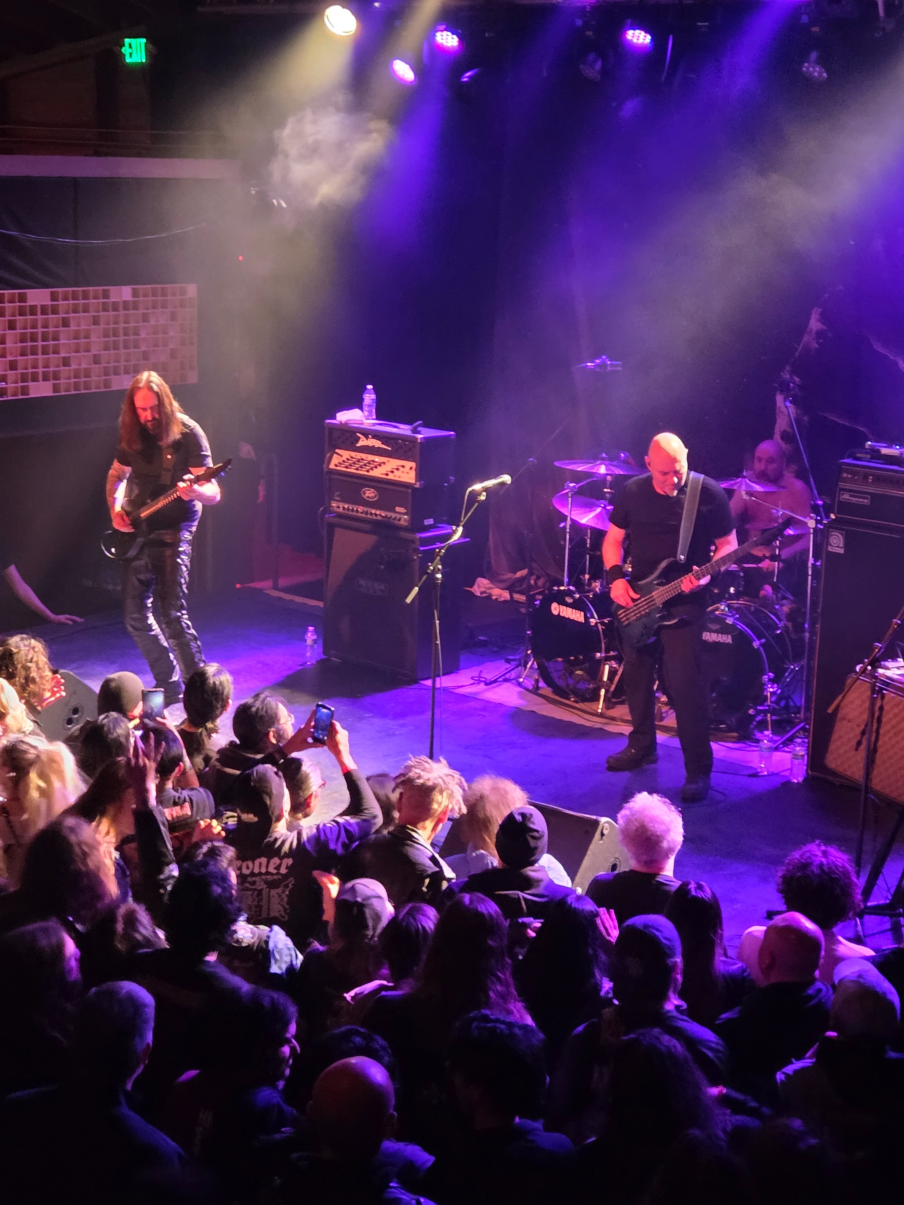 Coroner played the Cornerstone in Berkeley last night!! Been too long a wait...the video I took is so good, wish I could post but here are some pics. Tommy played a VH4 on channel 3 most of the time switching to channel 4 when needed. The other amp was a 6505+ on what looks like a mesa traditional 4×12?