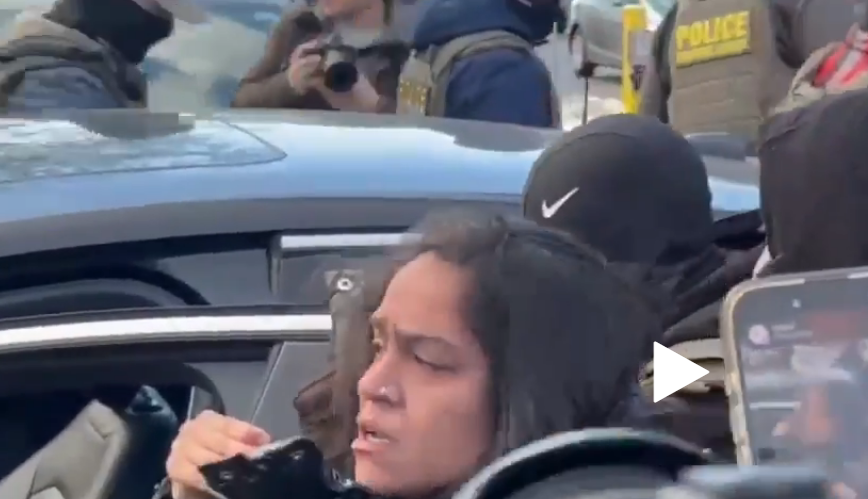 He's another one being pulled from a car today because she's interfering with ICE agents.
