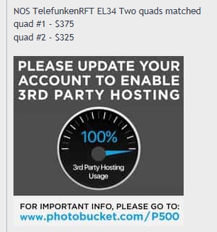 Still not showing - this is what I see for all of the photos that should be coming from Photobucket...calhoun tubbs":f9d9vjyf said:Thanks. Relinked tube photos for all tubes listed.