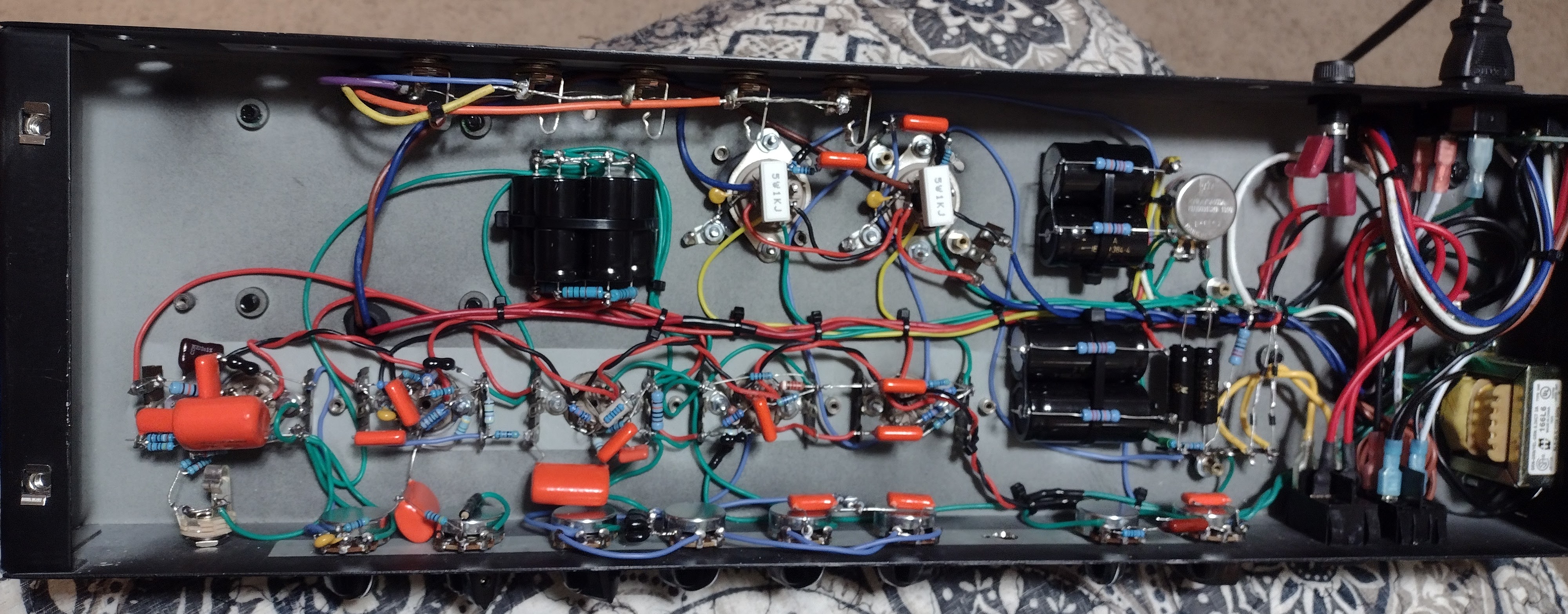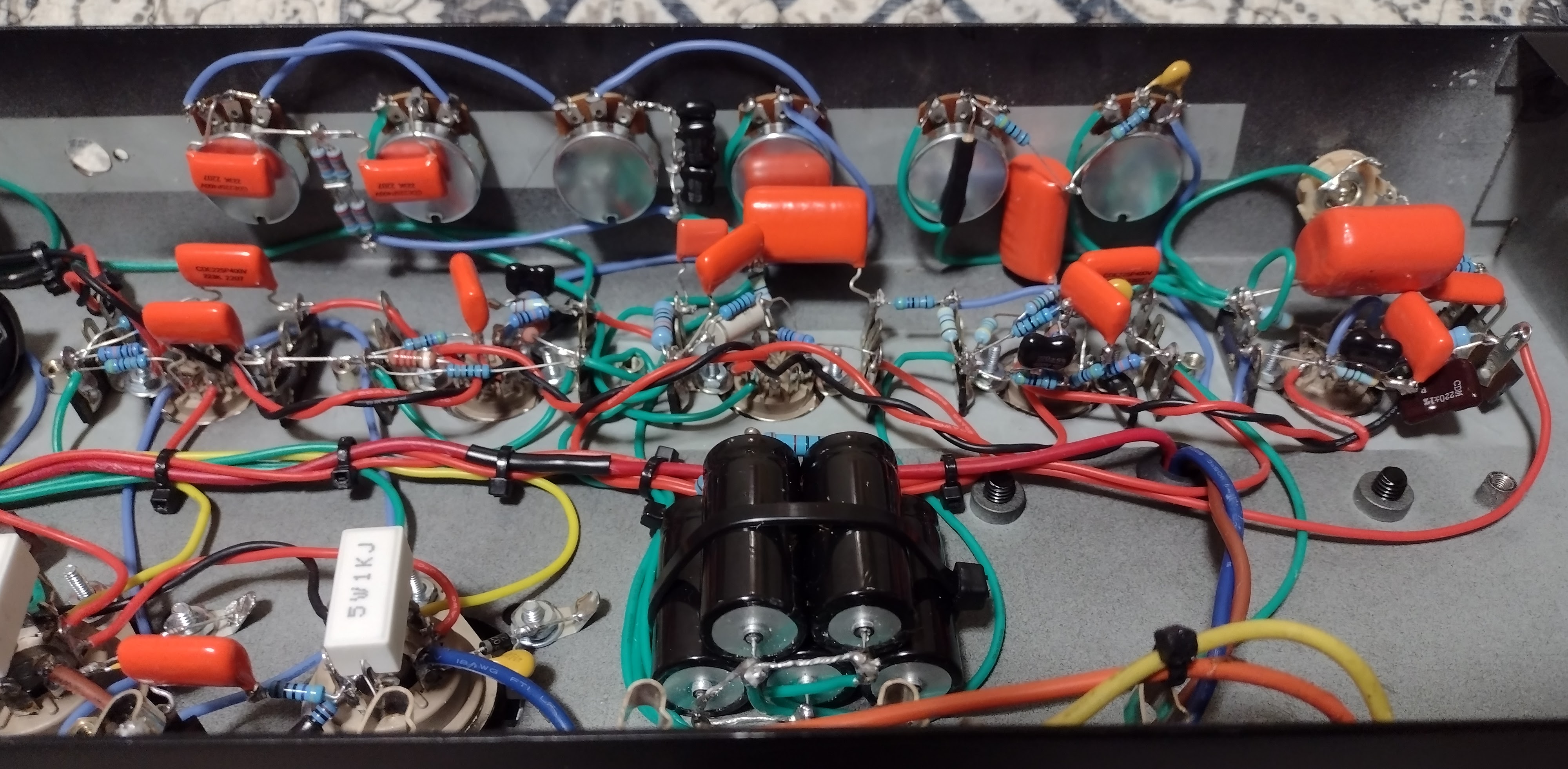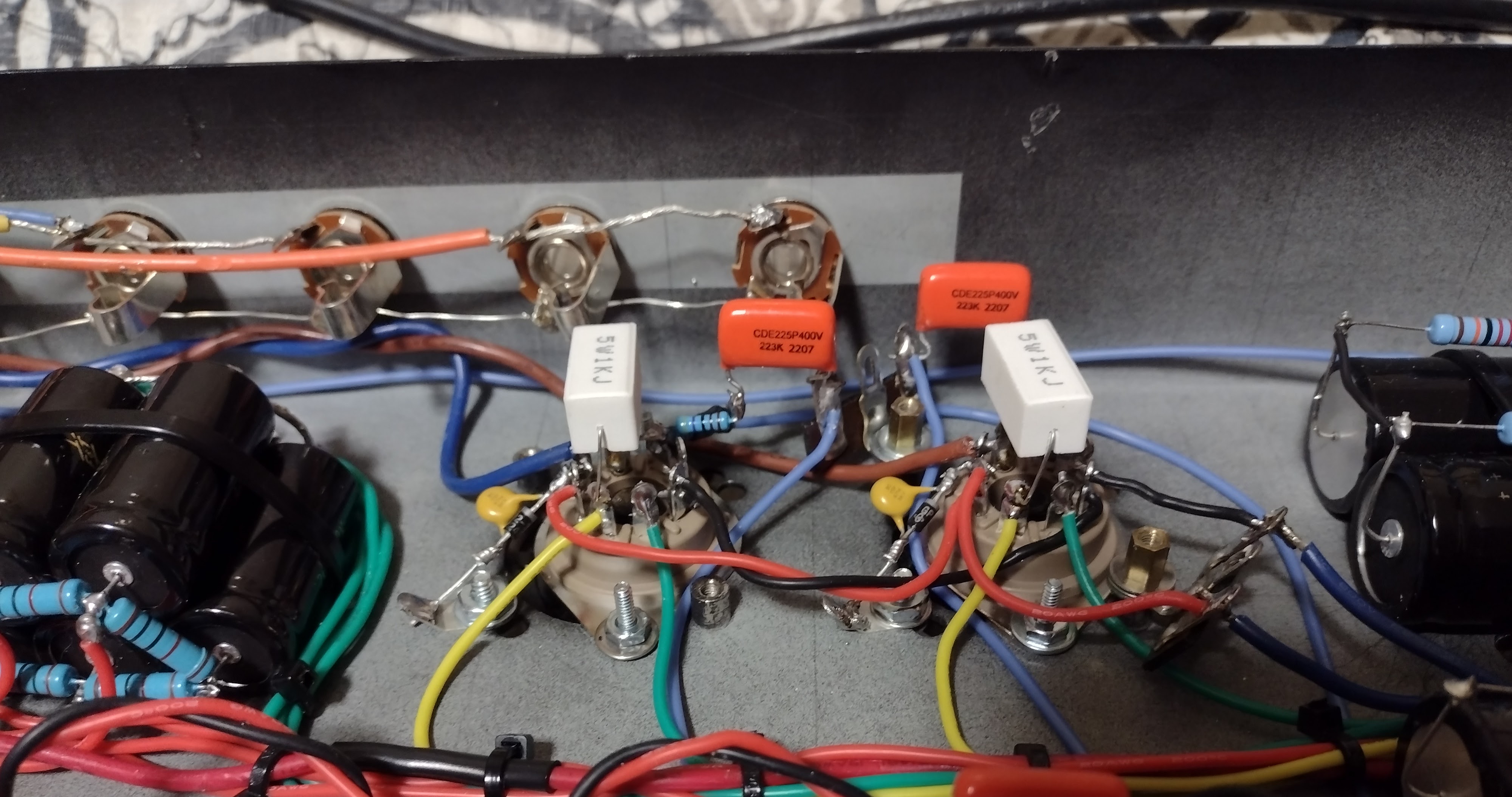 There's a couple different schemes on the Gain 1 Bright Cap deal. On this amp it's really bright with a 1n cap, so I have a 470P in there right now. I can always play with it latter. I wonder if it has something to do with the Output Transformer??