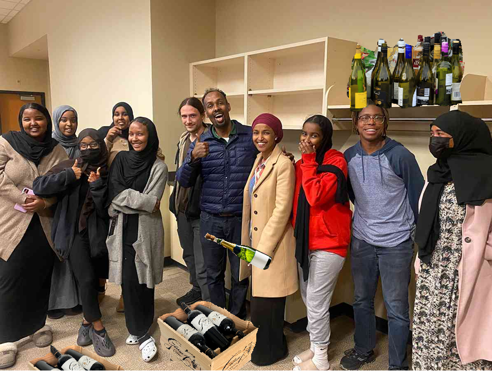 Have one of the wine bottles from "her" winery suspended just inches out of reach at all times, and some yummy Somalian cuisine.