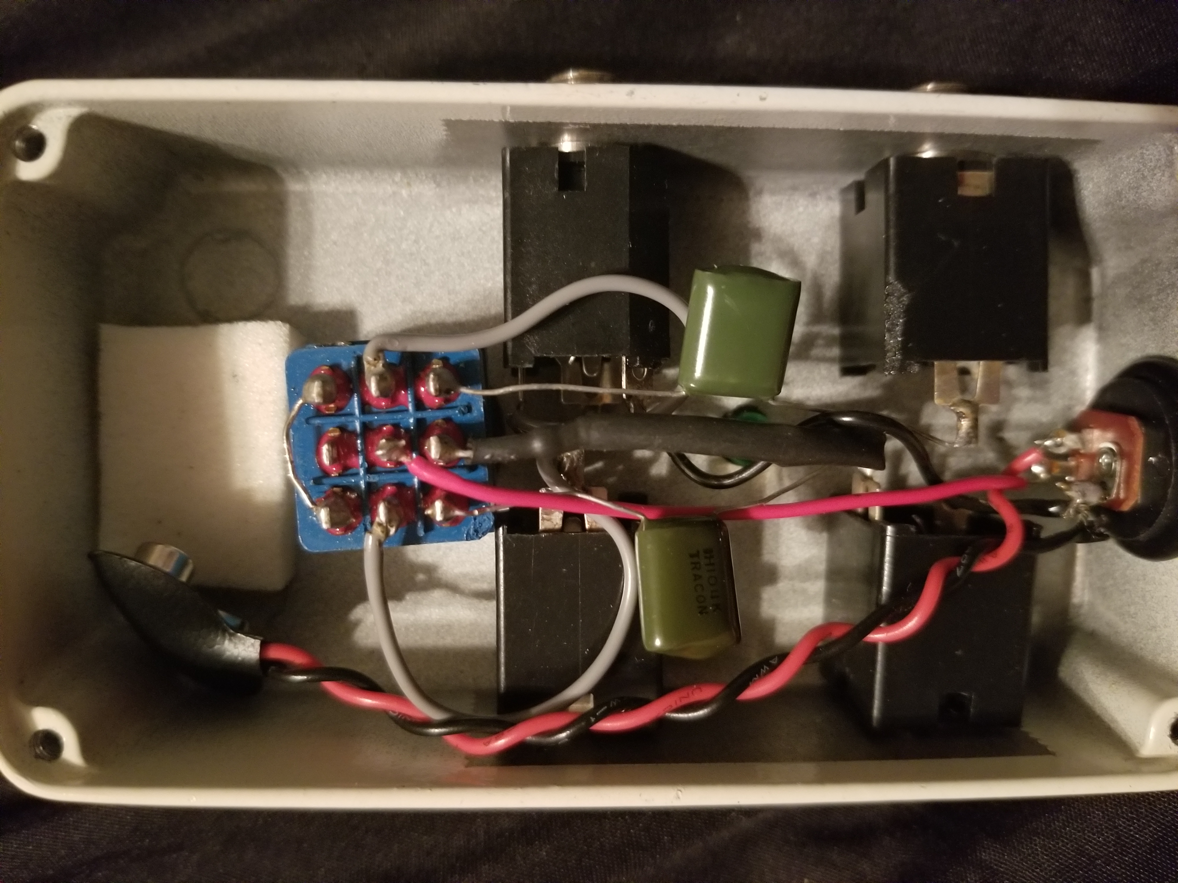 My True Bypass Looper pedal is crapping out. I eliminated cabling issues or any of the pedals in the loop, so it has to be the looper. I popped it open and tried continuity testing the circuit, and the only issue I found could be these caps connecting the sends and returns. The only thing I could think of is these are to limit popping noises in the loop. Most of the schematics I found online though just call for wire. Do I need these caps in the system (test or replace them?), or should I just bypass them with wire?