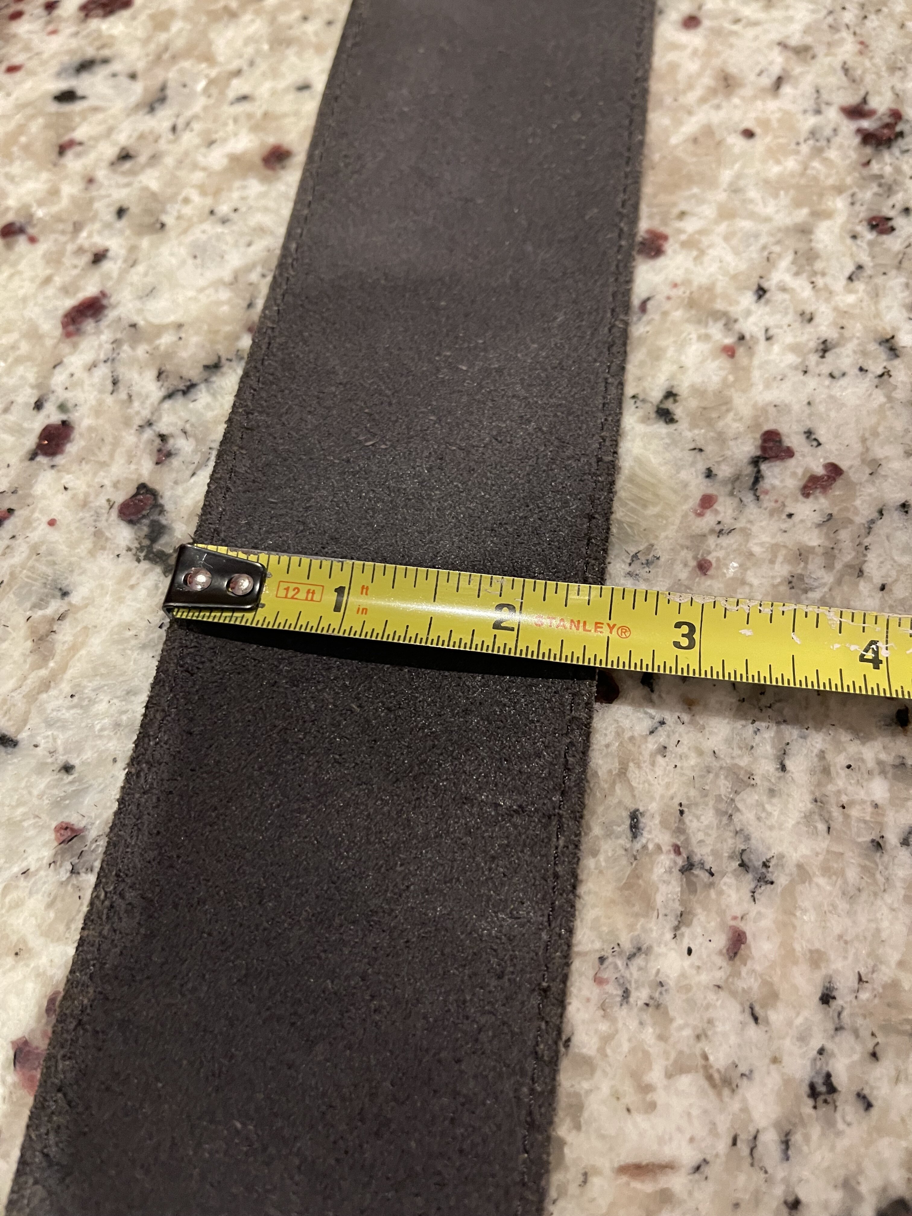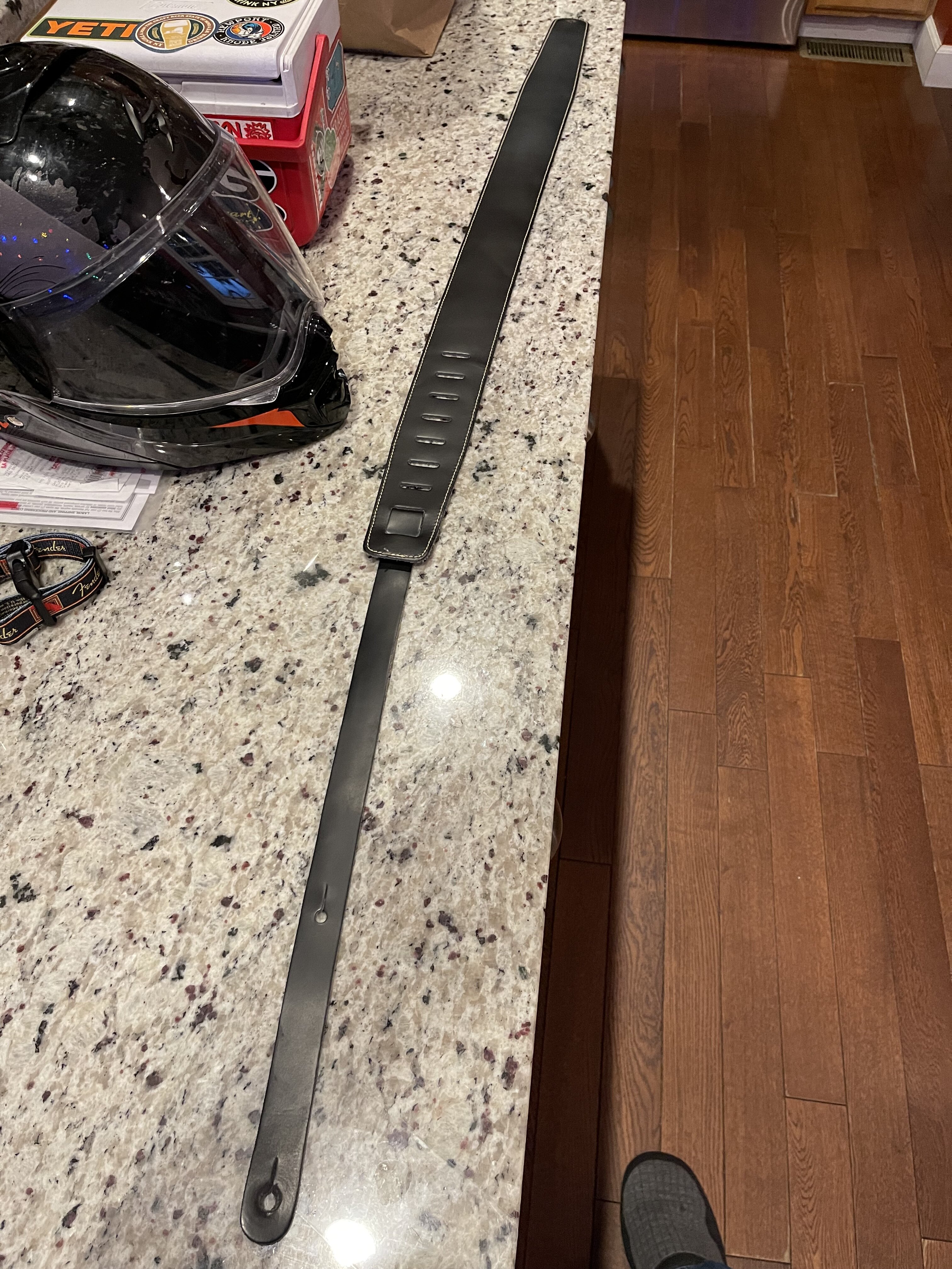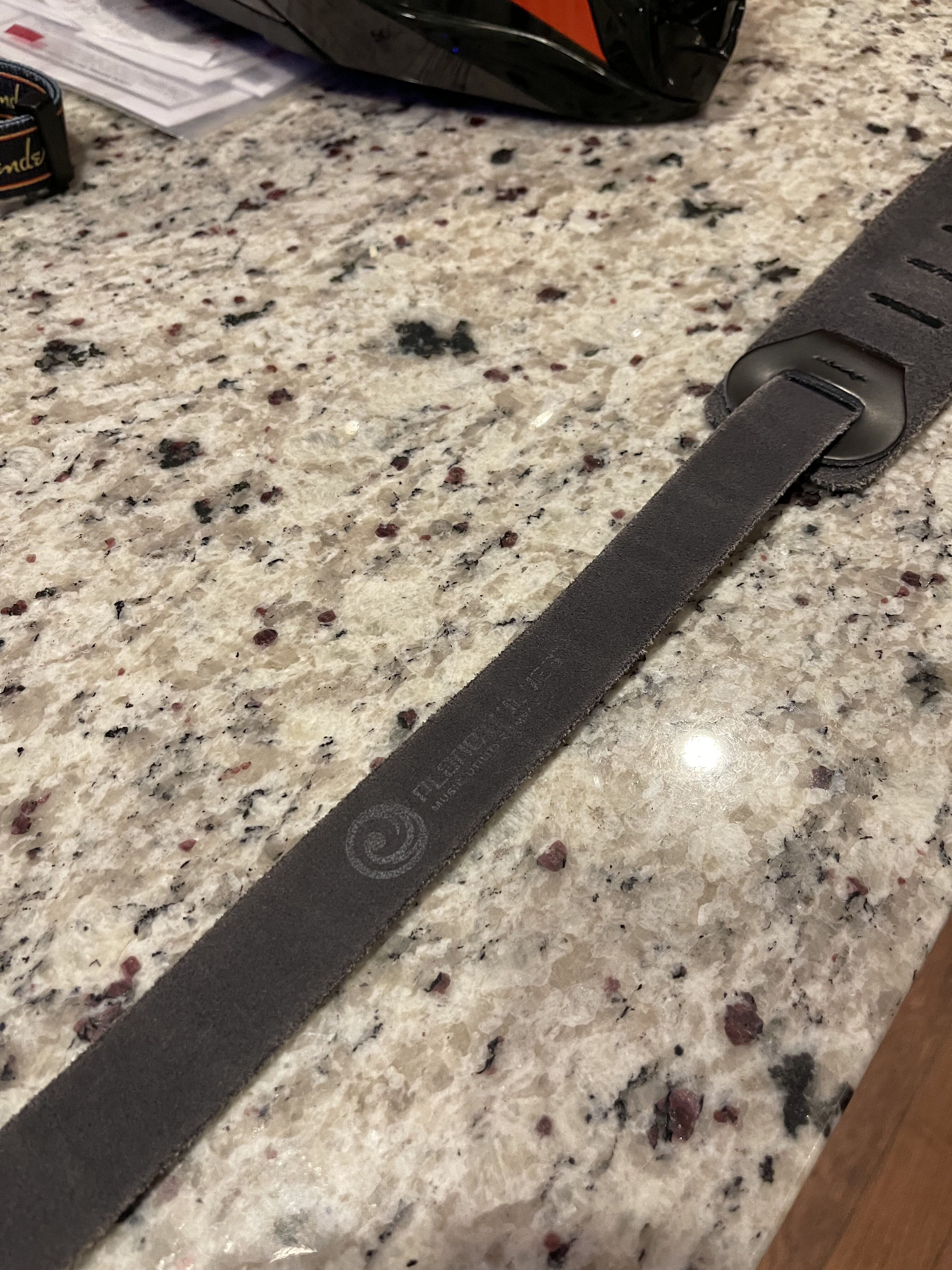 I've had a bunch of these 2.5" leather straps over the years and given some away and I was looking for some more. They're a little glossy on top and suede on the back. I was thinking that they were Planet Waves, possibly before D'Addario bought them out. I just tried buying some of their current basic leather straps but they're different than these. Cheaper, thinner leather, more holes on the end, smaller taper on the upper side, and now they have the D logo stamped on them.