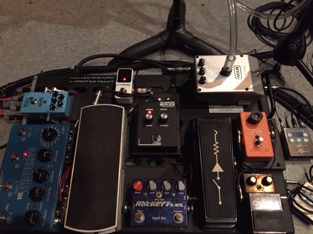 I know he's using a two amp set up. He was running two JCM 800's with two 4x12 cabs on a lot of the Daisies tour. It's a scaled down rig for sure. It looks like he's running out of hisTC delay to the effects return on both amps. He's a killer player for sure.