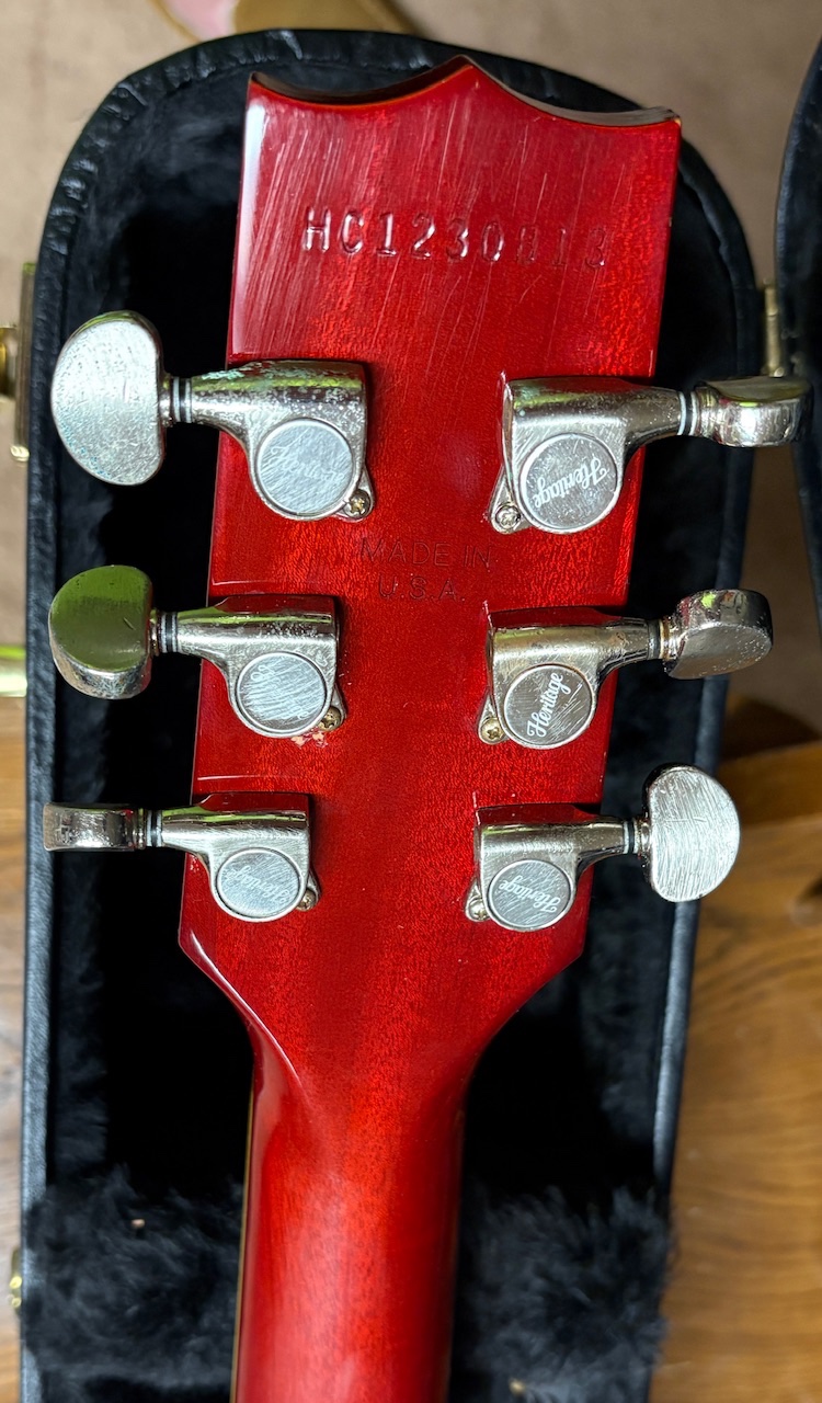 Wow! I mean, that should be pretty fixable, but then the shinier finish on the color won't really match the cracks forming on the finish over the binding. Either way, that is a BEAUTIFUL finish and top/back on that guitar. You are THE authority on Heritage guitars on here.