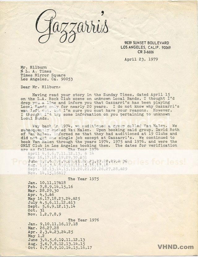 Roth - “Van Halen started in bars playing top 40 and shit. We started in little bathroom places and now we’re at the Whisky, and we’re probably gonna take over the world, soon as our record comes out on Warner Bros."