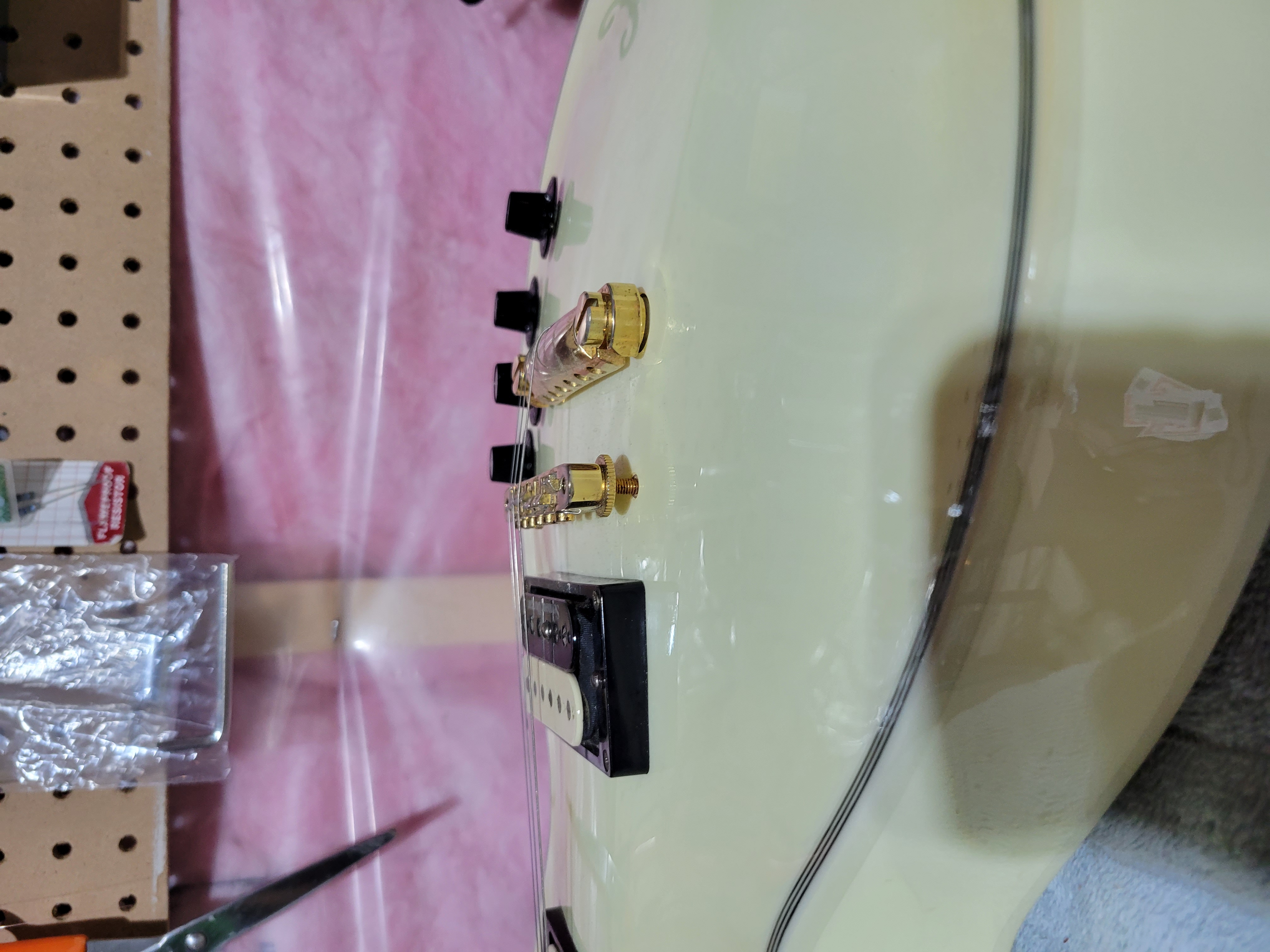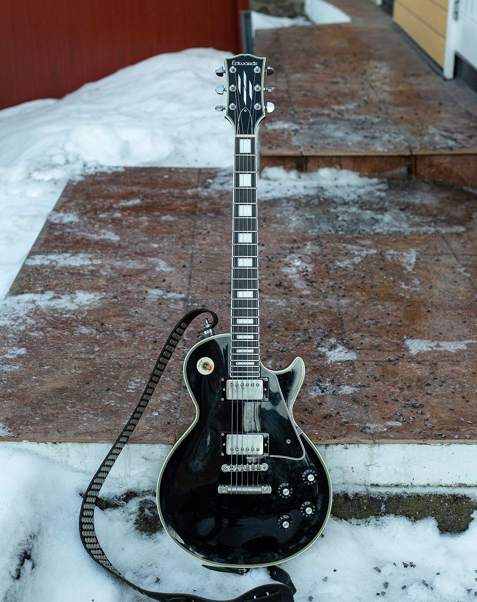 So I got this creme/ off white ( it is aging to a more yellow) 2005 Edwards LP and the thing must have come off the same assembly line as Chubtone's because it is a good hefty chunk of wood. Very resonant though and I'd say apart from some uneven coloring on the body due to sweat at contact points, the guitar is in very good clean shape. Few scratches here or there from use but very low action and a smooth player. My question is, were a lot of these Edwards LP's trying to go for the Gibson Custom " Fretless Wonder" feel? I know Rhoads apparently liked these low profile frets and his 74' seems to have been a "fretless wonder". At first I thought the frets had been worn down and I bought a lemon from someone who hid this fact in the listing but they do not seem to have excessive wear. There was also very heavy gouge strings on the thing which I'd think would wear the frets down faster. So I am wondering, are the Edwards LP's generally fretted with low fast frets? I come across this observation a lot in my google searches. This particular Edwards also has a more pronounced neck angle and as such the bridge rides high. I found it strange at first but apparently a lot of older Gibsons also have this and I have confirmed that by looking at pics.