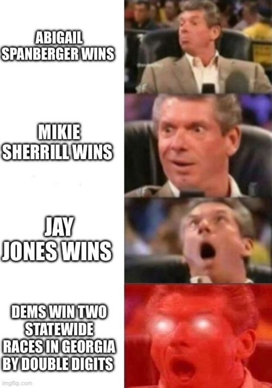 C ya in 2026 bitchboyGeorgia picked up seats on the public service commission. Oooh. And Mississippi elected just enough democrats to end the supermajority. Republicans are still in the majority. I guess after the shellacking they took in the 2024 NATIONAL election they gotta take what’s they can get. Funny that retards like JD think it means something.