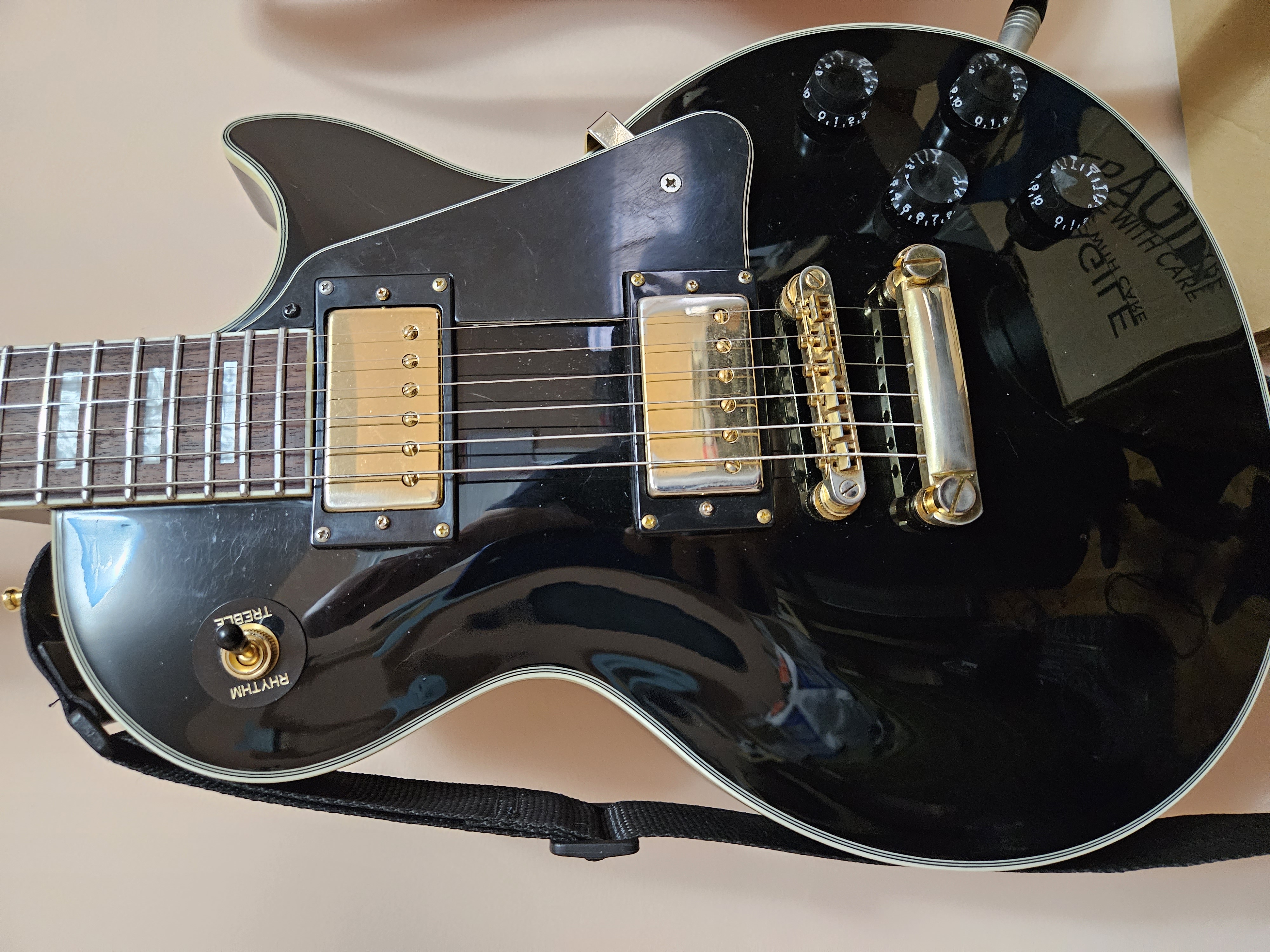 2003 Epiphone Les Paul Custom made in Korea. Has brand new stainless steel frets. All original. Pickups sound amazing. Great condition with just a few minor dents and scratches.....nothing major. See pics. Comes with hard shell case. Will be packed well in guitar box. Shipping from Montreal.