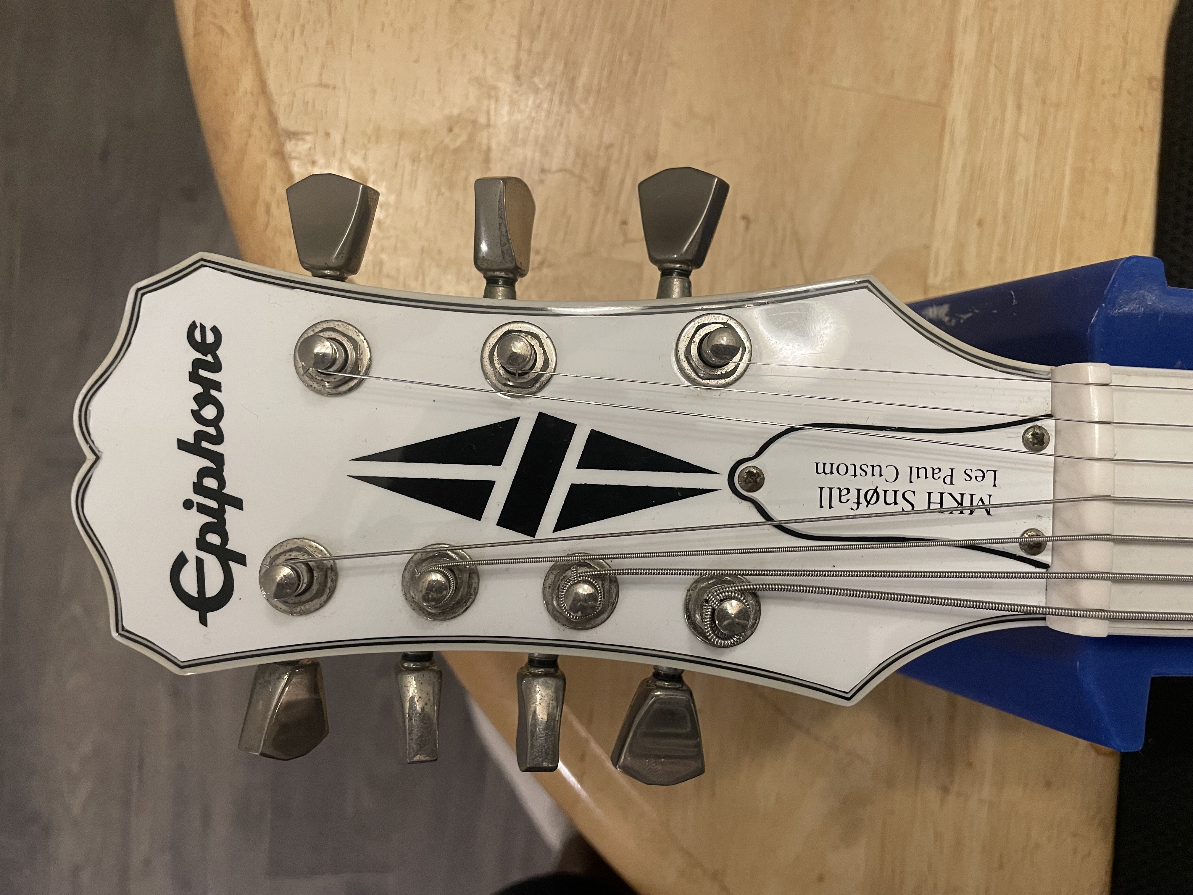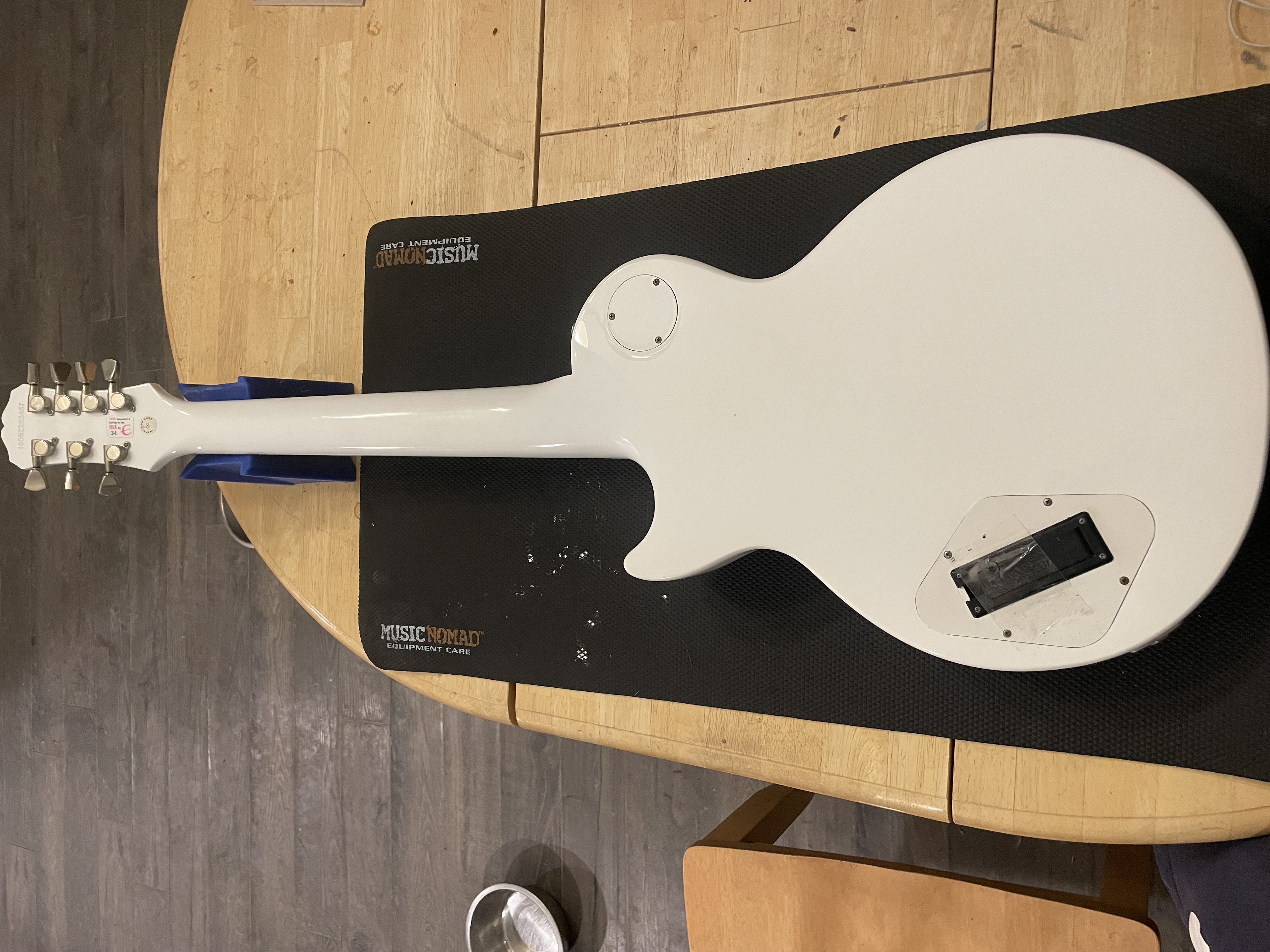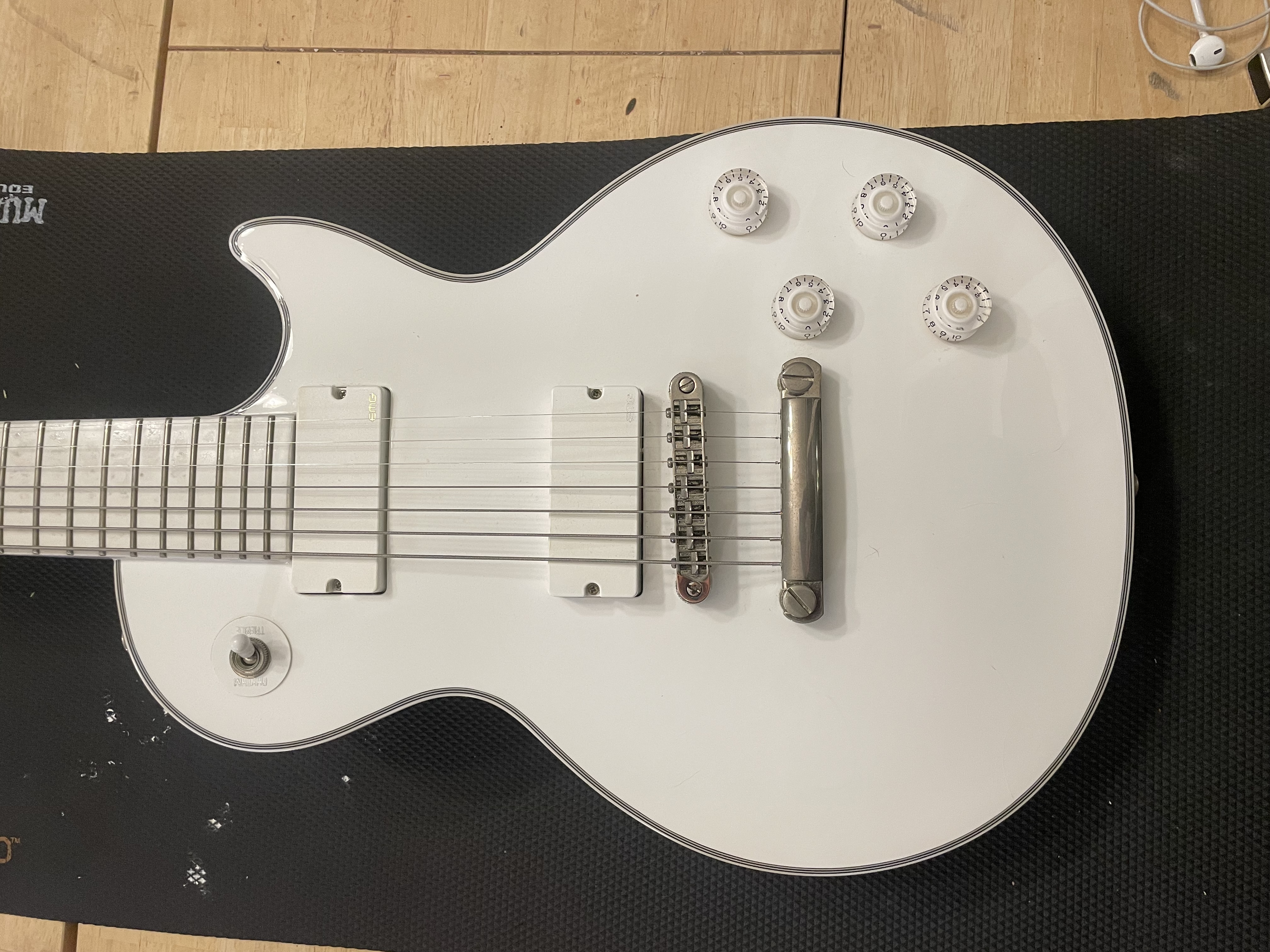 Matt Heafy Limited Edition Matt Heafy Les Paul Custom-7 seven-string, a totally killer original take on the world famous Les Paul. All white but I don’t have the Hardcase. I do have a gator gigbag. Never had the COA either the original owner lost it I think. I have the battery compartment tapped down, but can order a replacement or install an original les Paul one old fashion style.