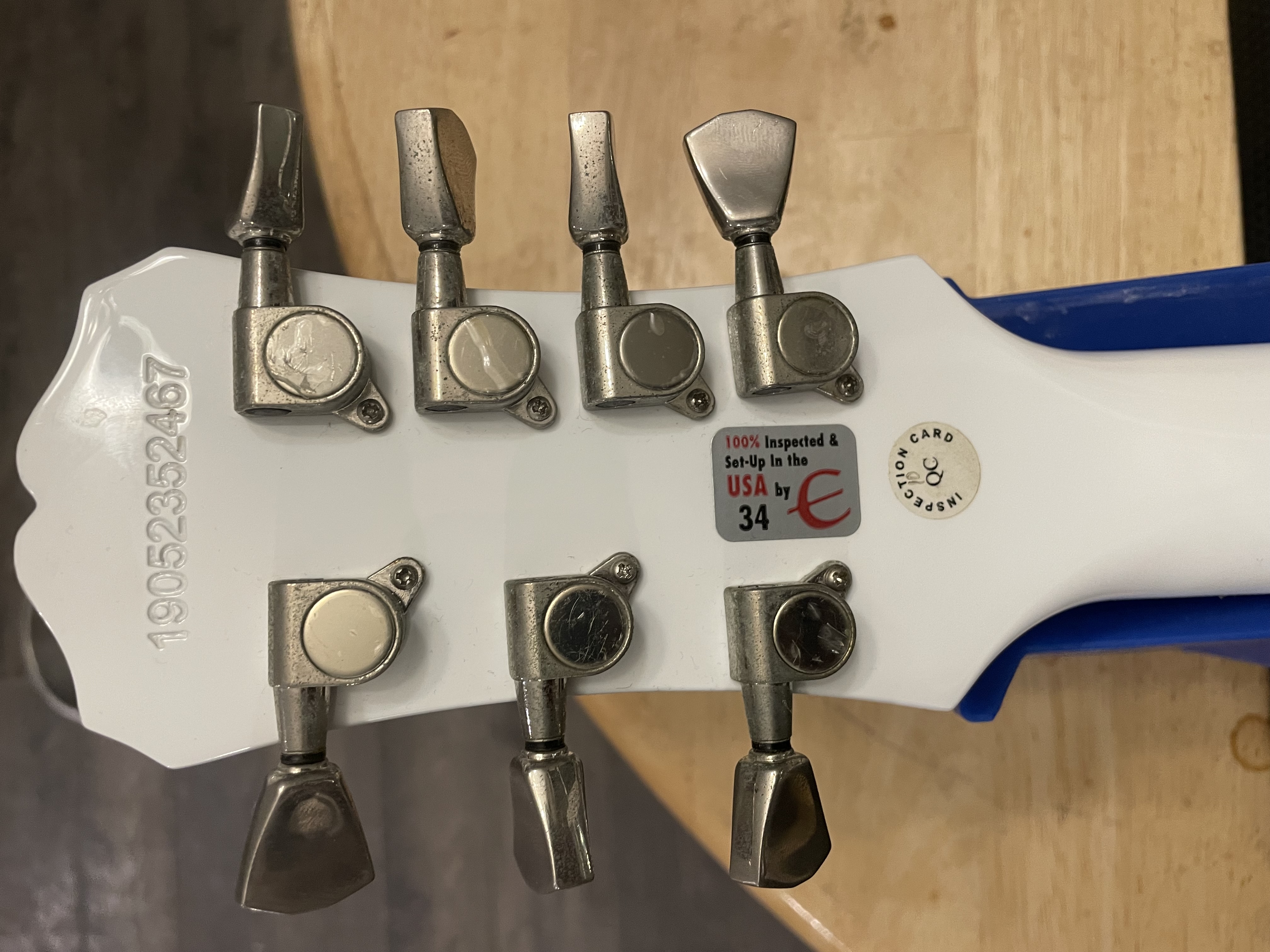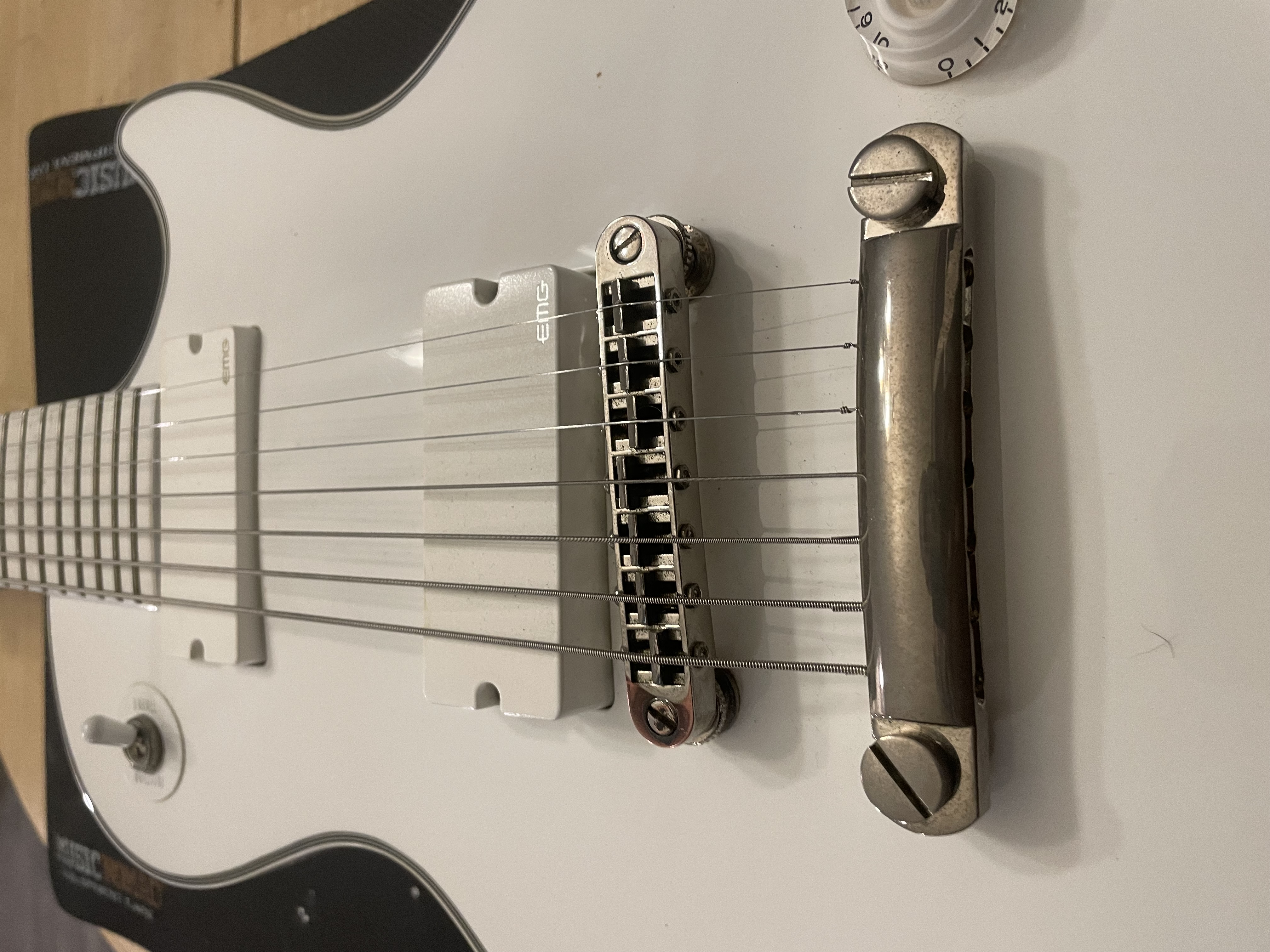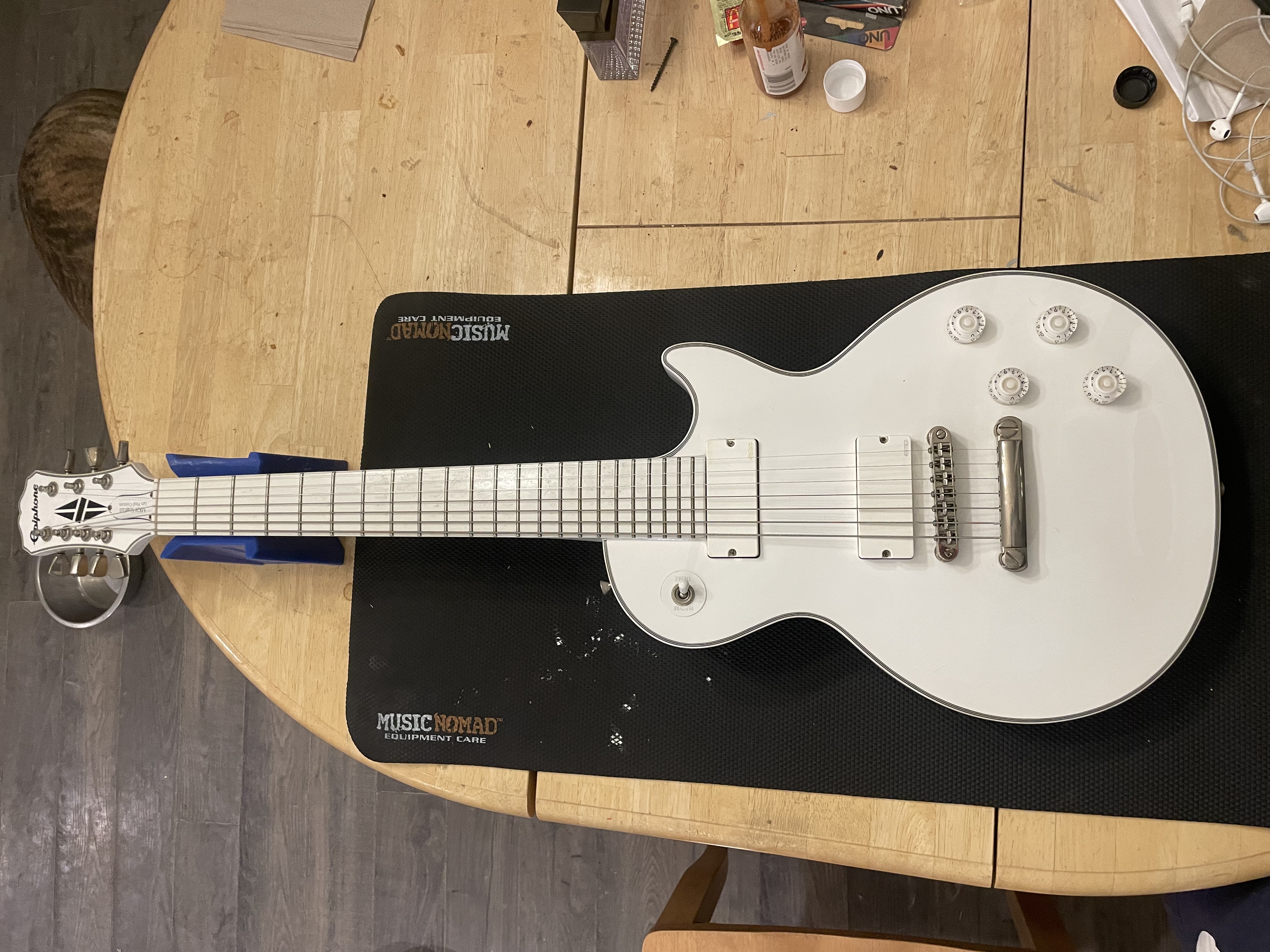 Matt Heafy Limited Edition Matt Heafy Les Paul Custom-7 seven-string, a totally killer original take on the world famous Les Paul. All white but I don’t have the Hardcase. I do have a gator gigbag. Never had the COA either the original owner lost it I think. I have the battery compartment tapped down, but can order a replacement or install an original les Paul one old fashion style.