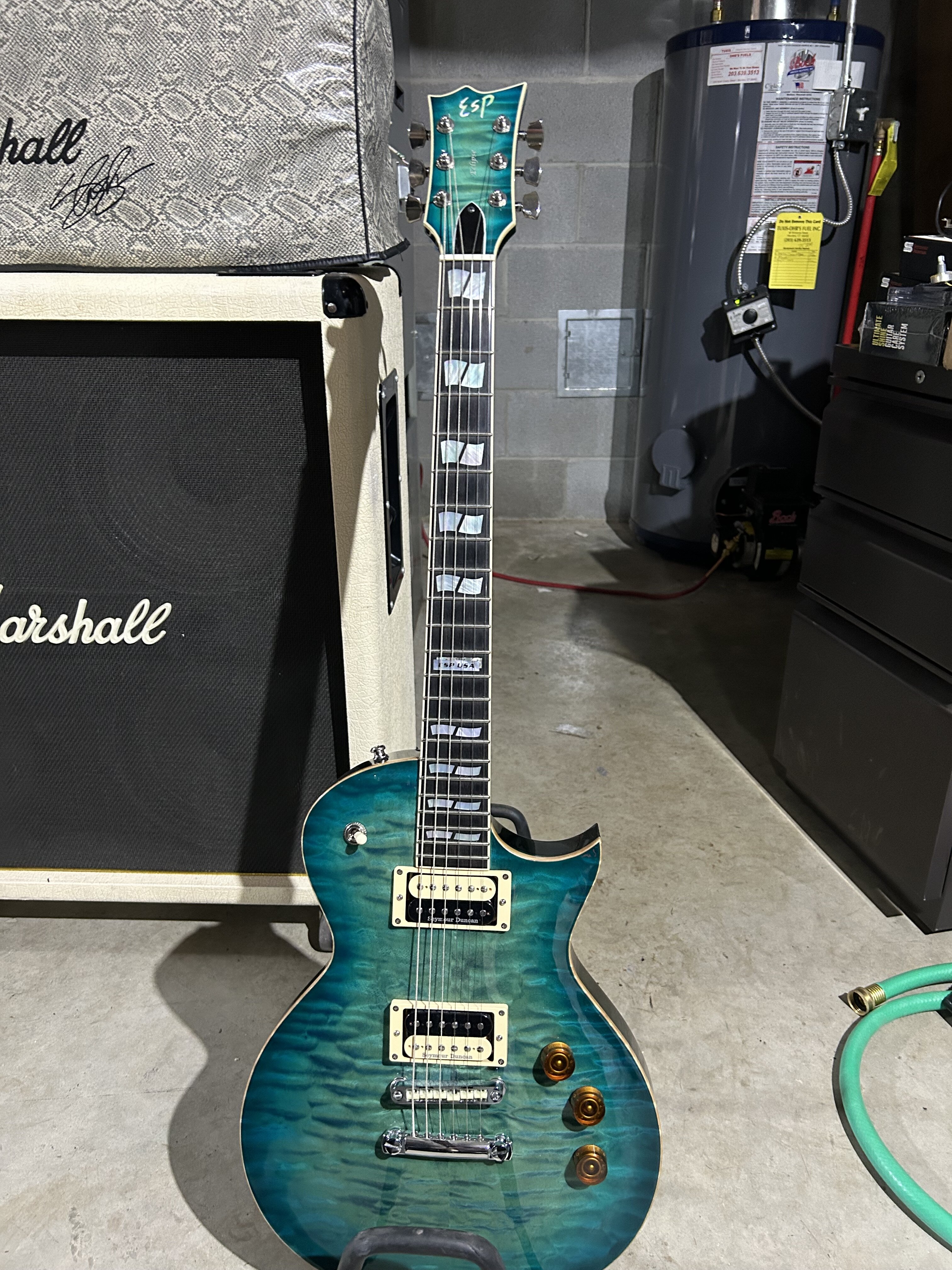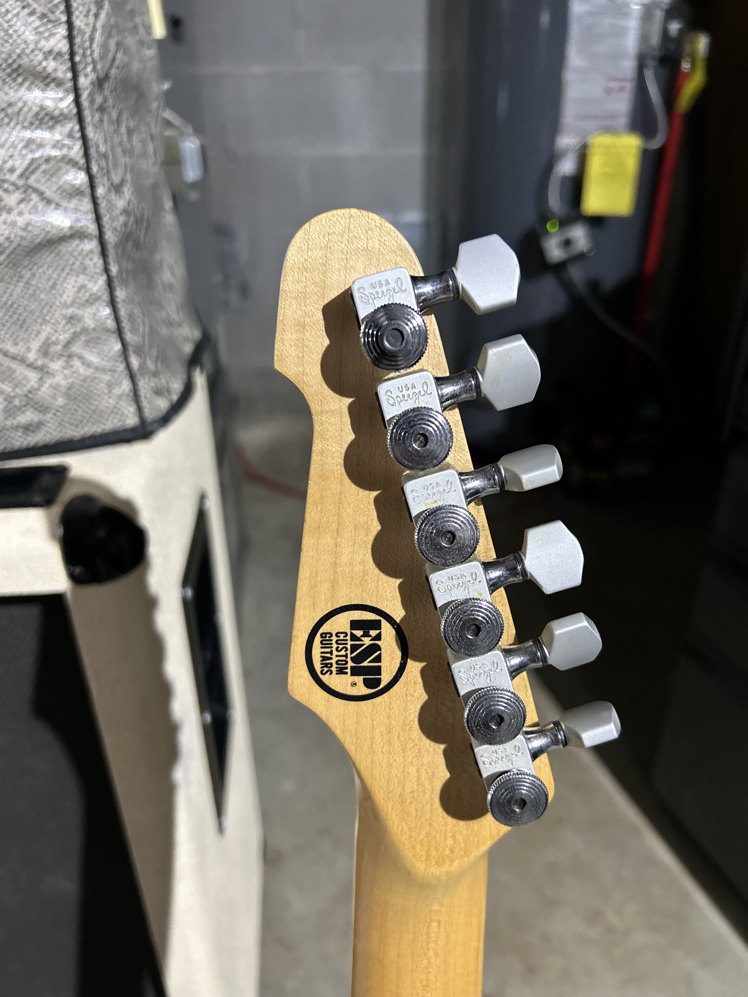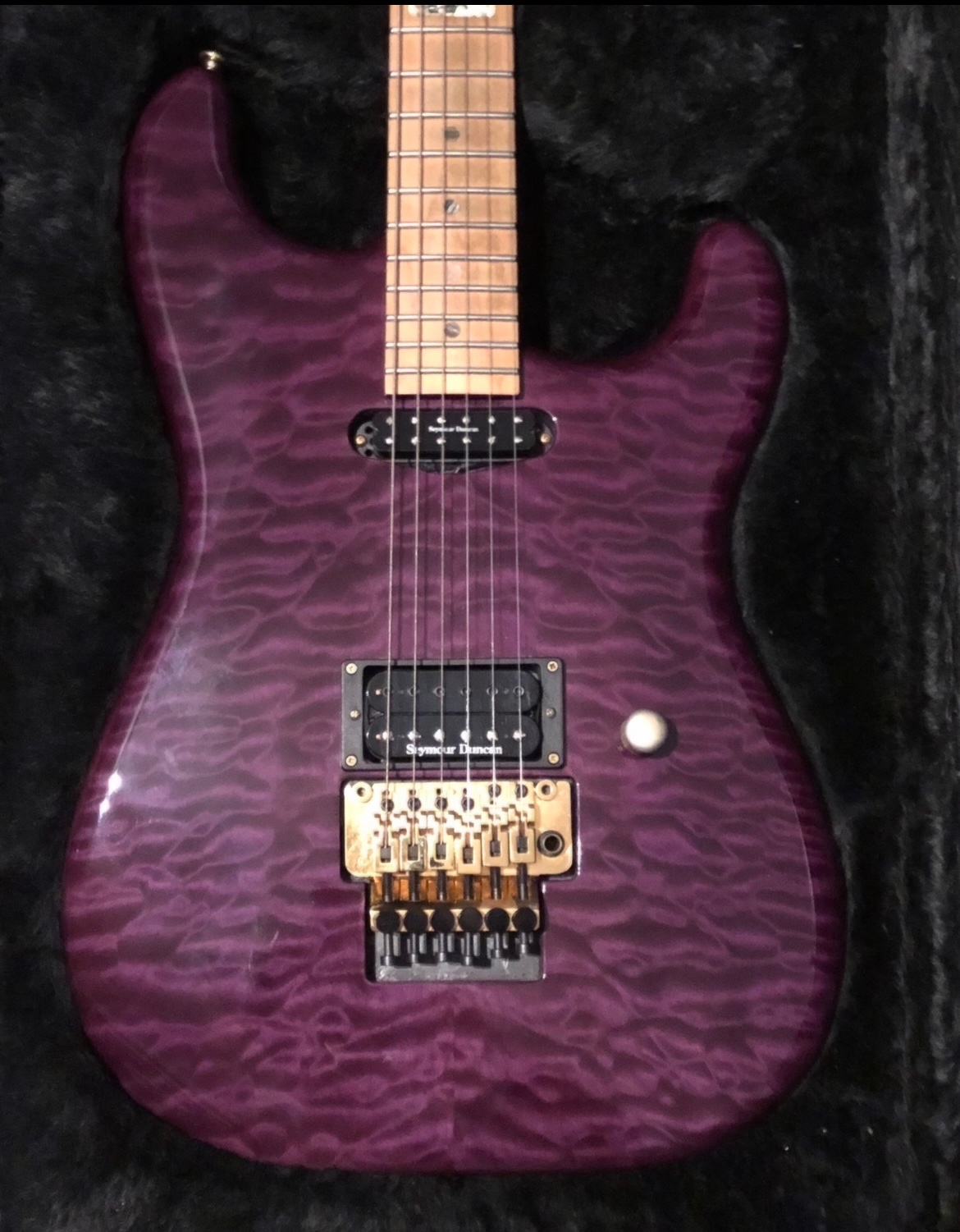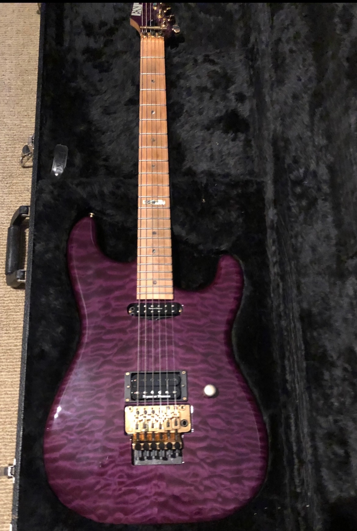Also selling a purple quilt over alder custom. Typical great ESP neck on this, Lynch input jack & push/push pickup selector, reverse headstock. Not sure what Duncan’s are in this but can pull them if you need me to. Custom ESP’s have gone through the roof. Guessing this is a $4k guitar now is spec’d out.