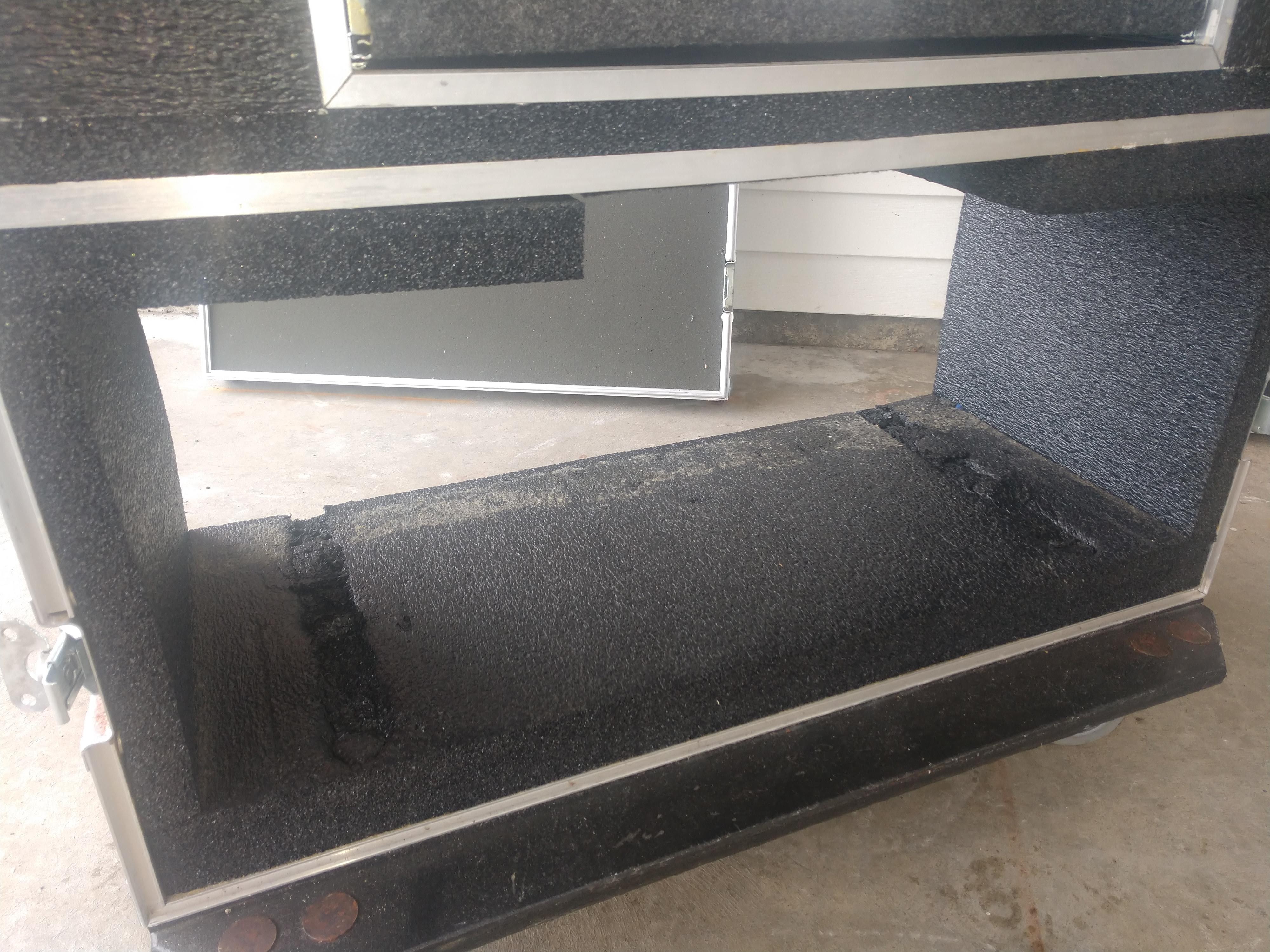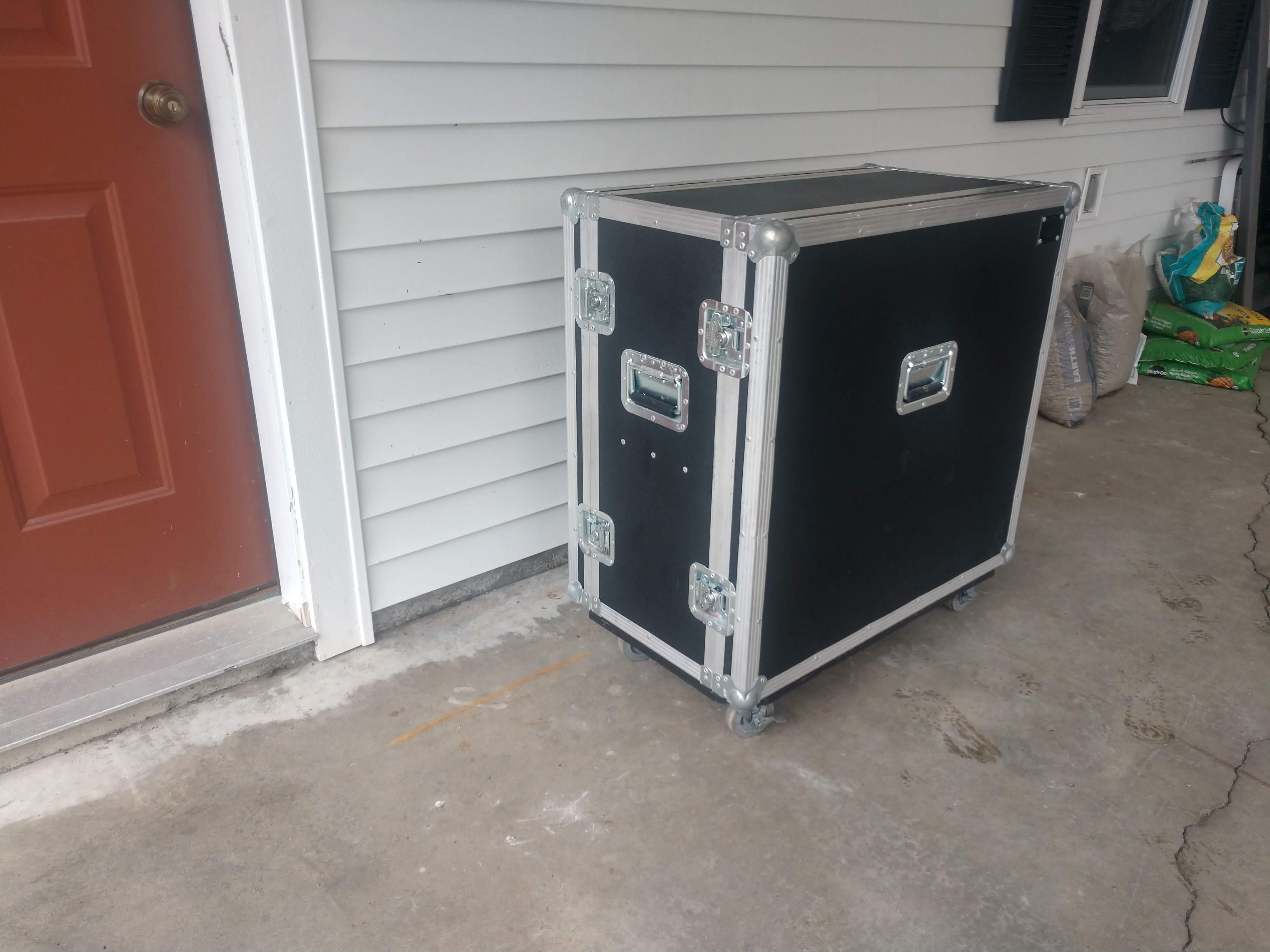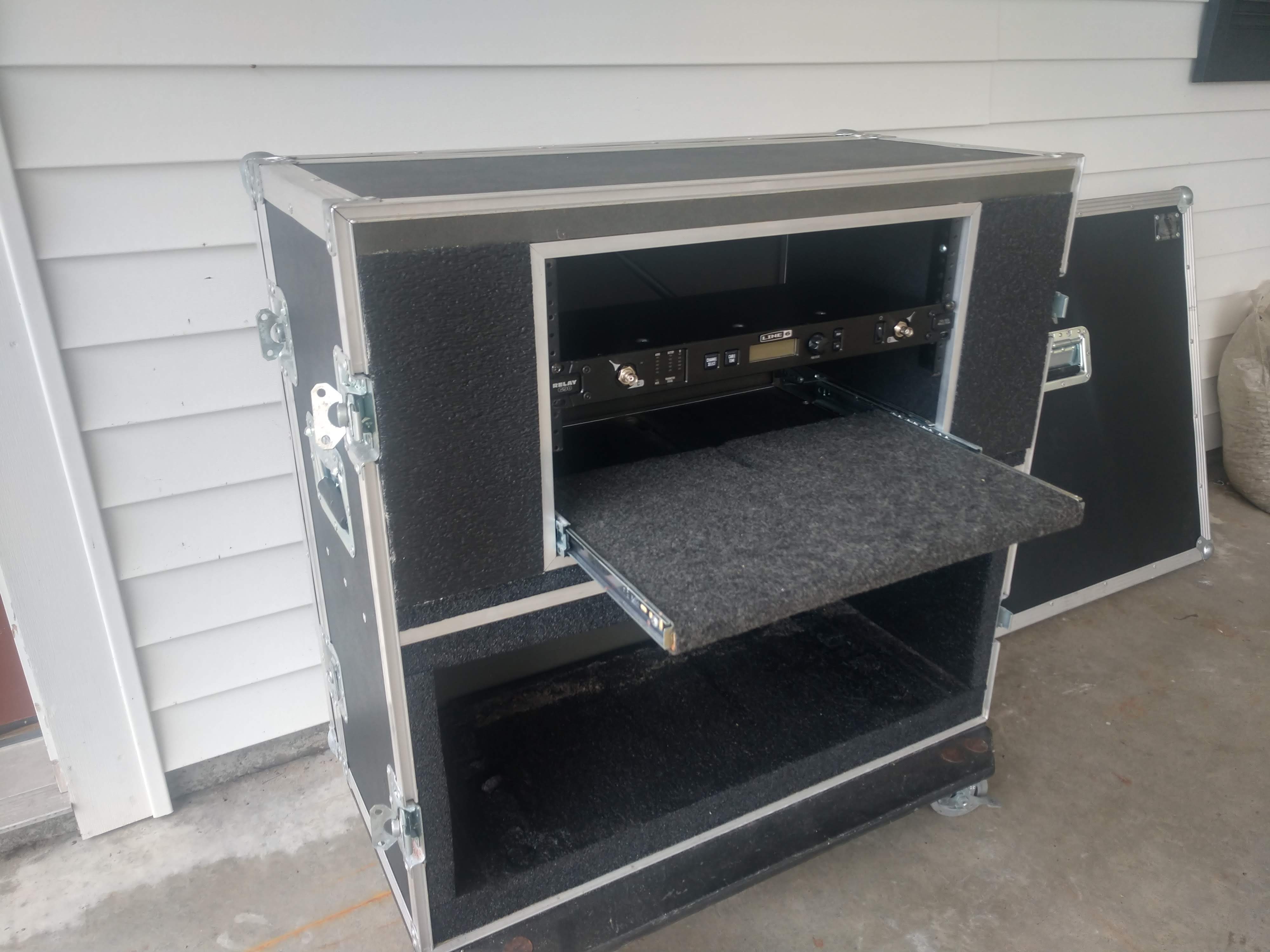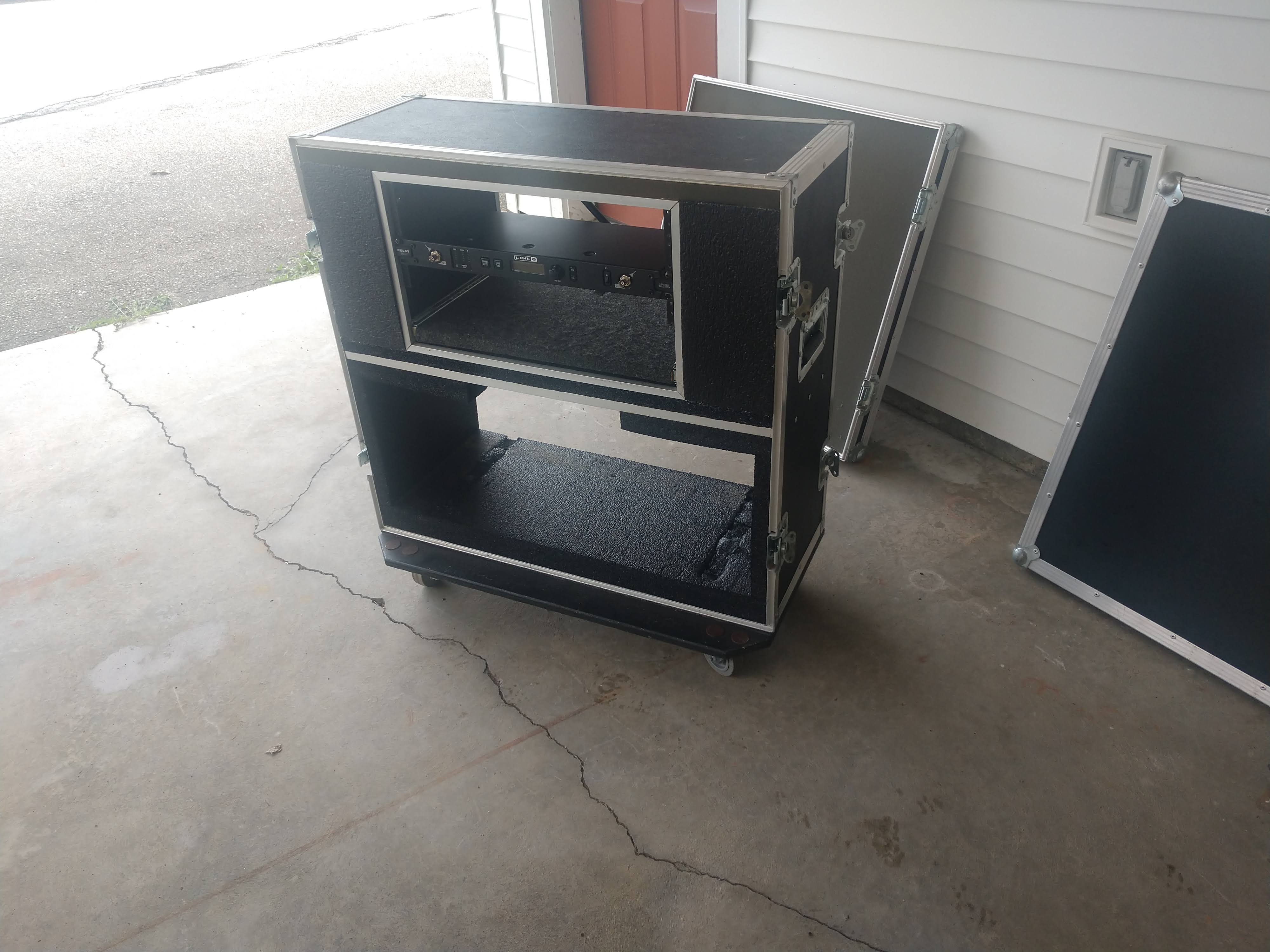 Amp Head + 4 space Rack roadcase, made by Rock Hard Case Co. Pull out sliding shelf for effects pedals, power supply, etc. Bottom foam has a bit of wear but is easily replaceable. $350 buyer pays shipping