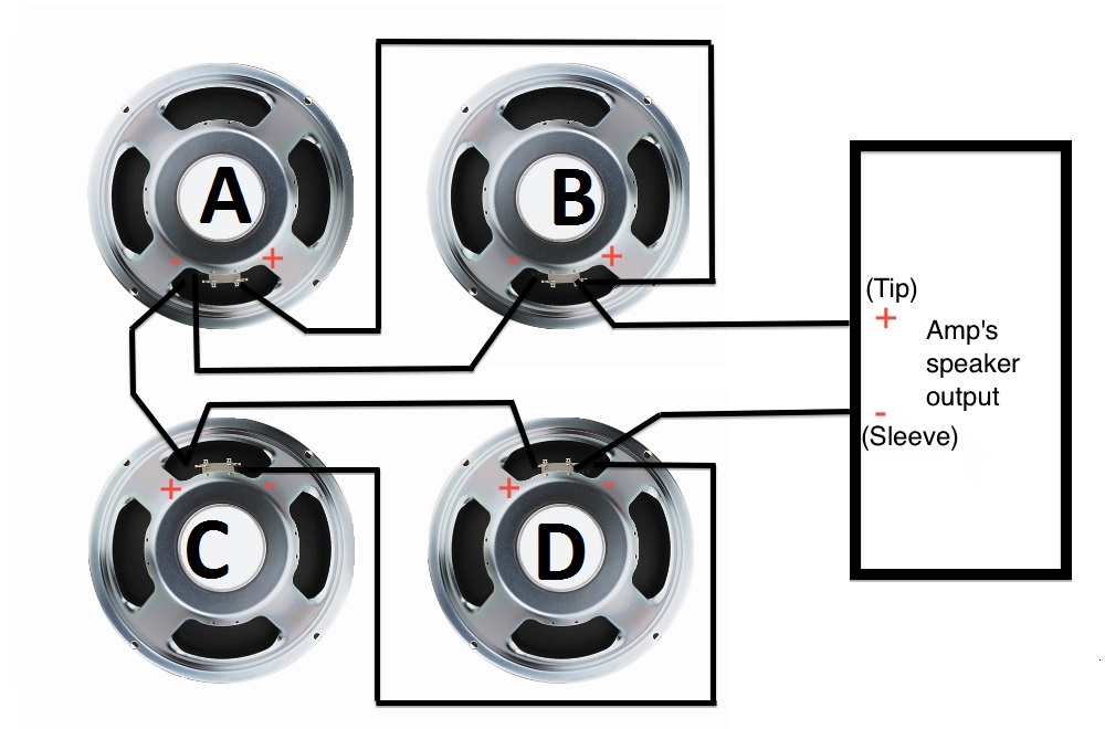 I’d also like to know how to wire up the cabinet. The jack socket at the top of the cabinet has a paralleled pairs of +/- leads coming out of it