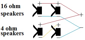 I’m assuming these go to the 2 “upper speakers”, and that the lower pair of speakers are connected to the upper pair, but I don’t know if they should be series or parallel connected ?
