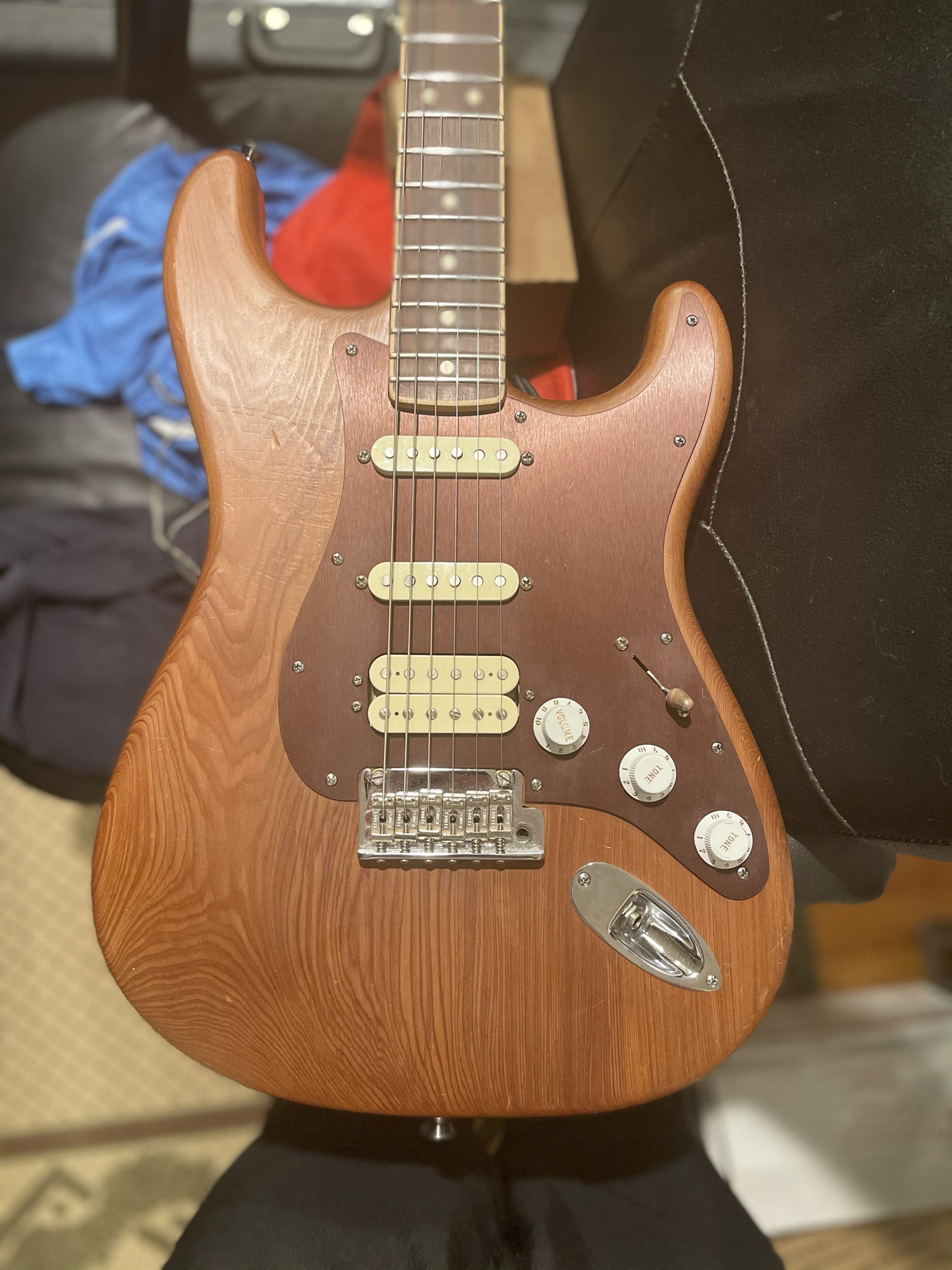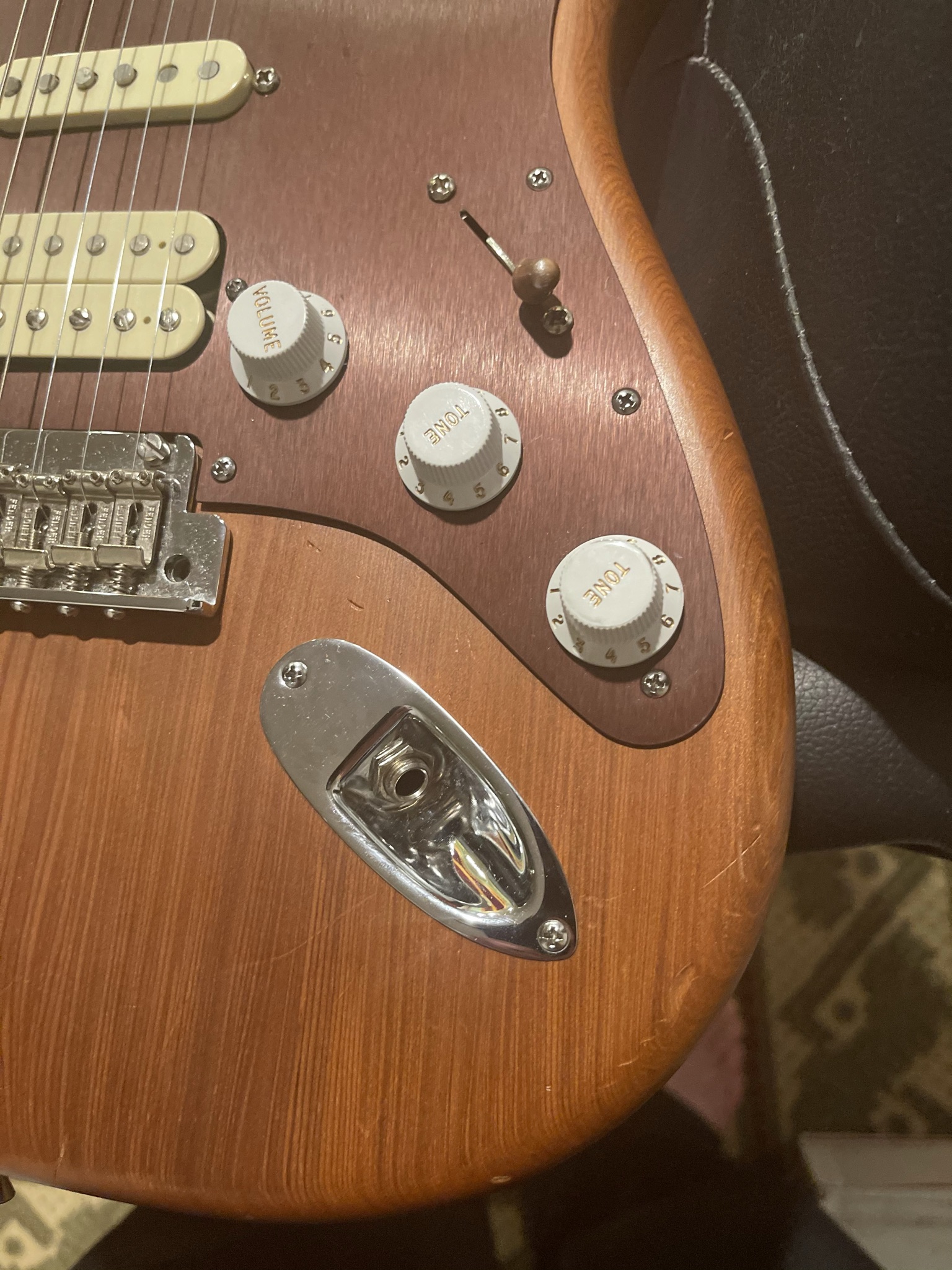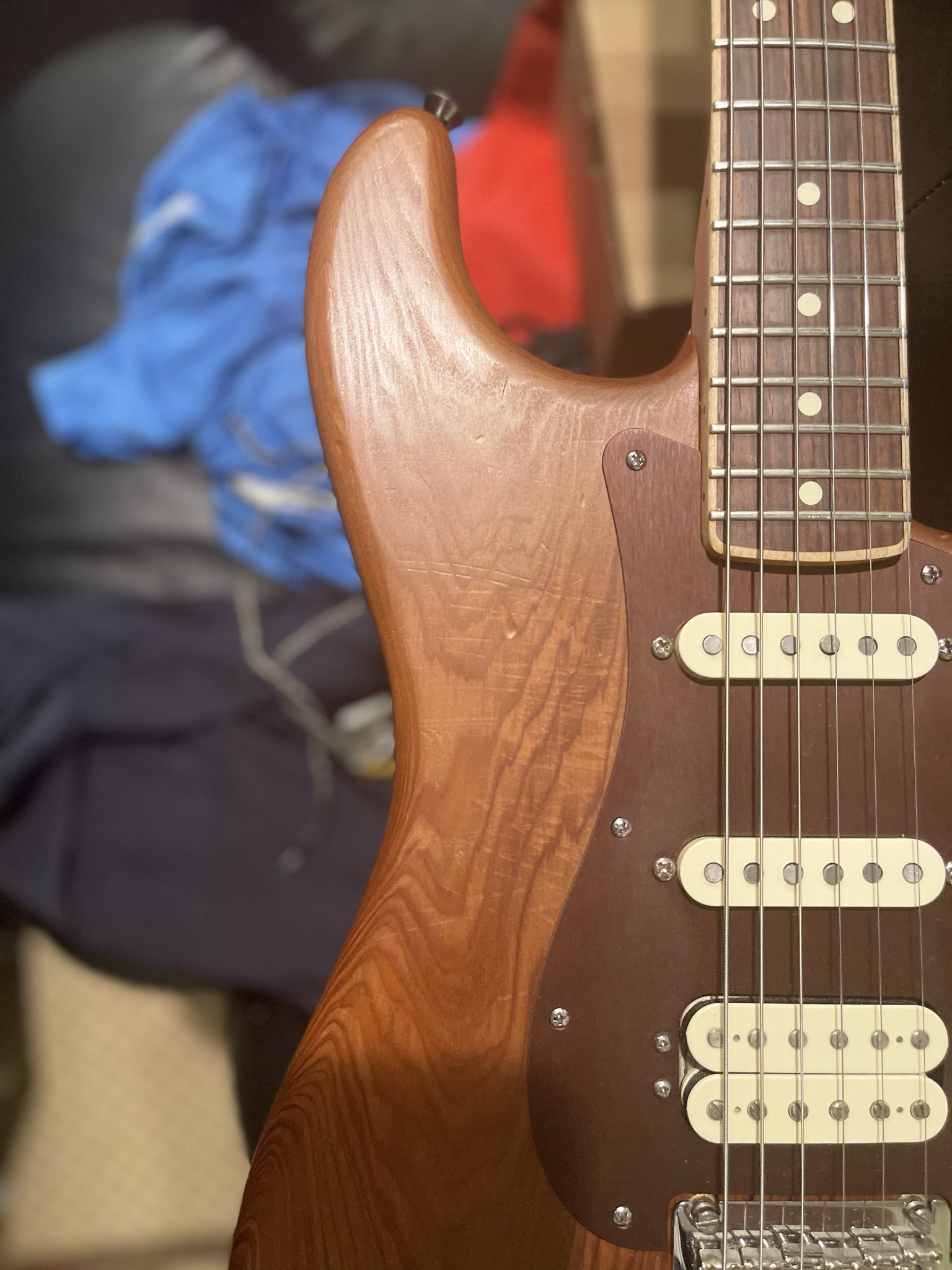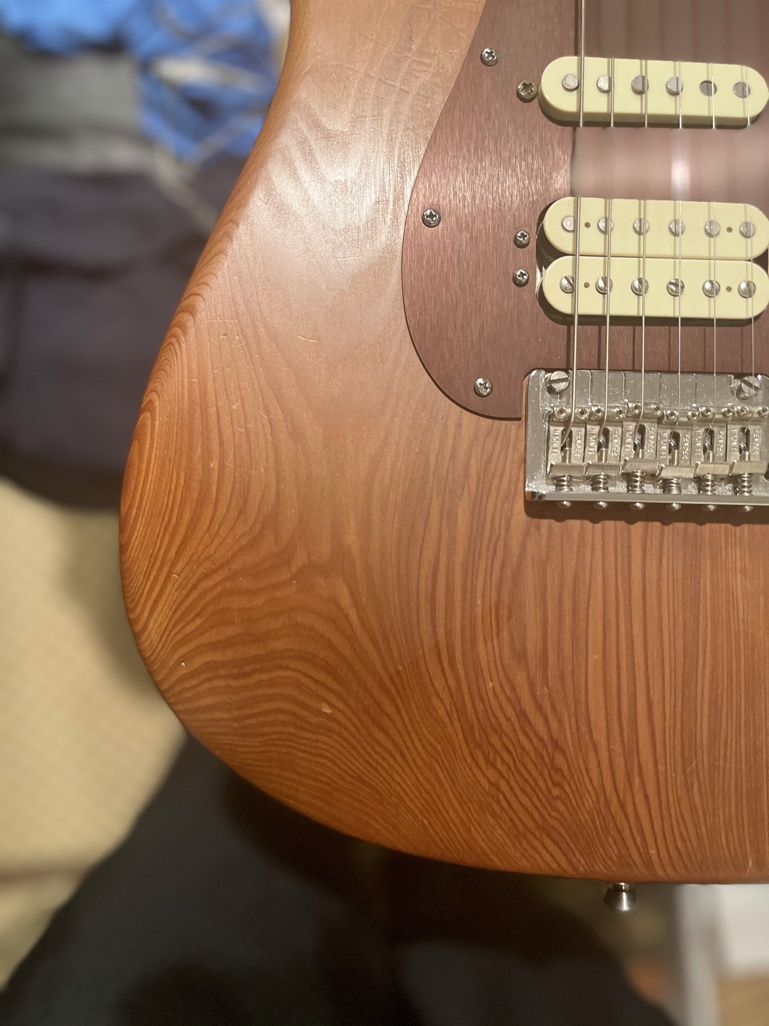 This is from a limited run where they used old growth redwood for the bodies. Has its share of scratches and dings (as seen in my pictures) that’s just inevitable from using such a soft wood and thin finish, but the trade-off is for the nice tone and looks of the redwood