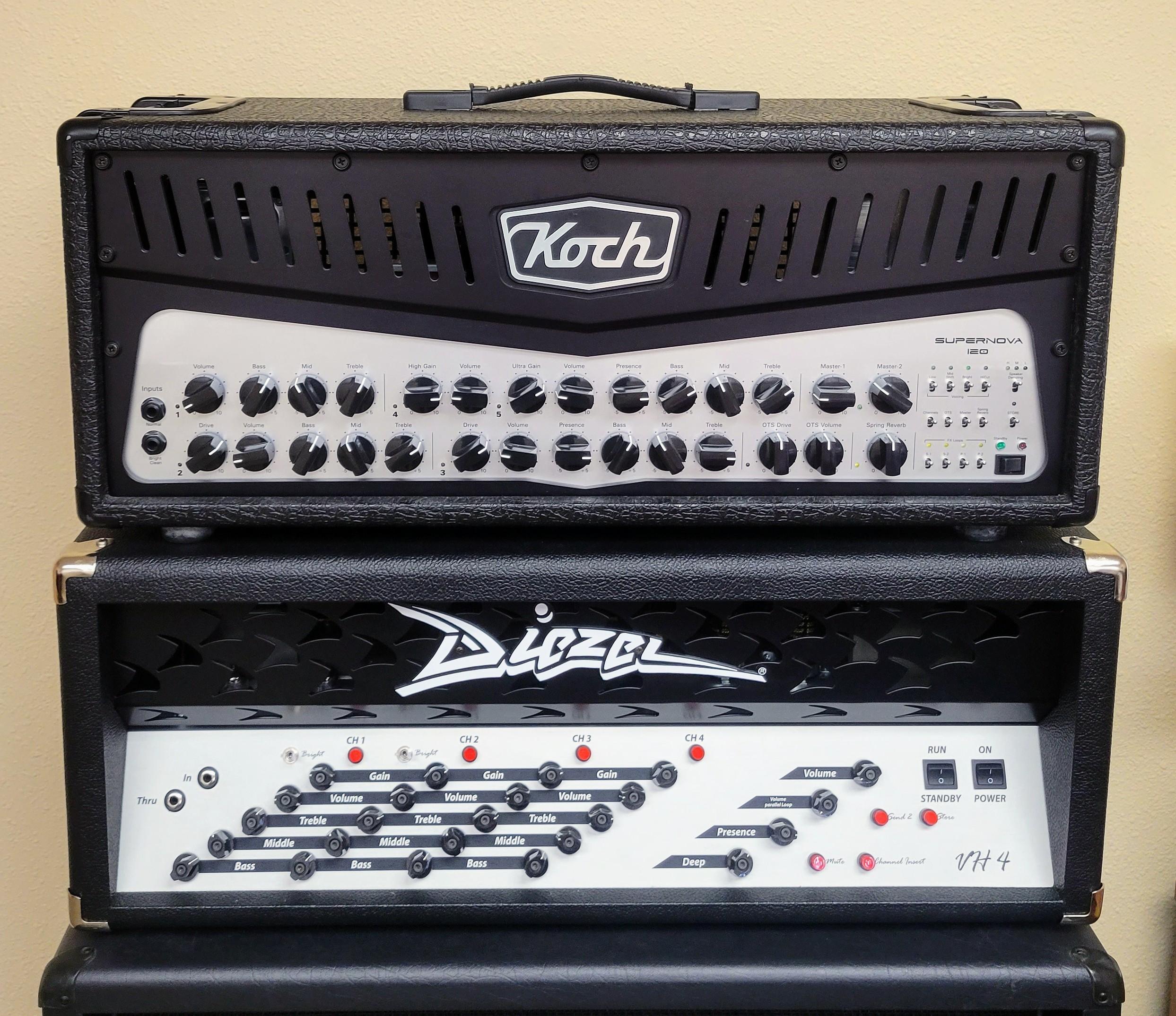 OK, now a couple questions for you Diezel guys: I typically run a dual amp set up. After the VH4 acquisition, I tried running it with my Koch Supernova head. I definitely am liking what I am hearing. That said, I may try a second Diezel head to pair up with the VH4.