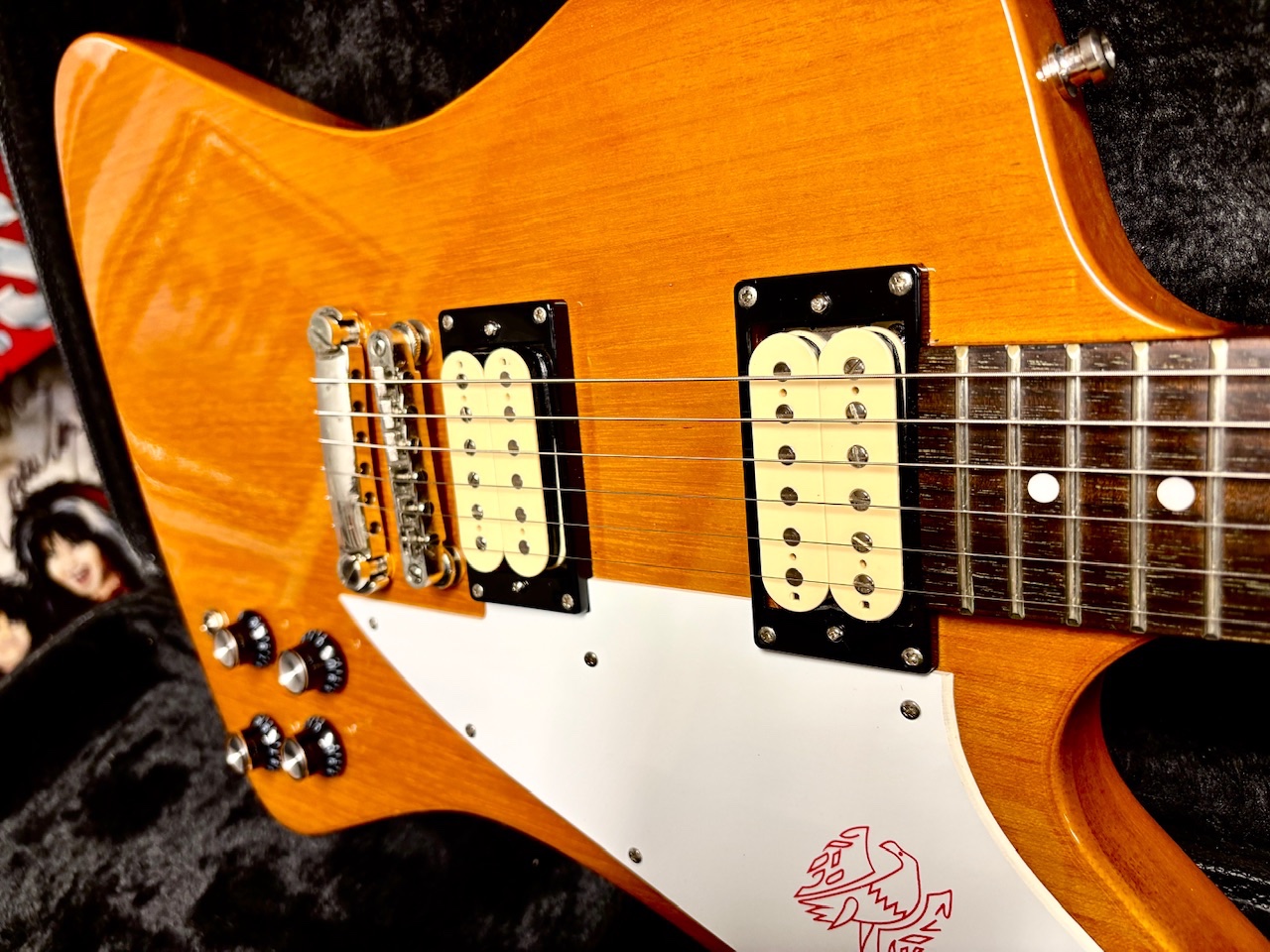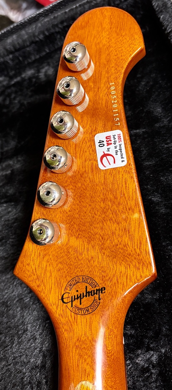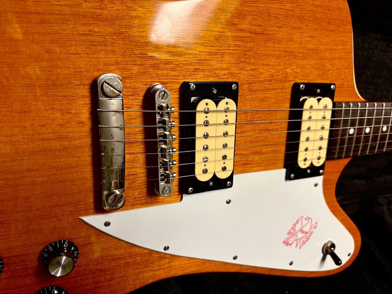 This Firebird has 2 humbuckers as opposed to 2 mini buckers. I took out the stock pickups and installed a set of Wolftone Dr Vintage pickups. I was going to re wire the whole guitar, but it does have full size pots and they have pretty good taper. I kept the stock bridge and tailpiece. I was REALLY SURPRISED to see locking Steinberger tuners on an Epiphone!!! I love these tuners.