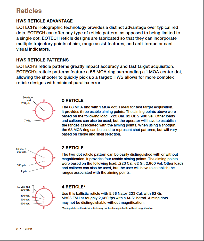 EXPS3-4. Should be good. I had an original Bushnell Holosight when they 1st came out back in the day and it was great. I had it mounted on a Taurus 44 mag Pistol, but sold them when times were tough.