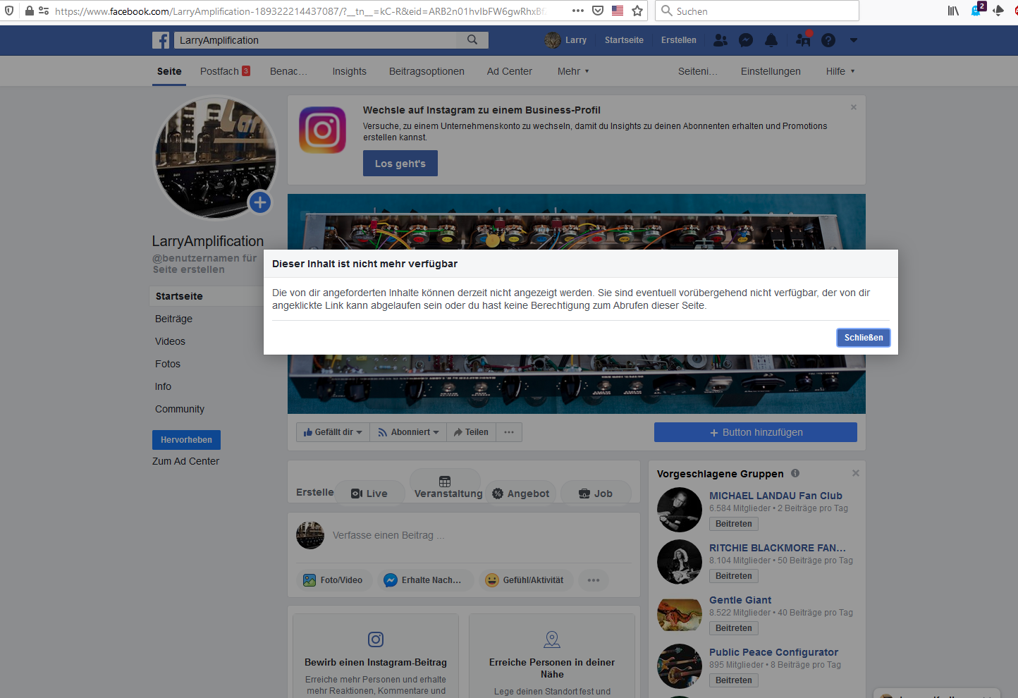 Every now and then, when I step on my Facebook business page "LarryAmplification" this happens: