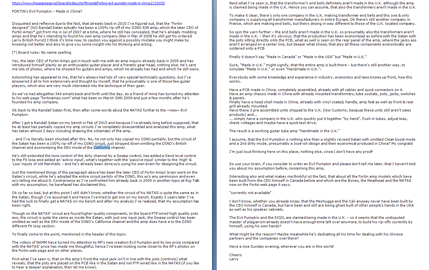 He buys 2 amps and then starts his own company? Claiming that these designs are unique to Fortin amps? Not cool and unacceptable.