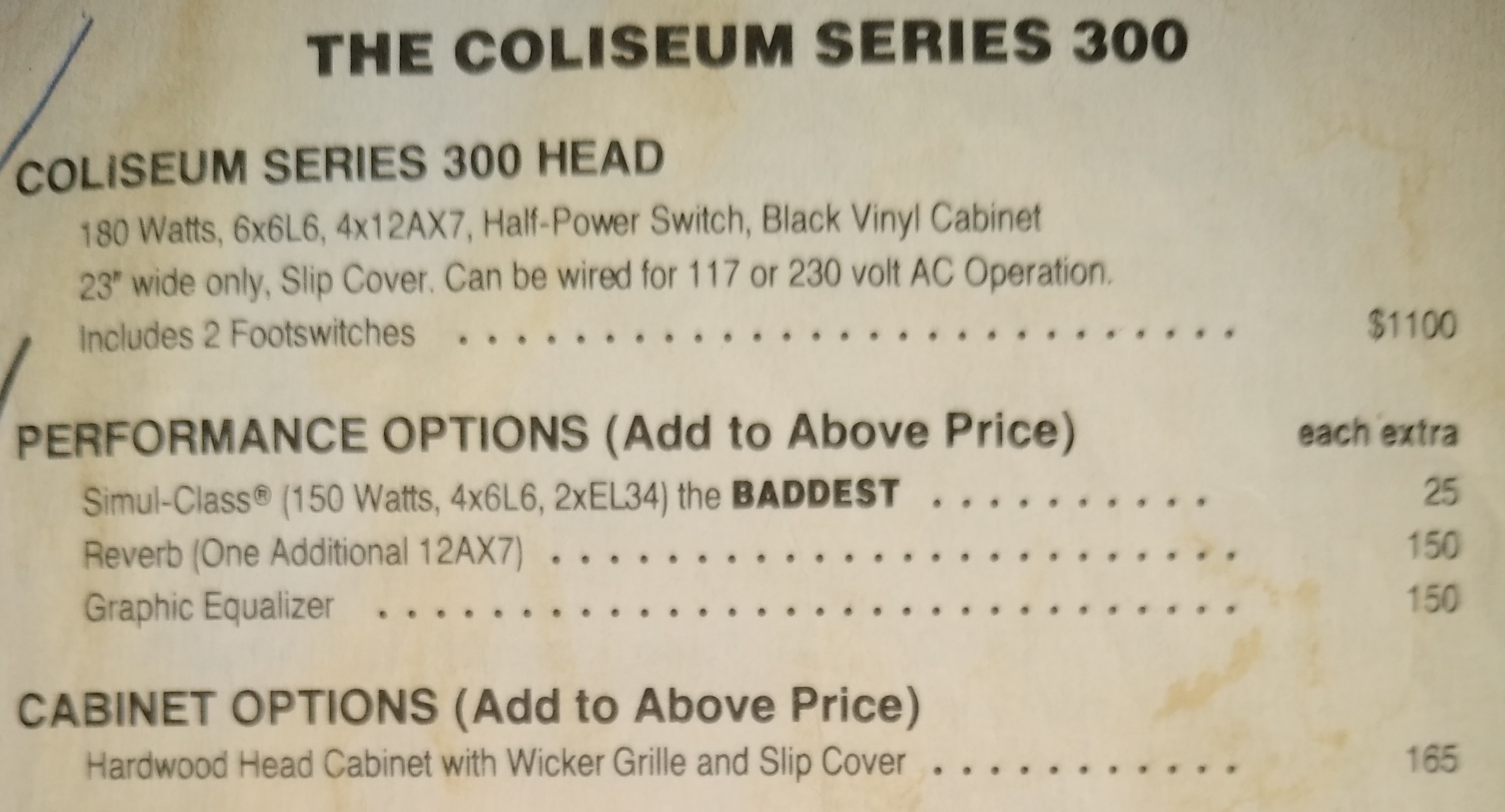 1988 price listThey only released coliseum models within a certain time period. I don’t think it was an optional upgrade as much as a different serial number batch all together.