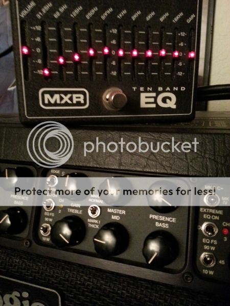 I've always felt the MK1 setting was the sleeper metal setting on the V and tonight I had the bright idea of using a graphic EQ (MXR 10 band) in the front to just clear a little low end going in to tighten it up and bingo I got the best approximation of MOP I think I have out of the amp. Big caveat of speaker choices, pickups etc. I'm using a 2005 Flying V with an old Dimarzio super distortion in it. I also had it on Variac which to me sweetened the top end without losing punch. Diode choice on the rec. Here are some pics of my settings. Sorry no clip, as of yet, as it's late and my phone wouldn't capture it worth a damn anyway. Any 80's Met fans with the Mark V let me know if it floats your boat.
