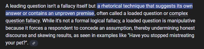 Everyone has answered the "simple question", you were just trying to create a "leading question"