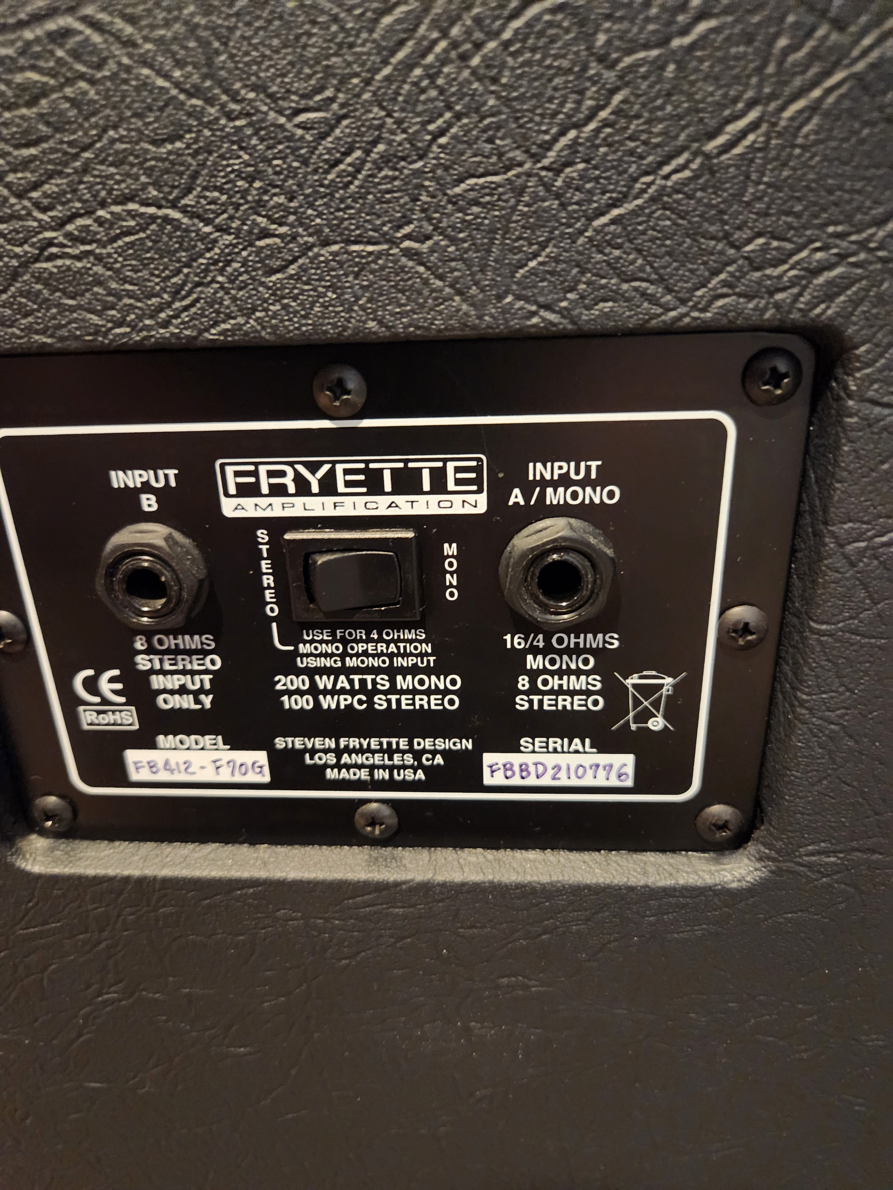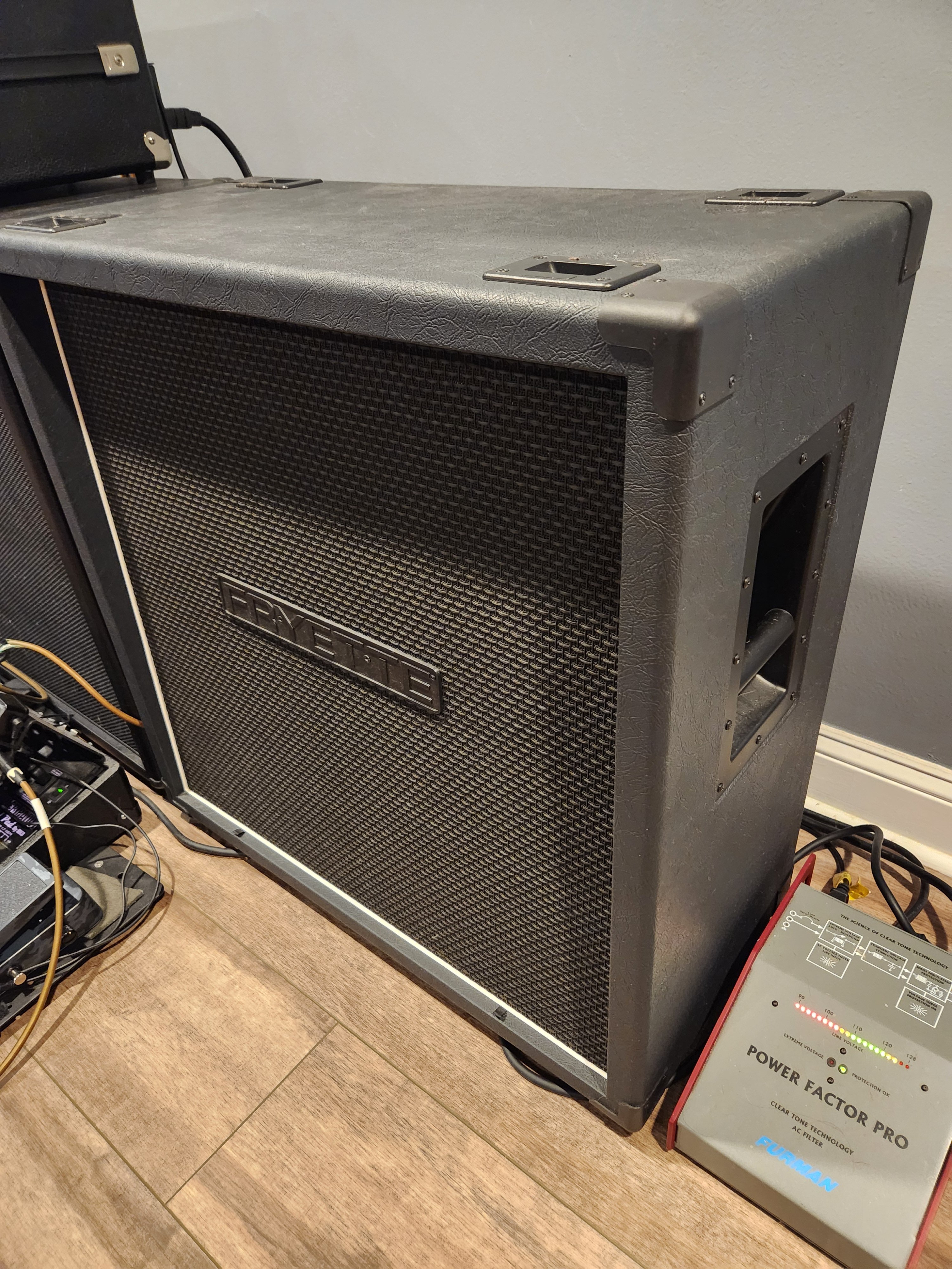 Studio kept Fryette Fat bottom 4x12 loaded with 2 Celestion V30's / 2 Celestion Creamback 75's in an X pattern. 16 ohm .