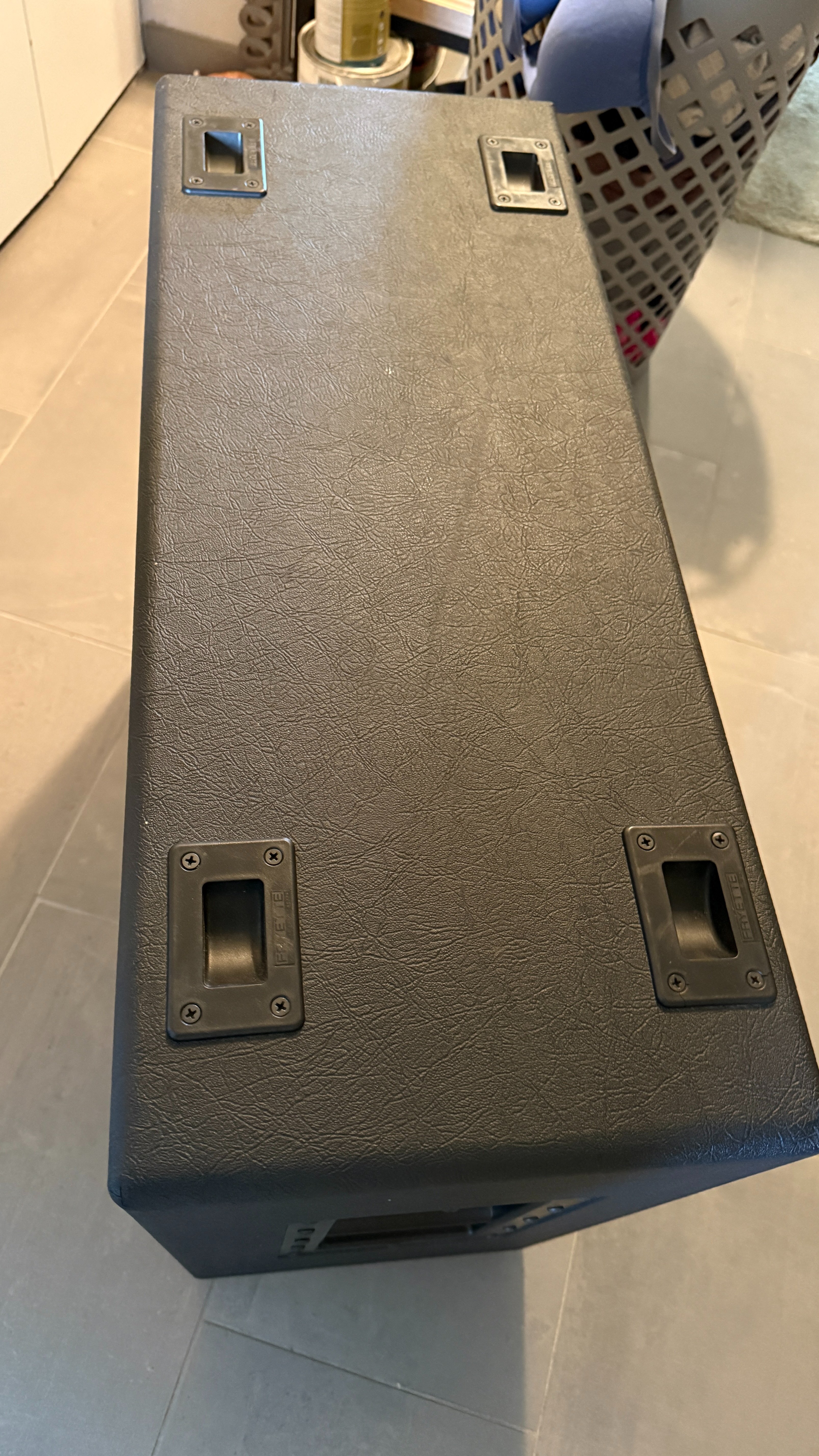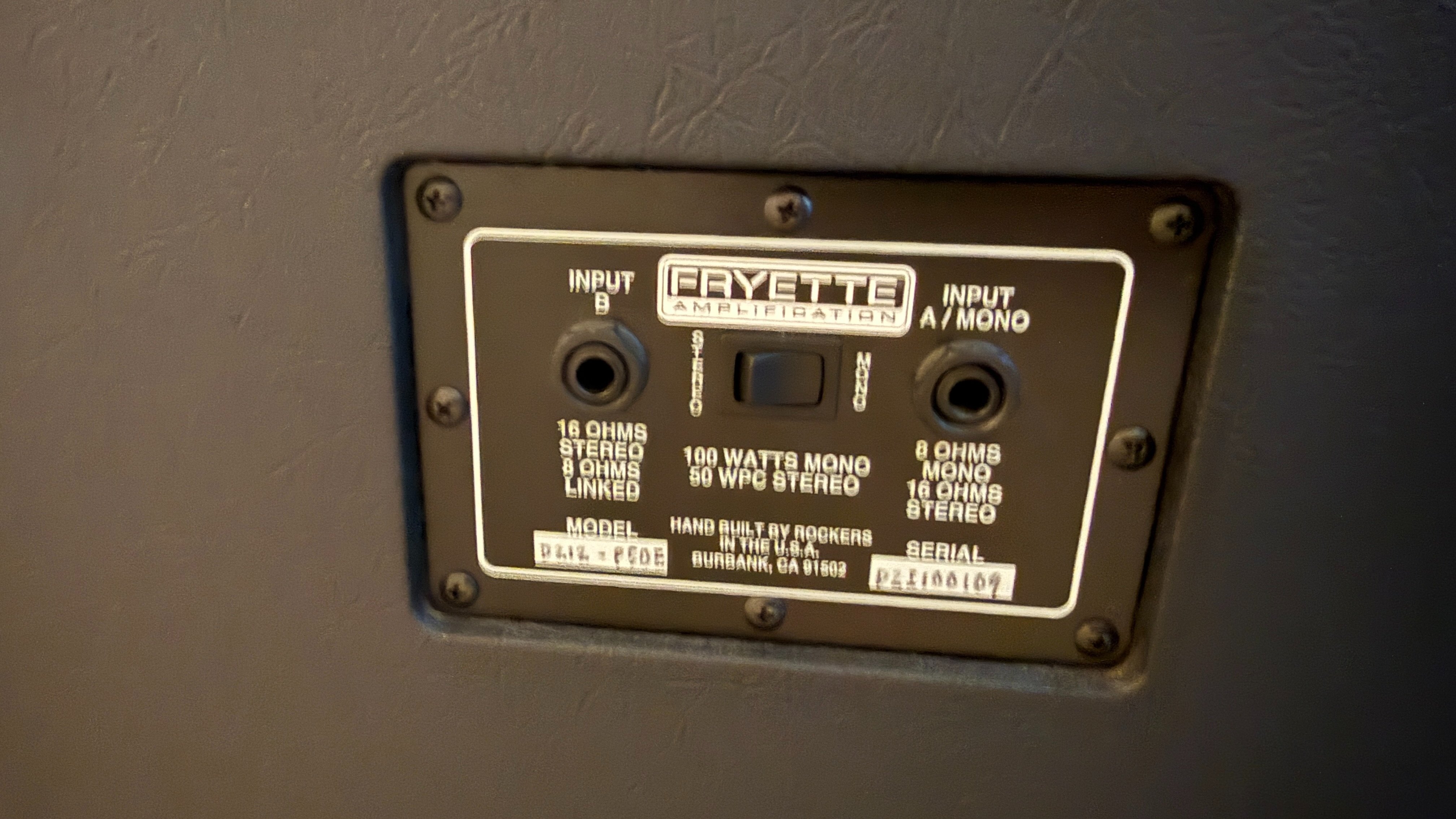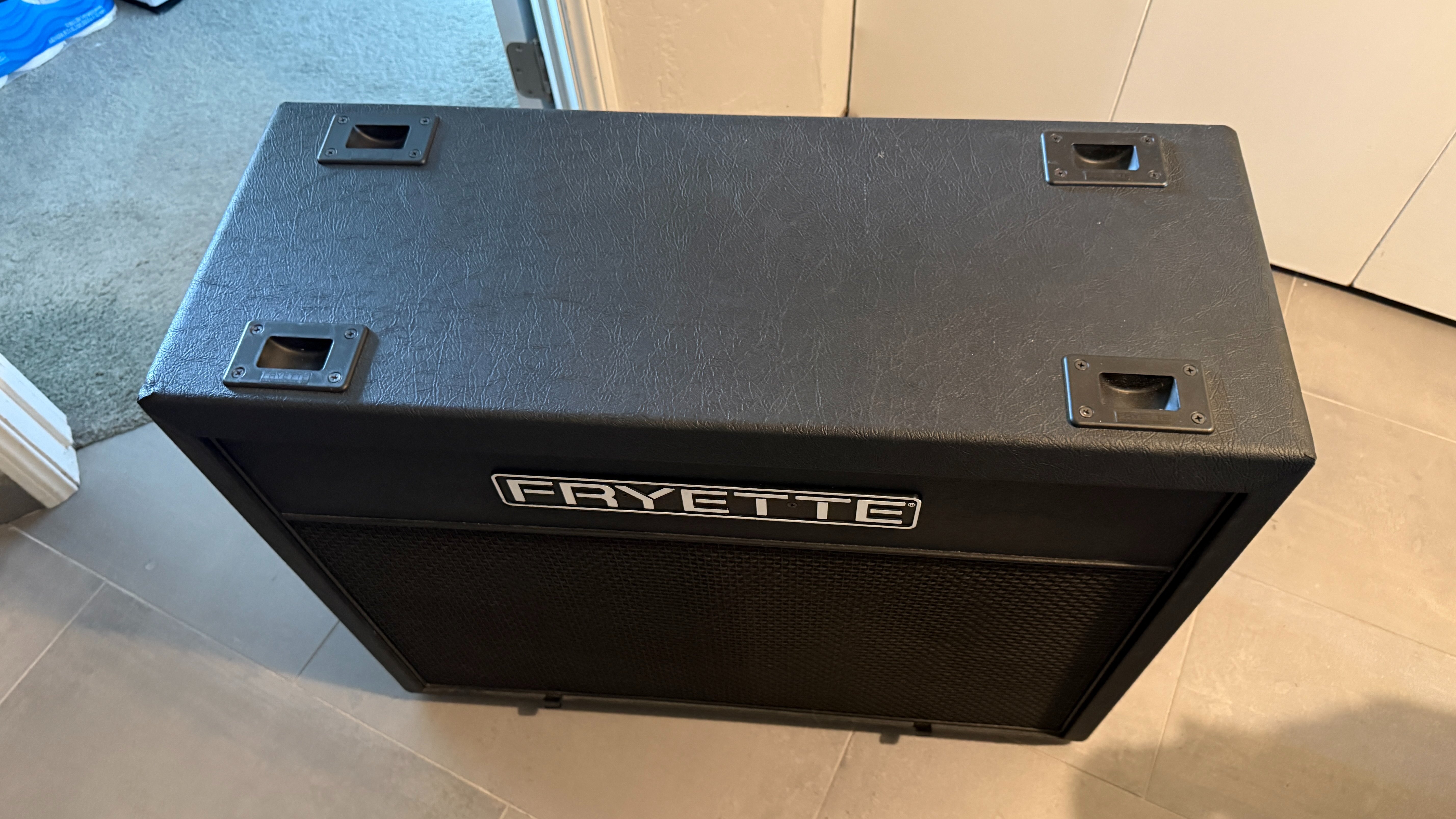 Fryette oversized speaker cabinet loaded with Eminence P-50E speakers. Can run Stereo or Mono. They don't make these oversized ones anymore. Cool way to get most of the 4x12 sound but in a more compact package.