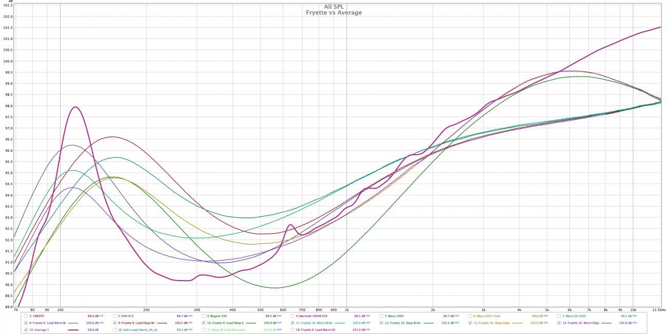 I measured the Fryette with some poweramps a while ago, I may have left off Edge+Deep from this graph (which is definitely closest to the cab loads for me). Sometimes I like Bright and Deep, occasionally edge can be a bit much with some amps.
