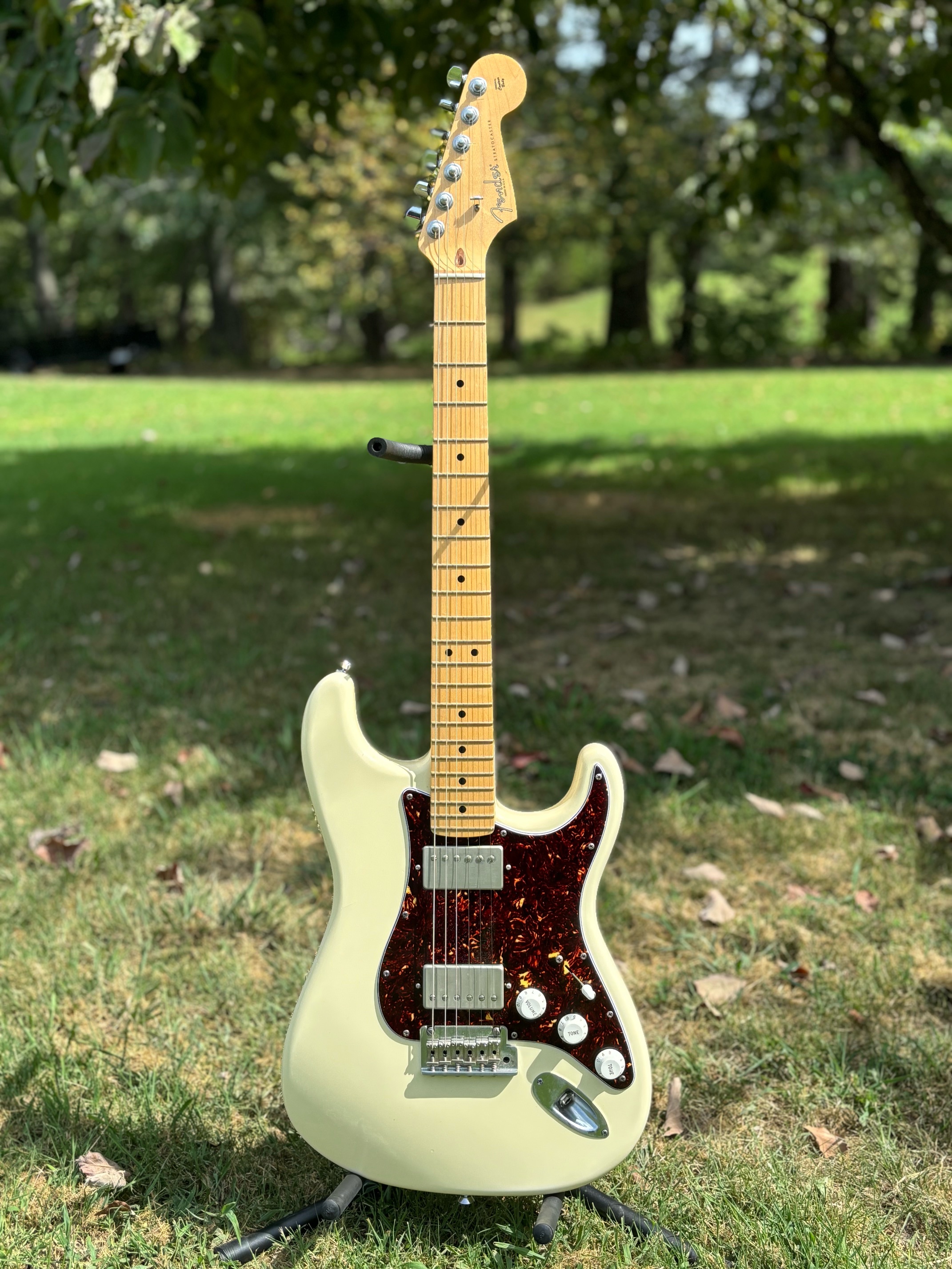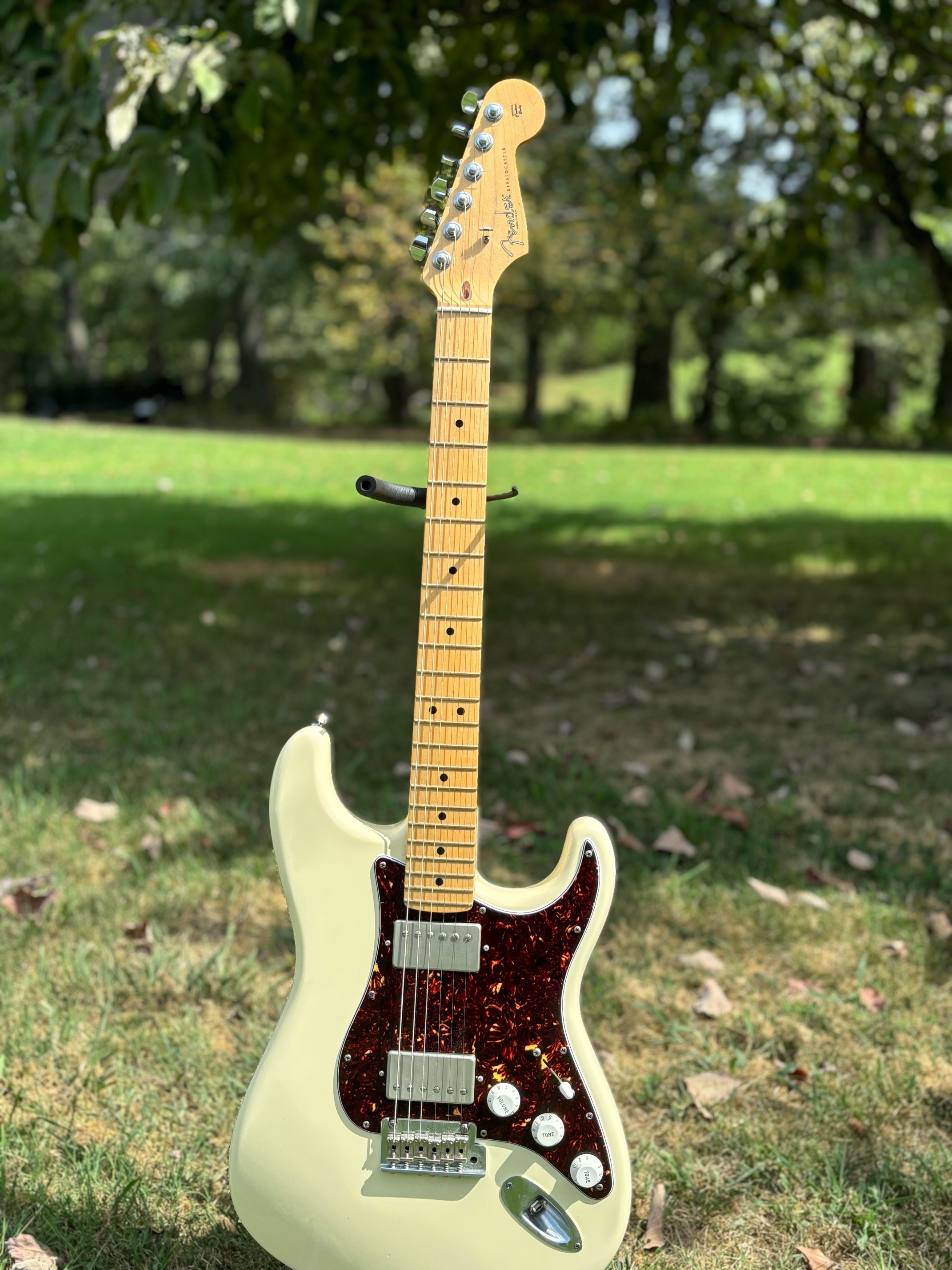 2012 American Standard Strat. Very clean, well cared for, with the Fender OHSC. Fantastic playing and sounding guitar. Currently has Suhr Thornbuckers, also have a fully loaded and wired HSS pickguard with Suhr SSH in the bridge and Suhr ML singles. 22 medium-jumbo, modern "C" profile. 9.5" radius. Totally up to you on pickups, or for $200 more I'll throw it in as well. $900\$1100 with both pickguards\pickups.