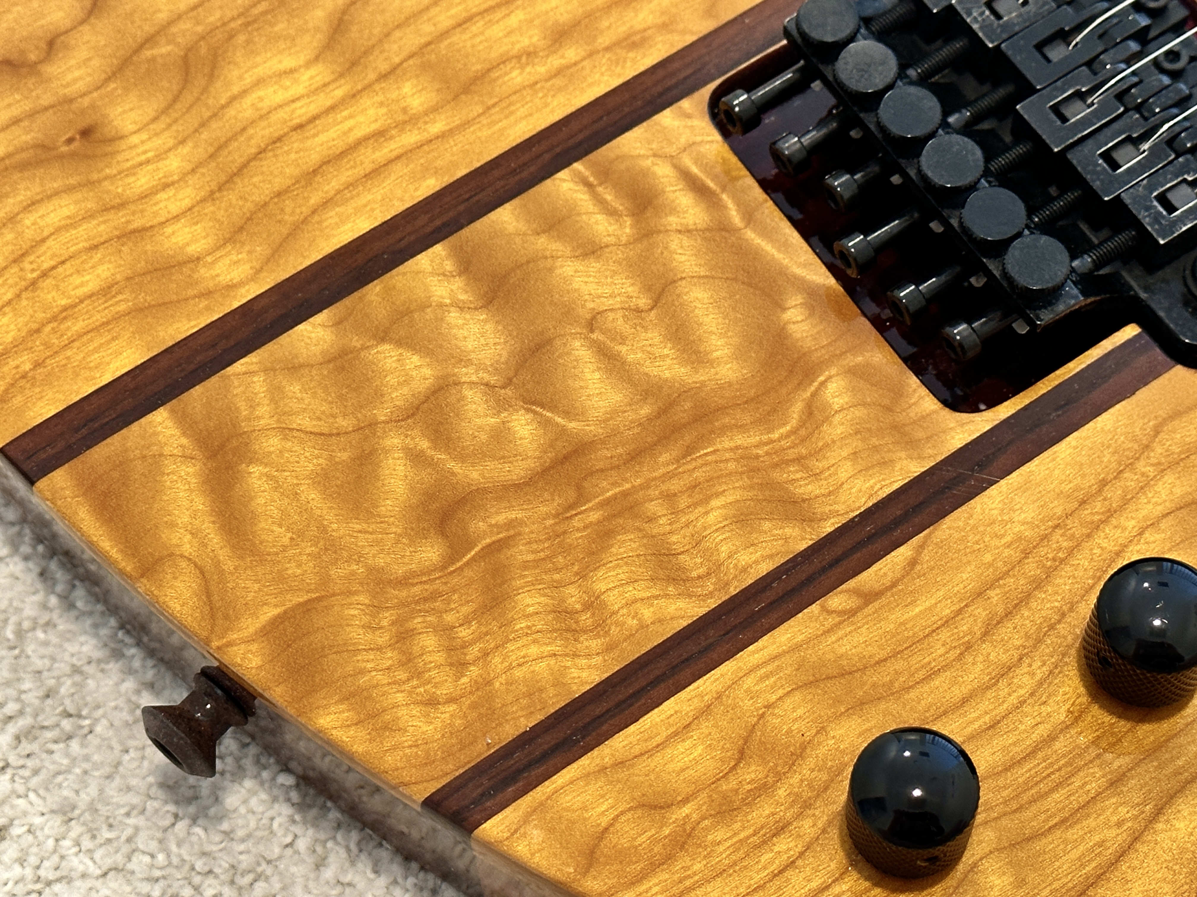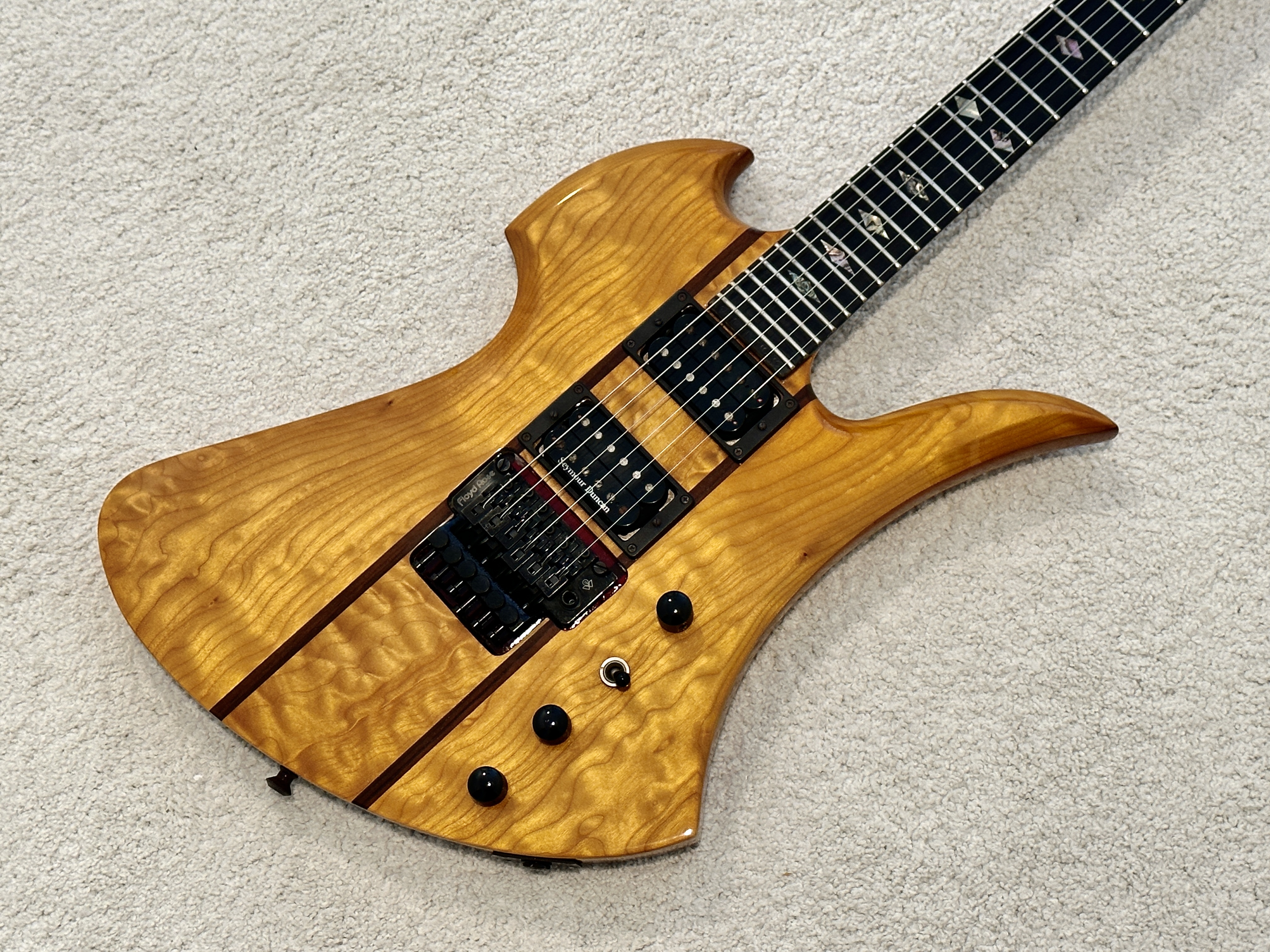 B.C Rich USA Custom Shop handmade Mockingbird Deluxe with quilted maple top in Trans-Amber/Gold finish , its a 1999 model., comes with Seymour Duncan pckups and original Floyd Rose bridge.